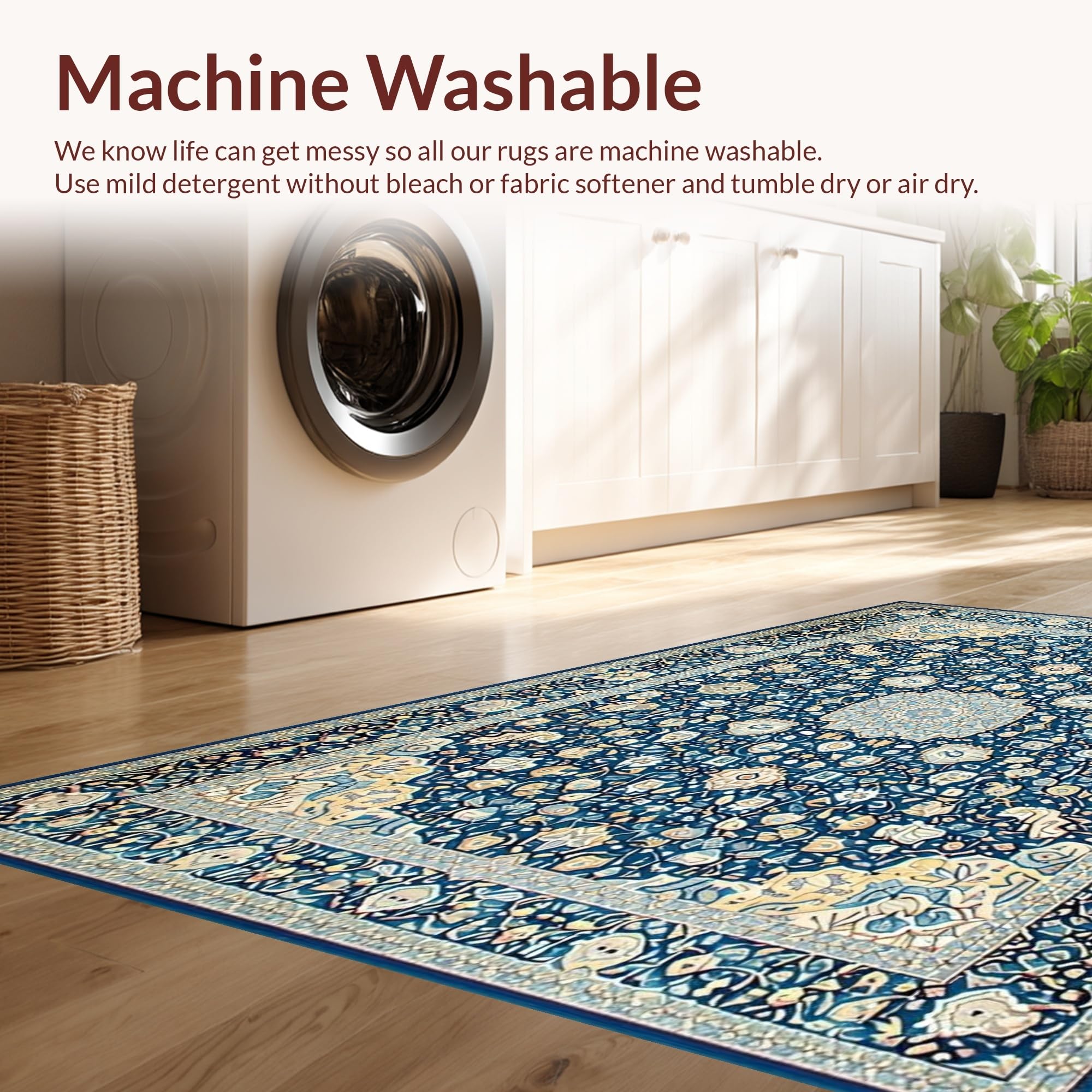 - Machine Washable: Our rugs can be easily thrown in the wash machine.