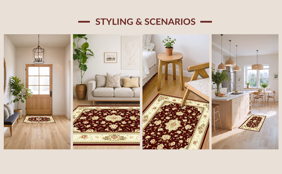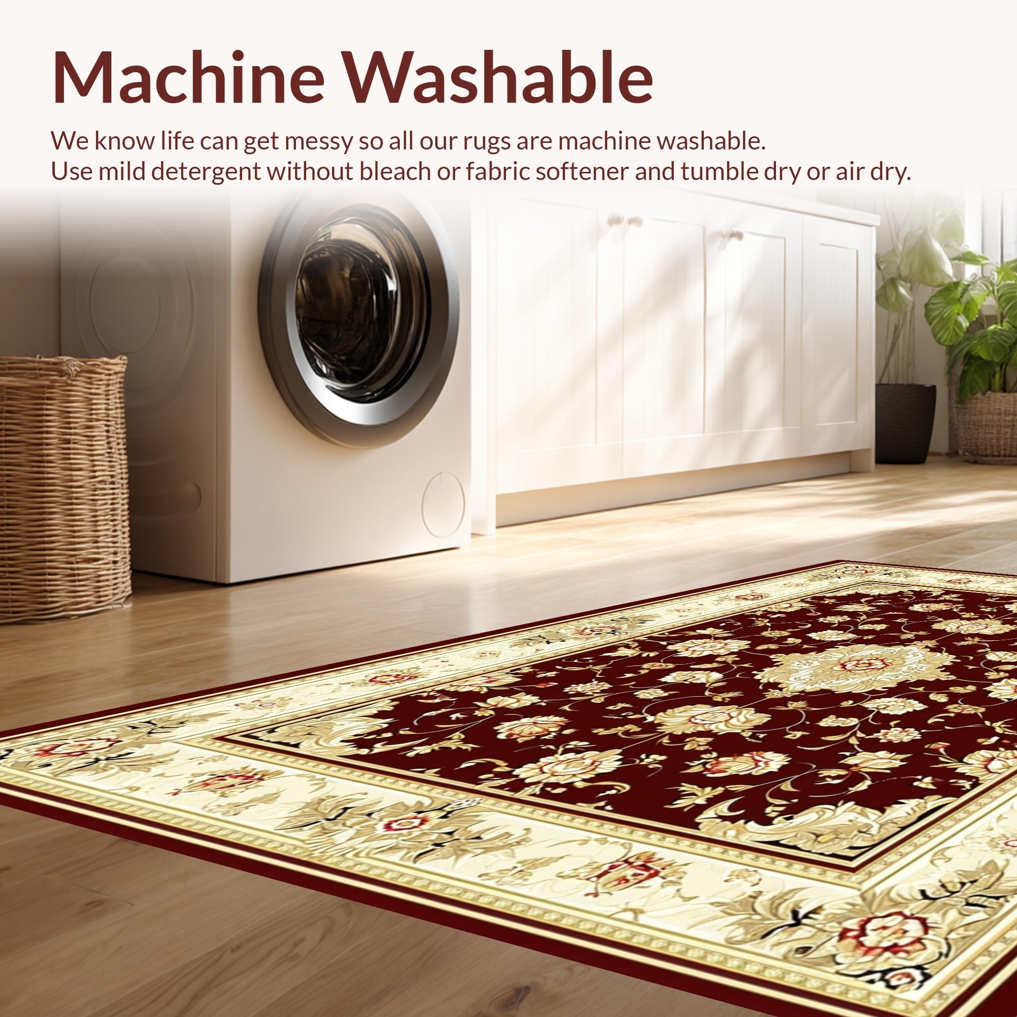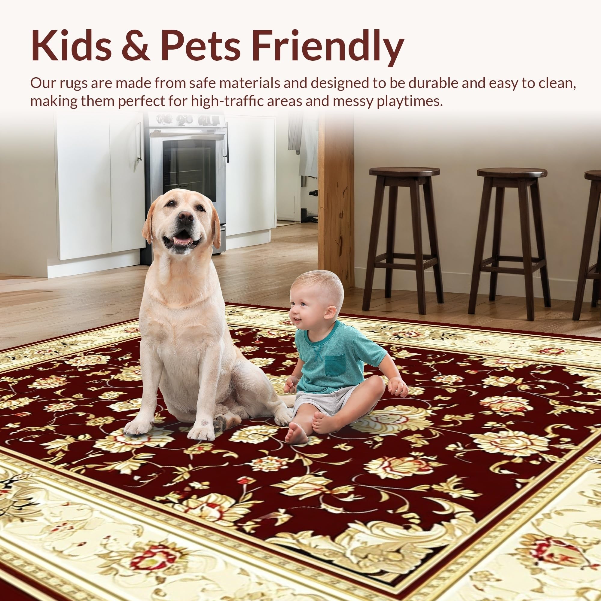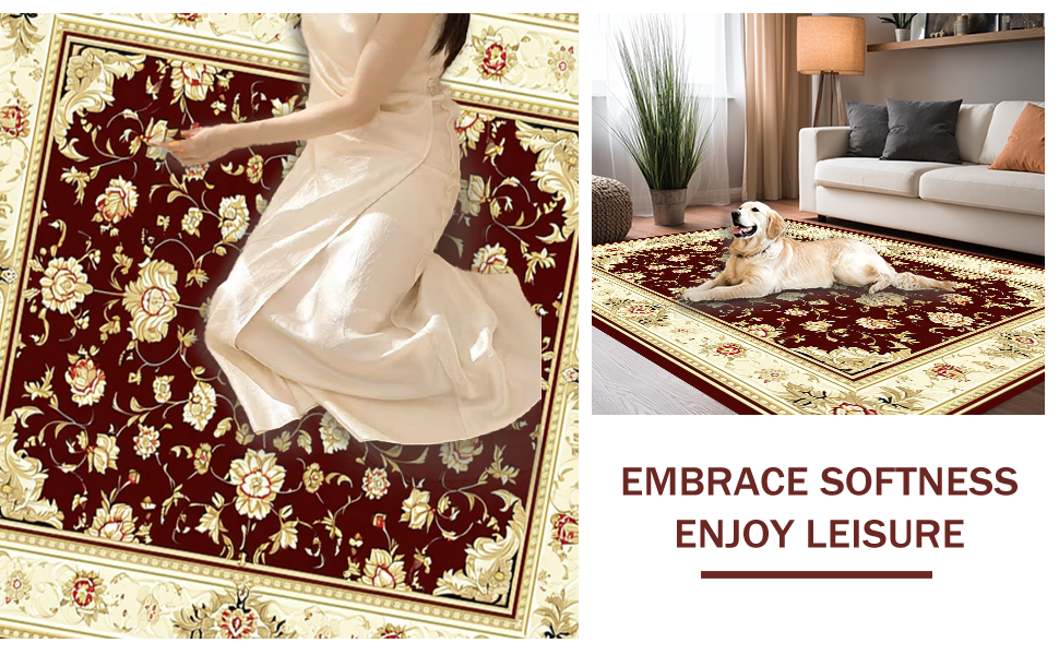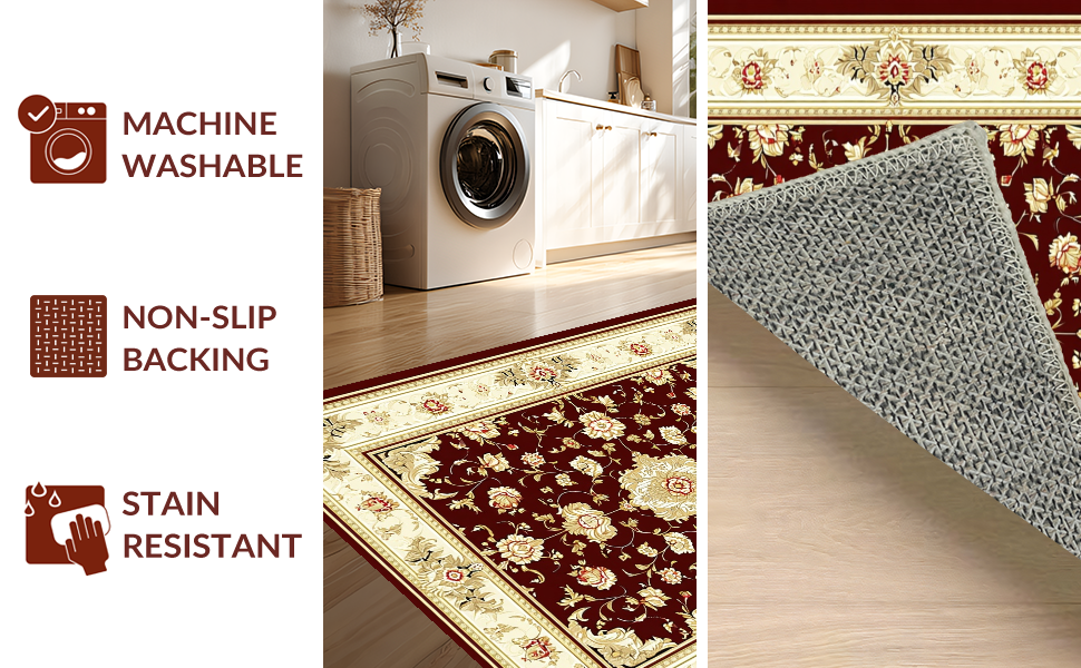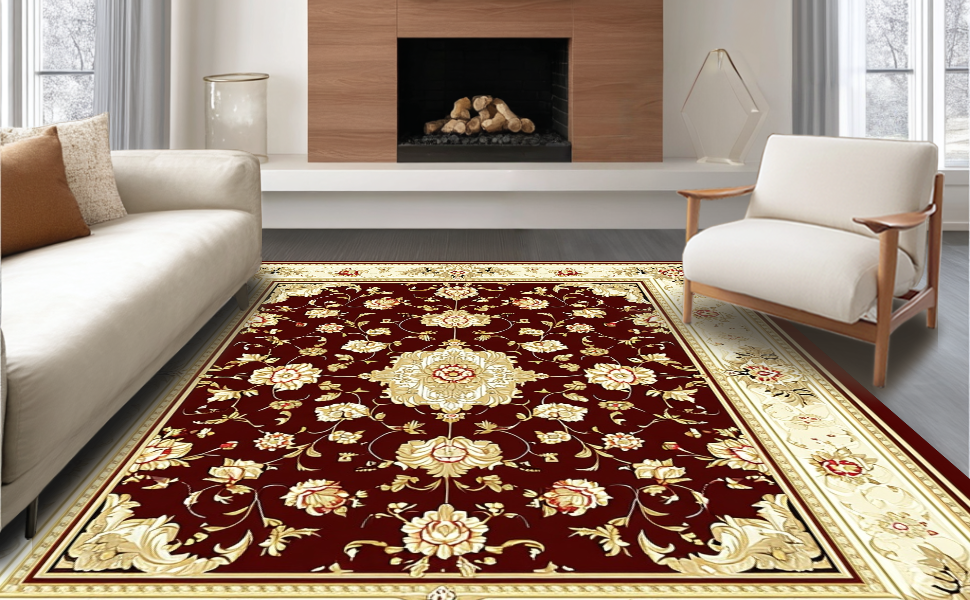 Ultra Soft Area Rug, Non Slip, Stain Resistant, Washable Area Rugs for Living Room, Bedroom, Elegant Traditional Floral Medallion(Red) Overview: