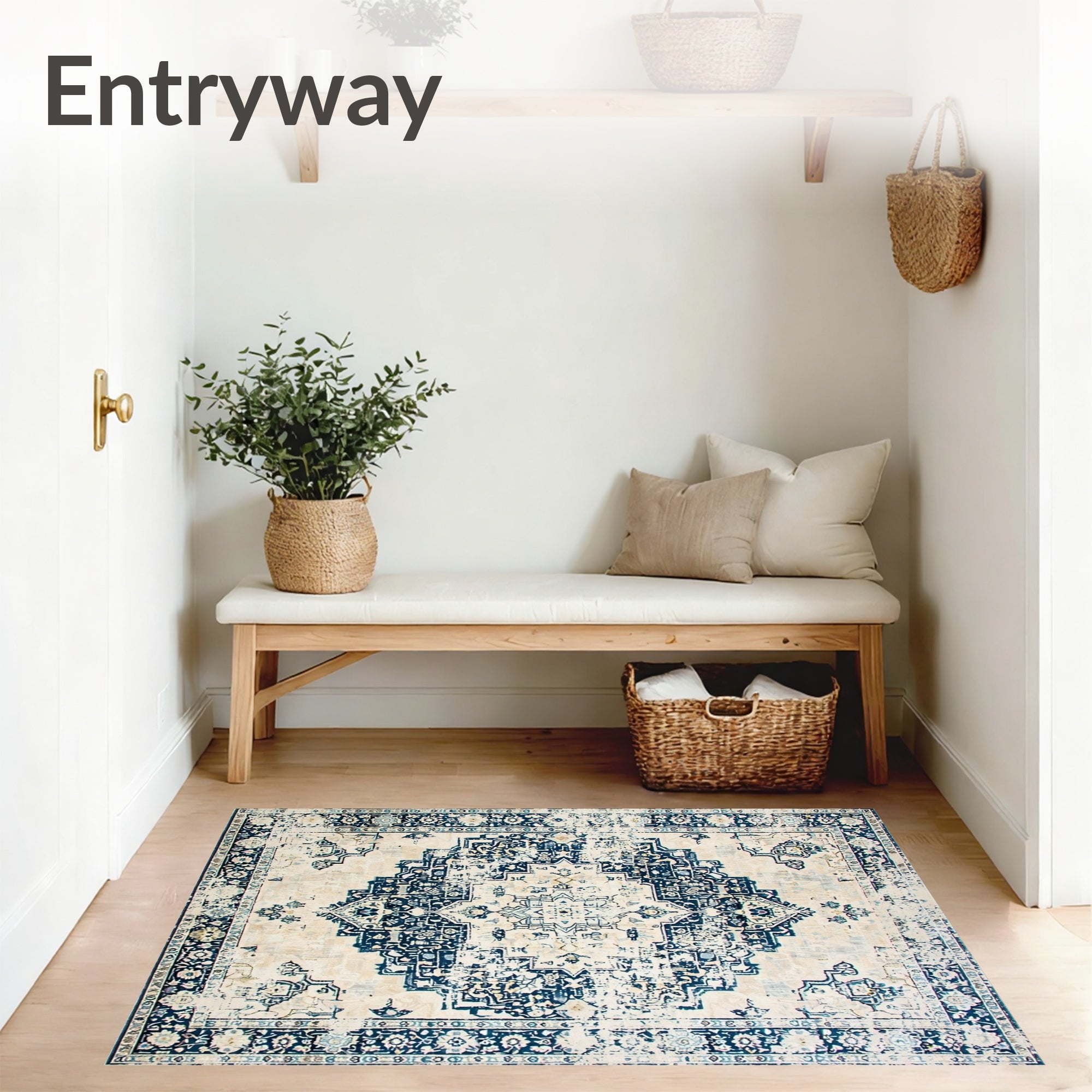 Ultra Soft Area Rug, Non Slip, Stain Resistant, Washable Area Rugs for Living Room, Bedroom, Elegant Transitional Beige and Denim Hues for Sophisticated Spaces(Beige) Overview: