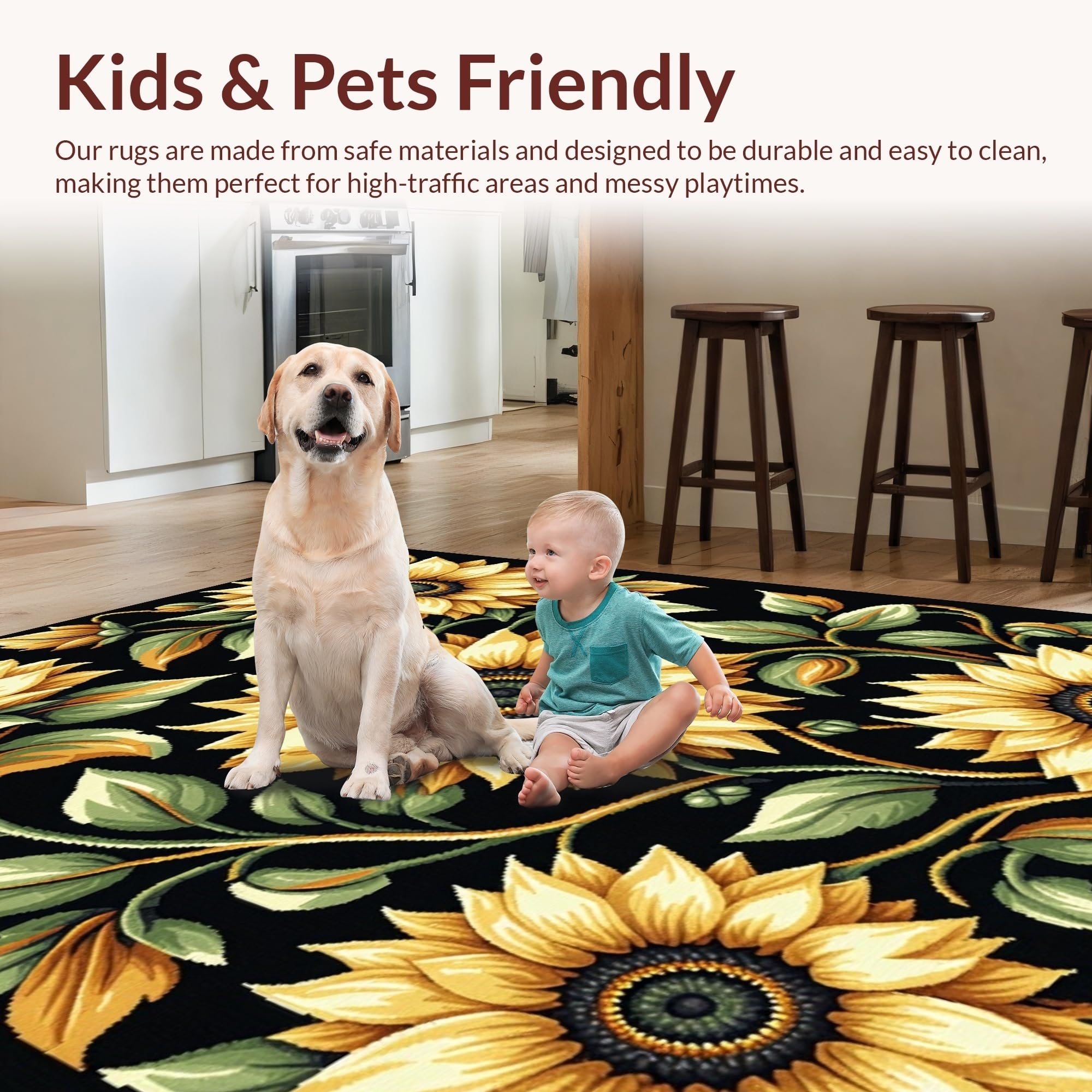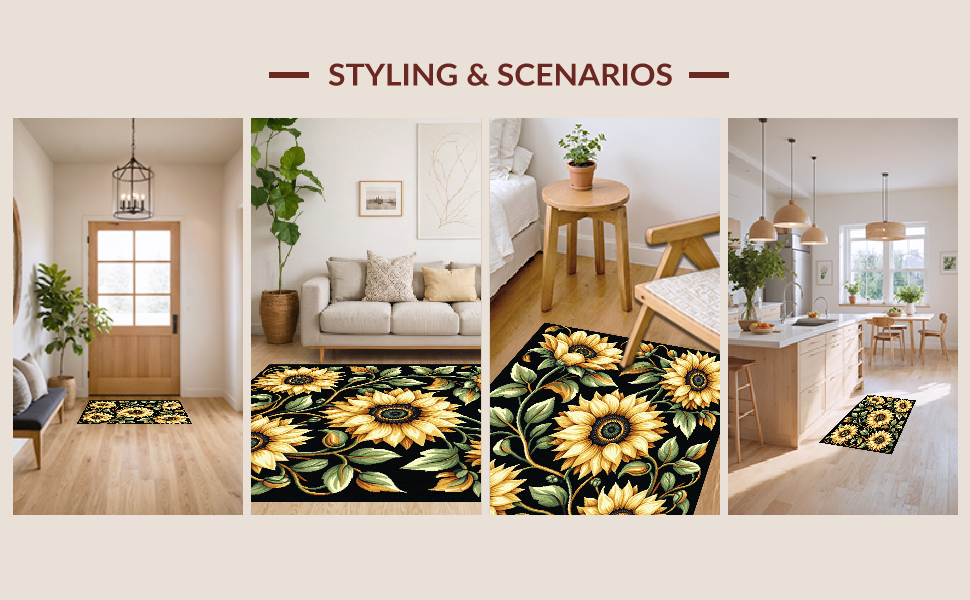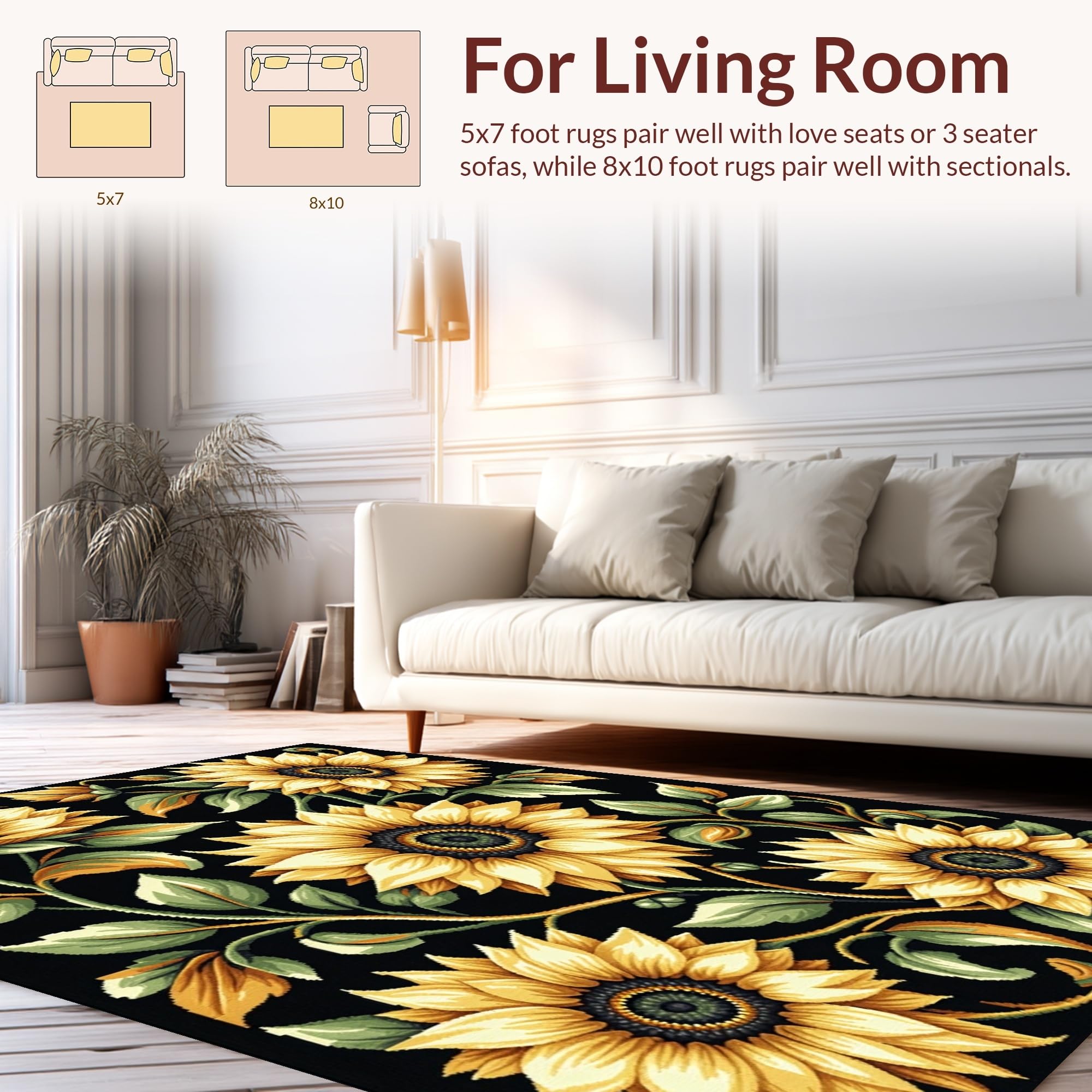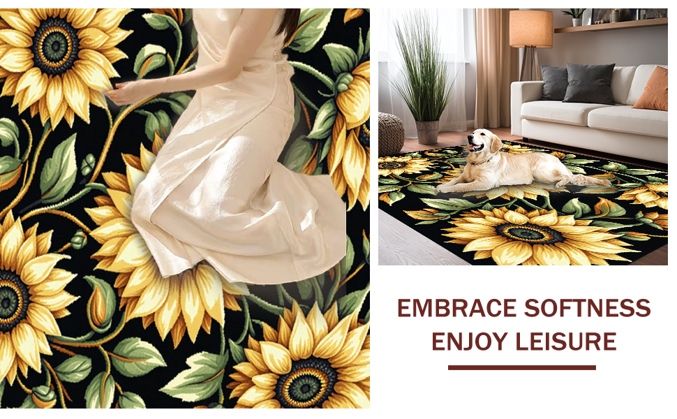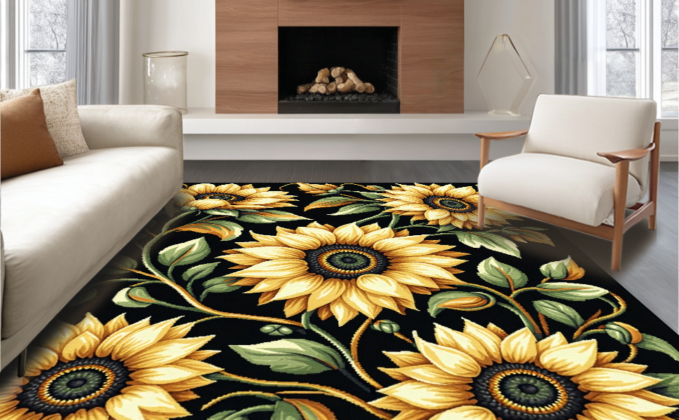 Ultra Soft Area Rug, Non Slip, Stain Resistant, Washable Area Rugs for Living Room, Bedroom, Elegant Transitional Nature Pattern(Yellow) Overview: