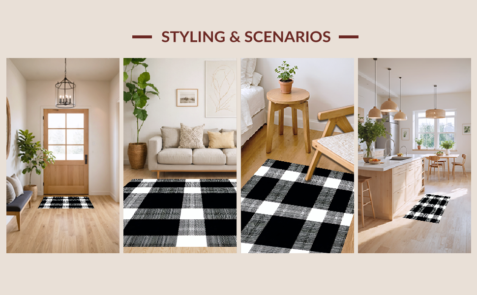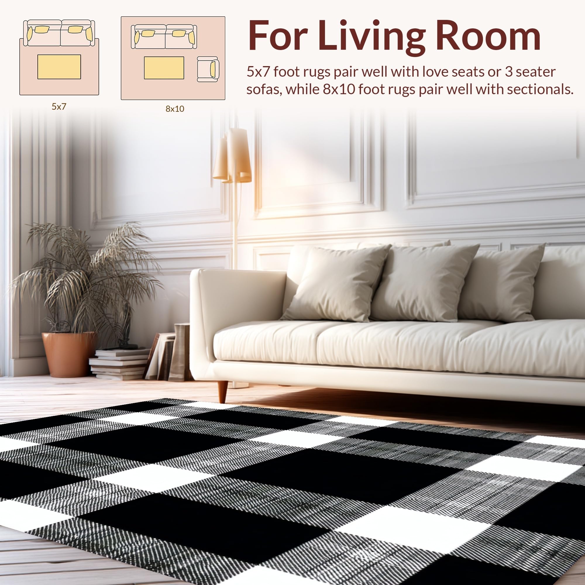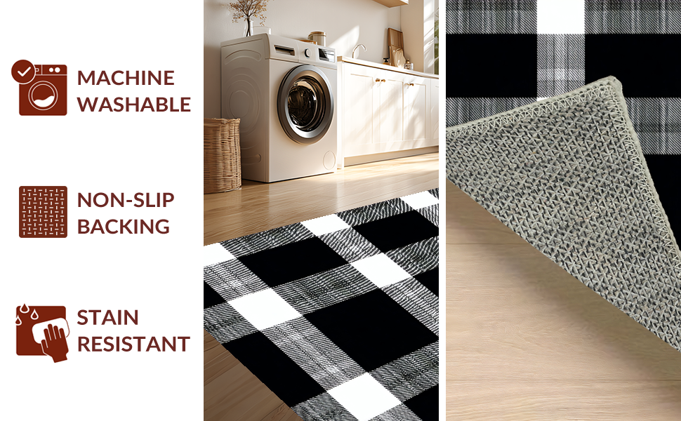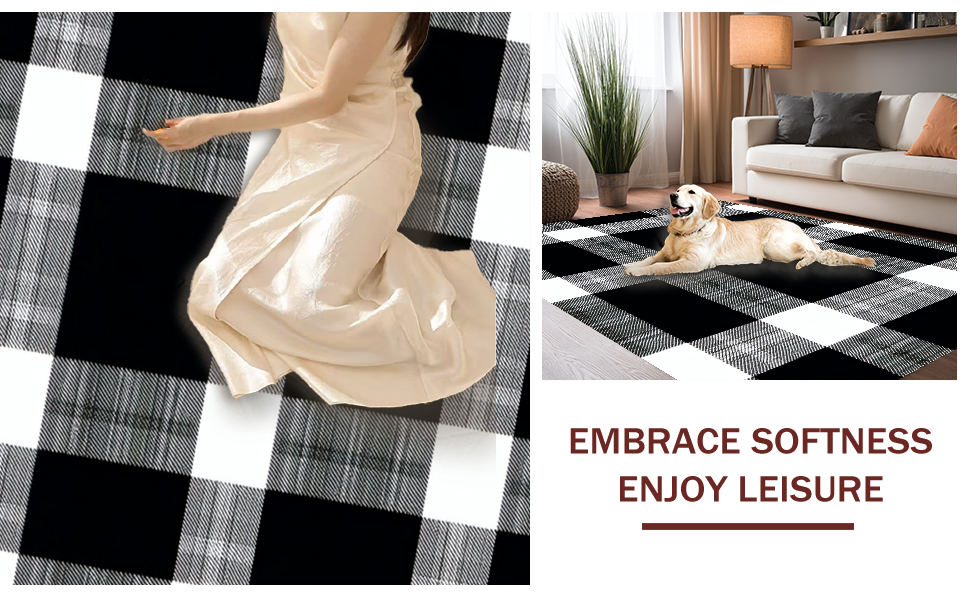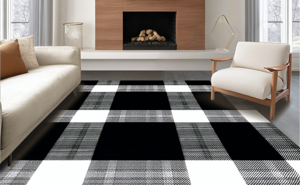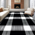 Ultra Soft Area Rug, Non Slip, Stain Resistant, Washable Area Rugs for Living Room, Bedroom, Elegant Transitional Plaid Appeal(Black) Overview: