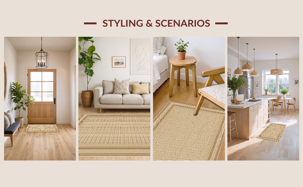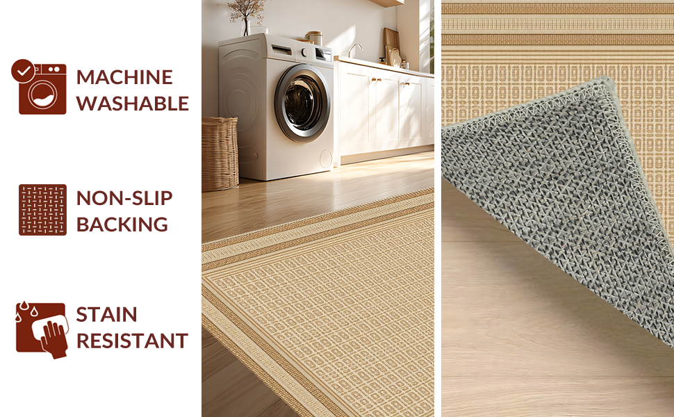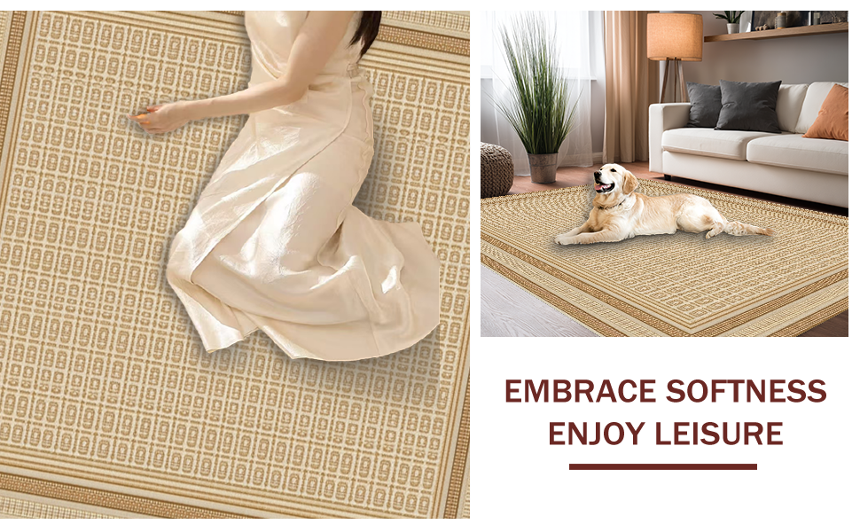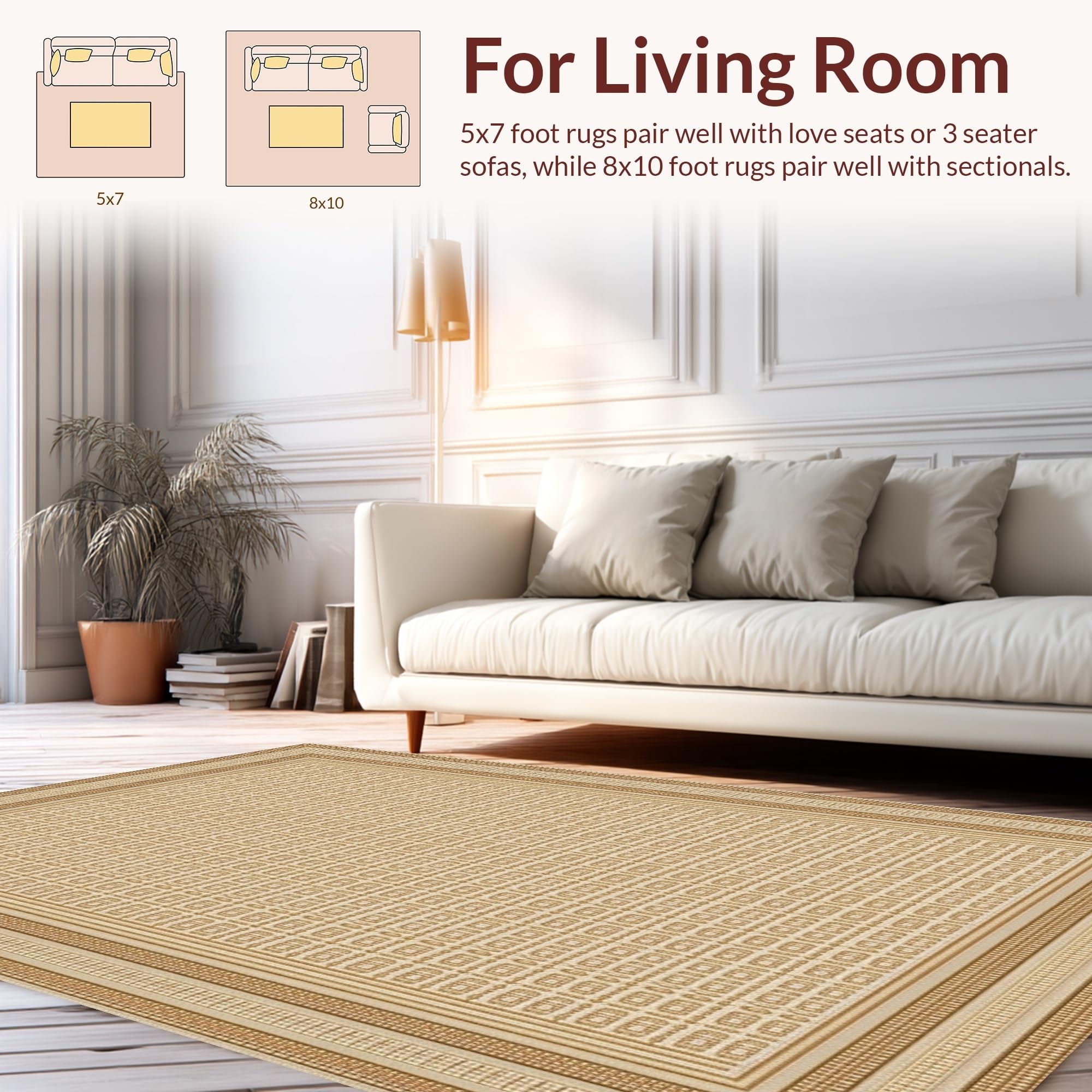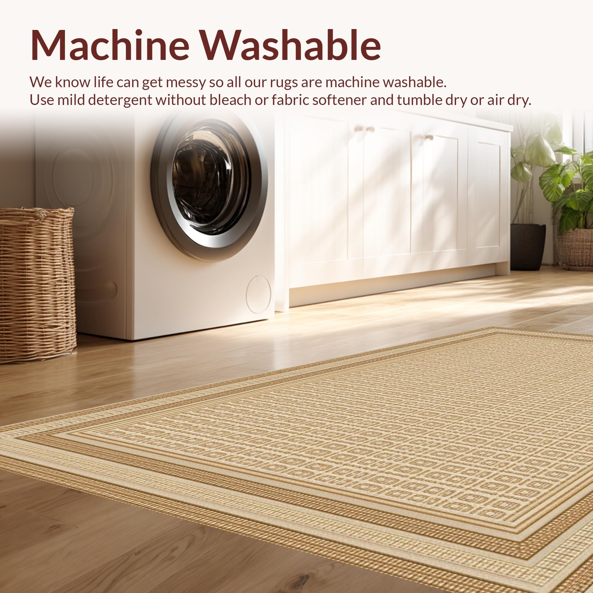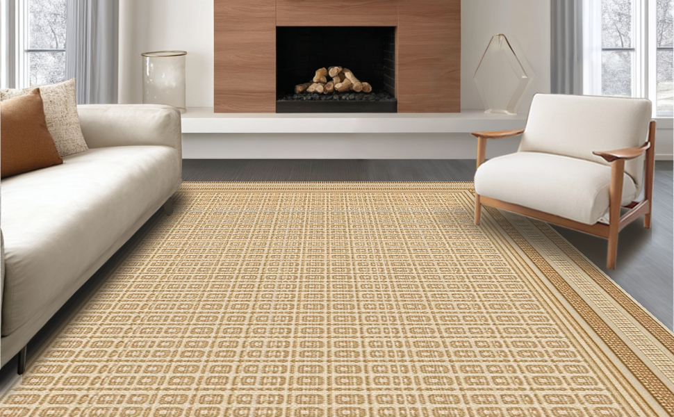 Ultra Soft Area Rug, Non Slip, Stain Resistant, Washable Area Rugs for Living Room, Bedroom, Elegant Trellis Earth Tone Design(Beige) Overview: