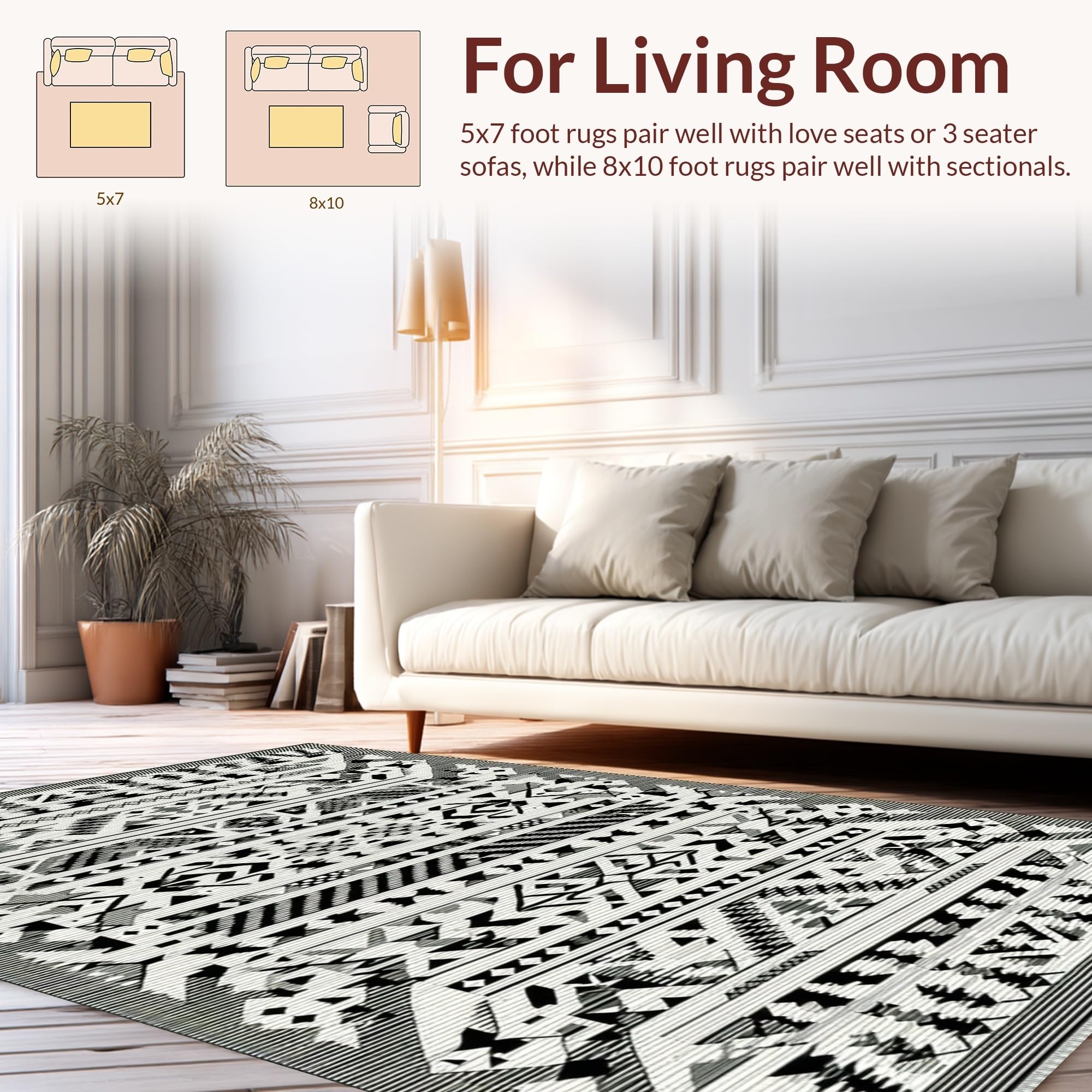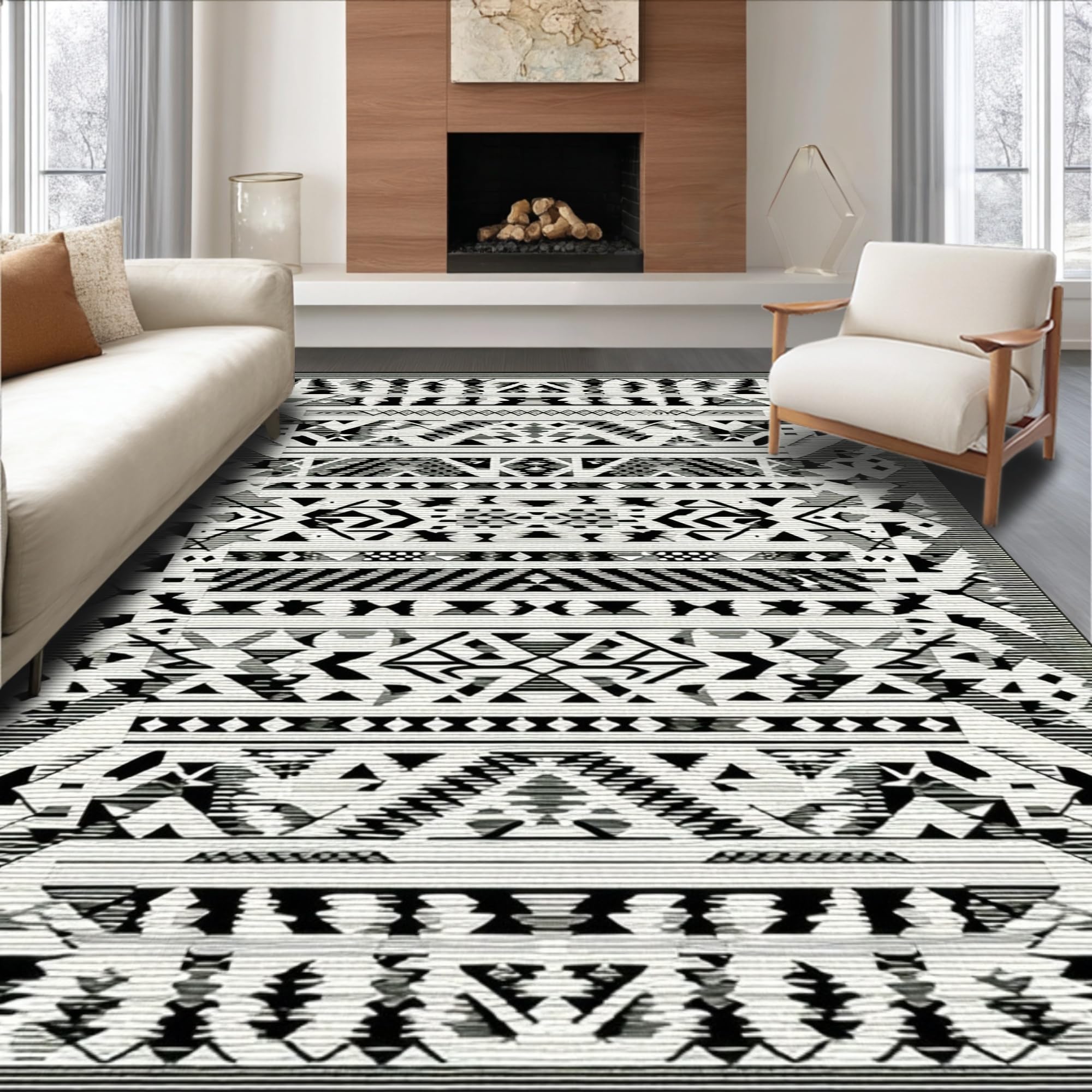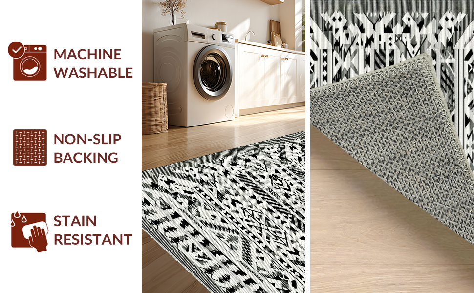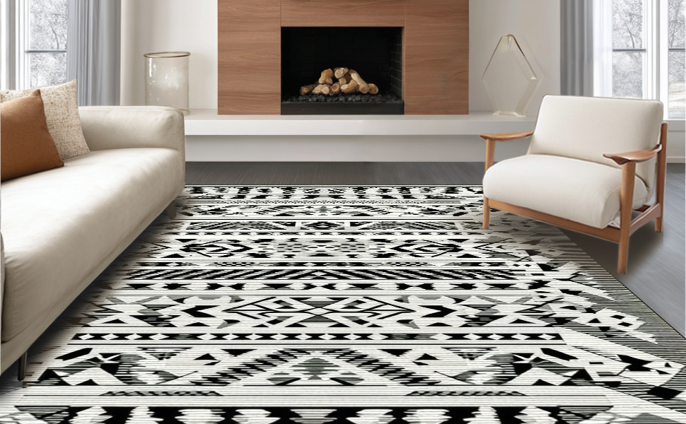 Ultra Soft Area Rug, Non Slip, Stain Resistant, Washable Area Rugs for Living Room, Bedroom, Elegant Tribal Chic Floor Covering(Black) Overview: