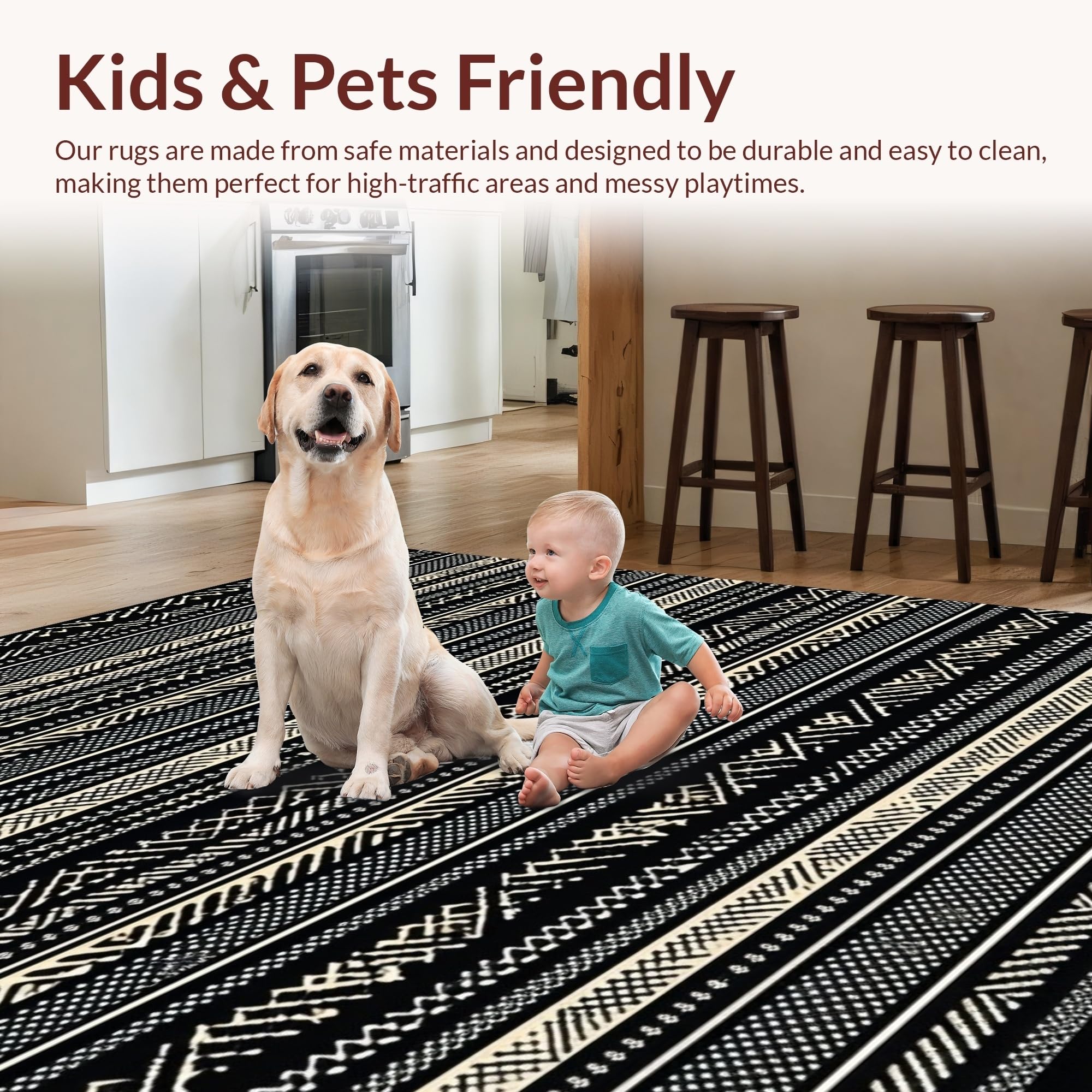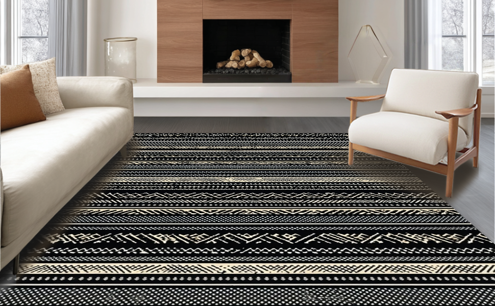 Ultra Soft Area Rug, Non Slip, Stain Resistant, Washable Area Rugs for Living Room, Bedroom, Elegant Tribal Geometric Tapestry(Beige) Overview: