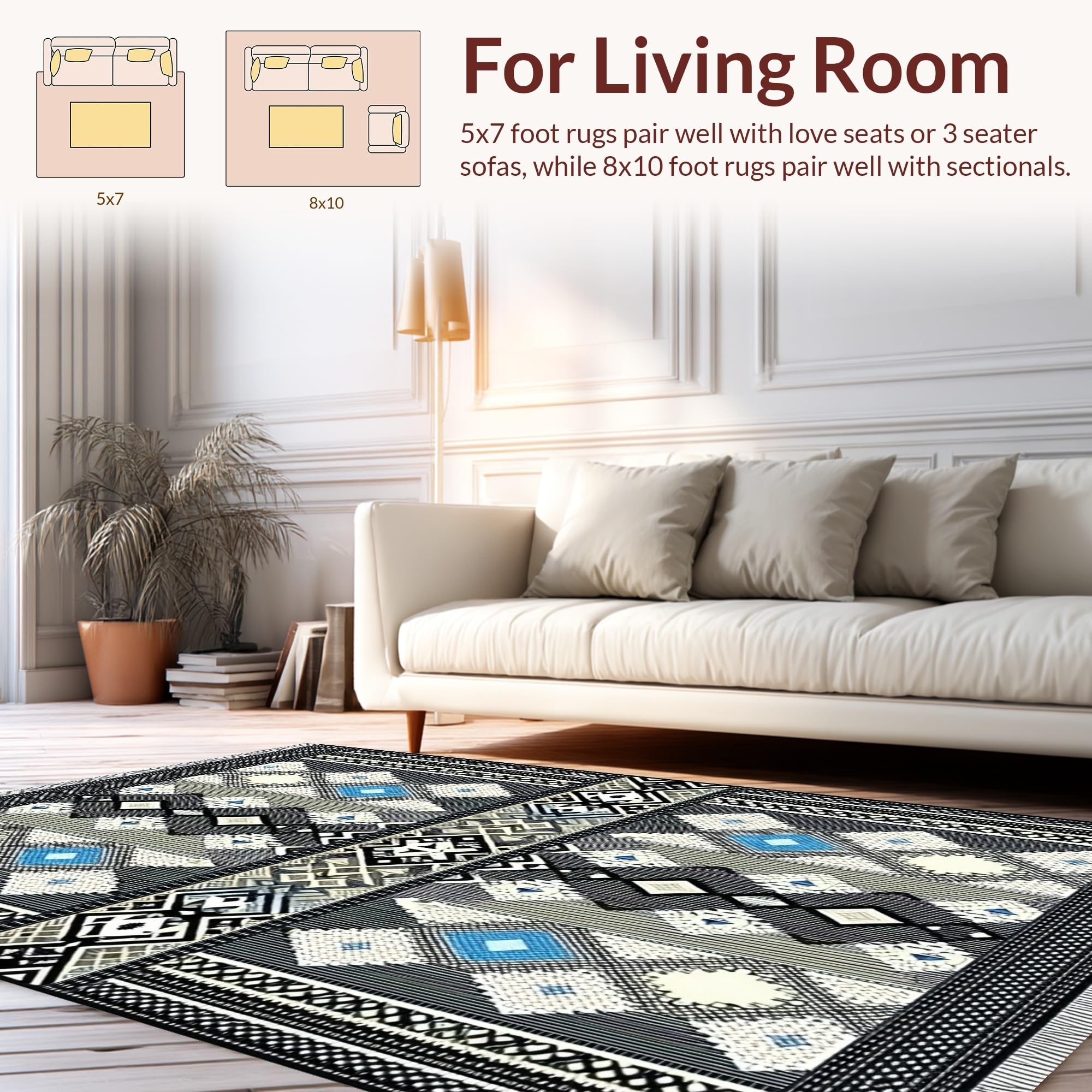 - Durable: Designed for the living room, your rug will be perfectly serviceable for long-term usage in any 'high-traffic' area. Enjoy the underfoot comfort without any shedding.