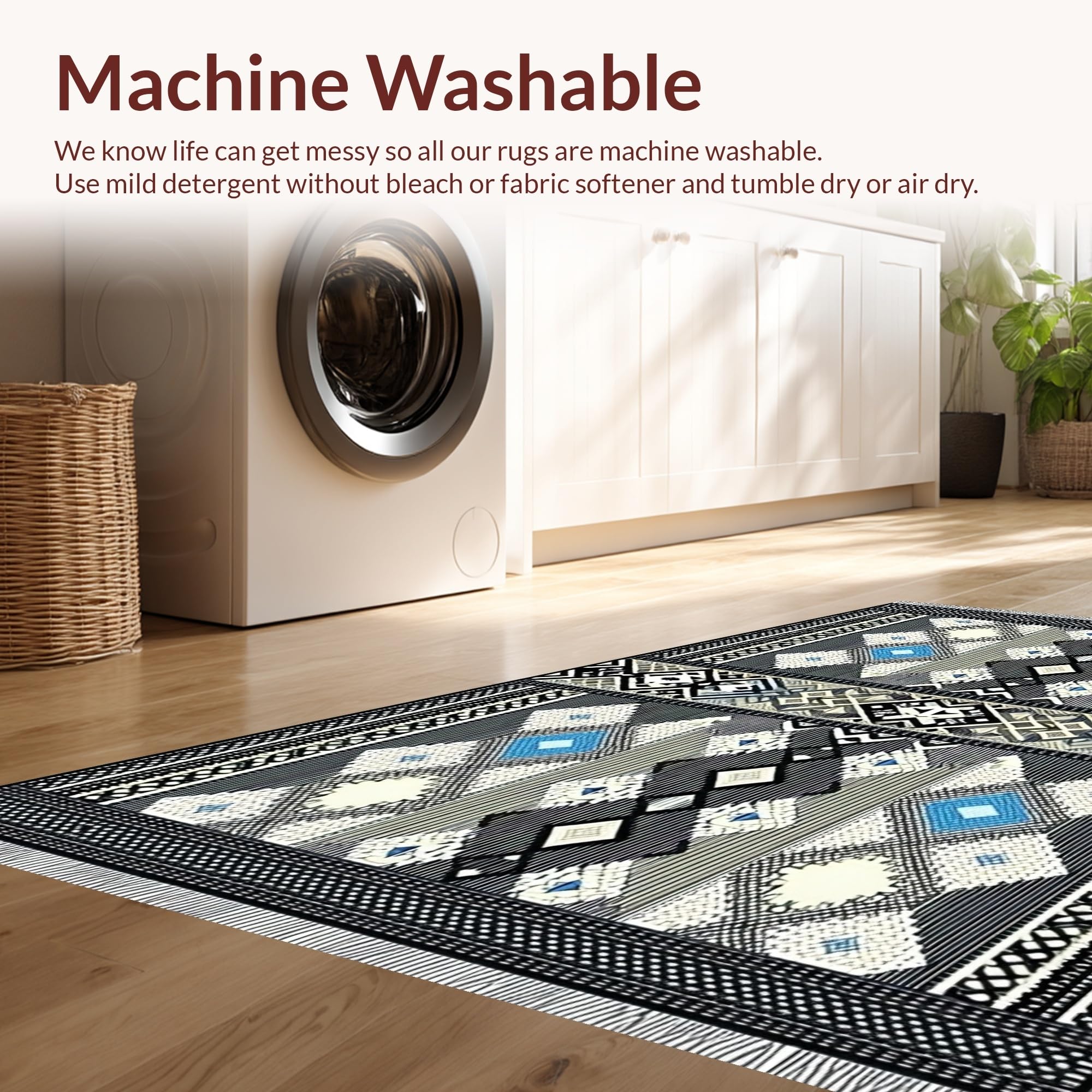 - Machine Washable: Our rugs can be easily thrown in the wash machine.