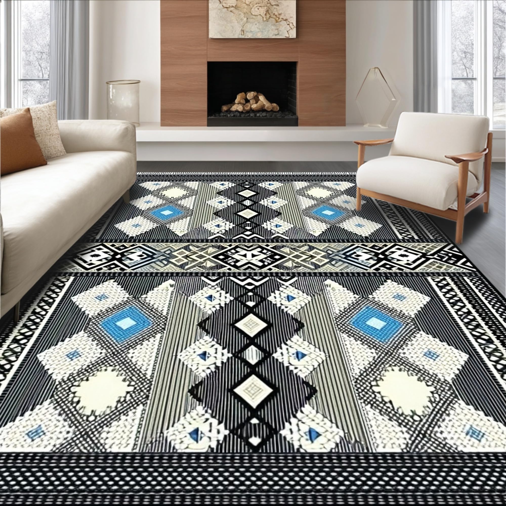Ultra Soft Area Rug, Non Slip, Stain Resistant, Washable Area Rugs for Living Room, Bedroom, Elegant Tribal Tasseled Geometric Design(Gray) Overview: