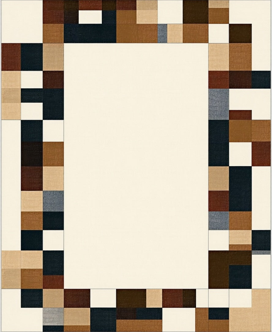 Elegant Trio with Abstract Linear Borders in Brown and Beige(Beige)