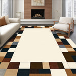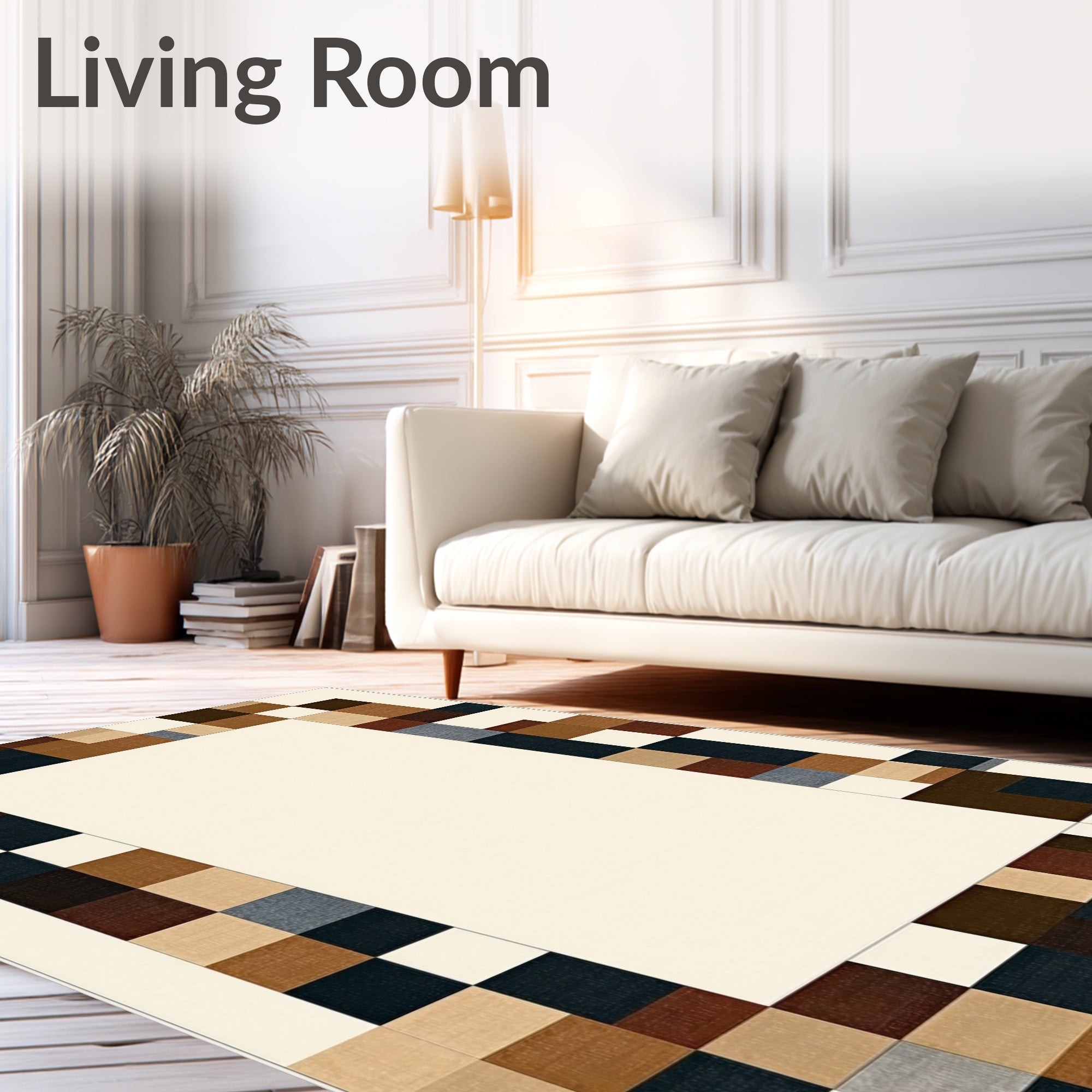 Ultra Soft Area Rug, Non Slip, Stain Resistant, Washable Area Rugs for Living Room, Bedroom, Elegant Trio with Abstract Linear Borders in Brown and Beige(Beige) Overview: