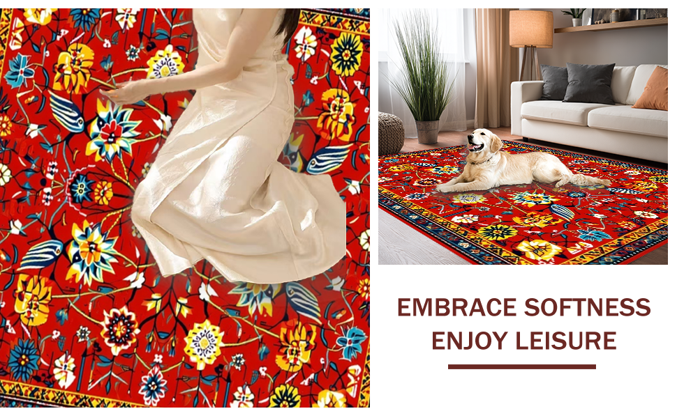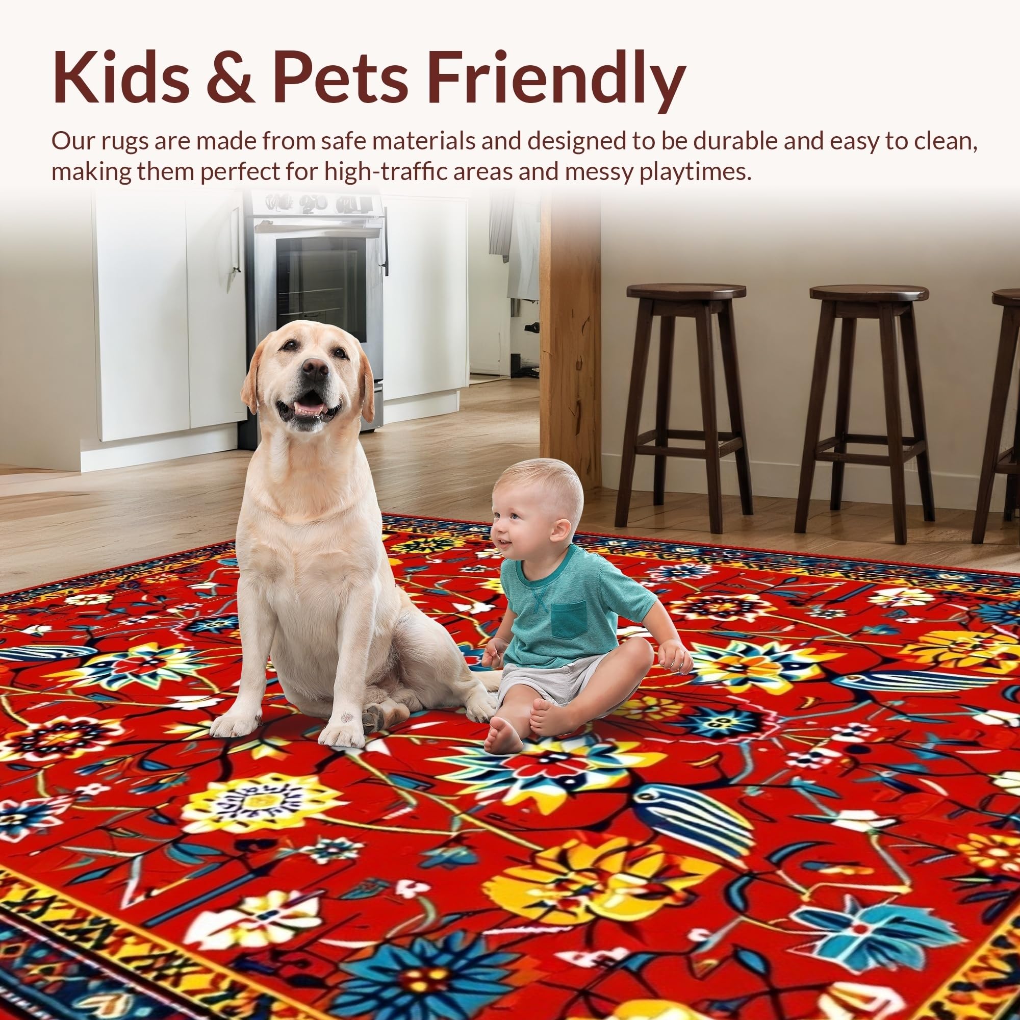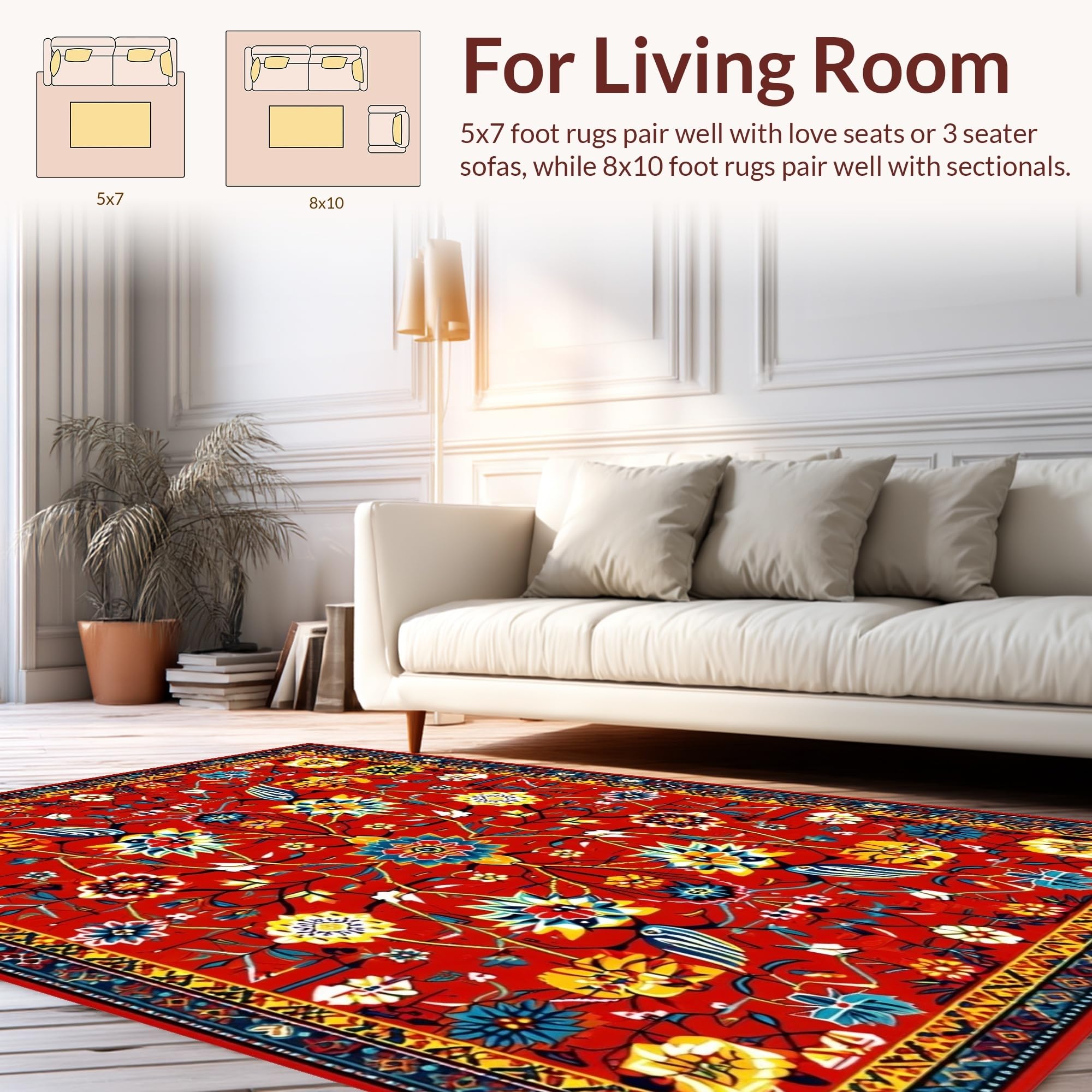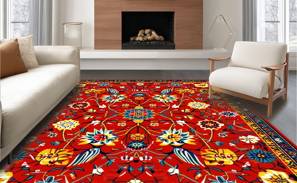 Ultra Soft Area Rug, Non Slip, Stain Resistant, Washable Area Rugs for Living Room, Bedroom, Elegant Tropical Colorful Design(Red) Overview: