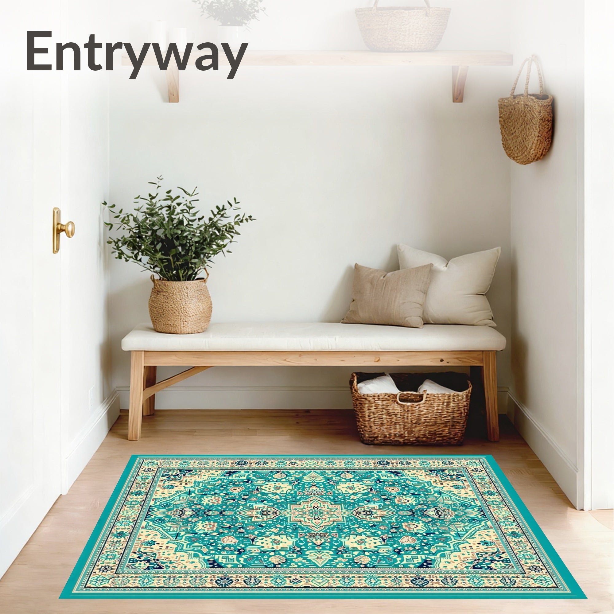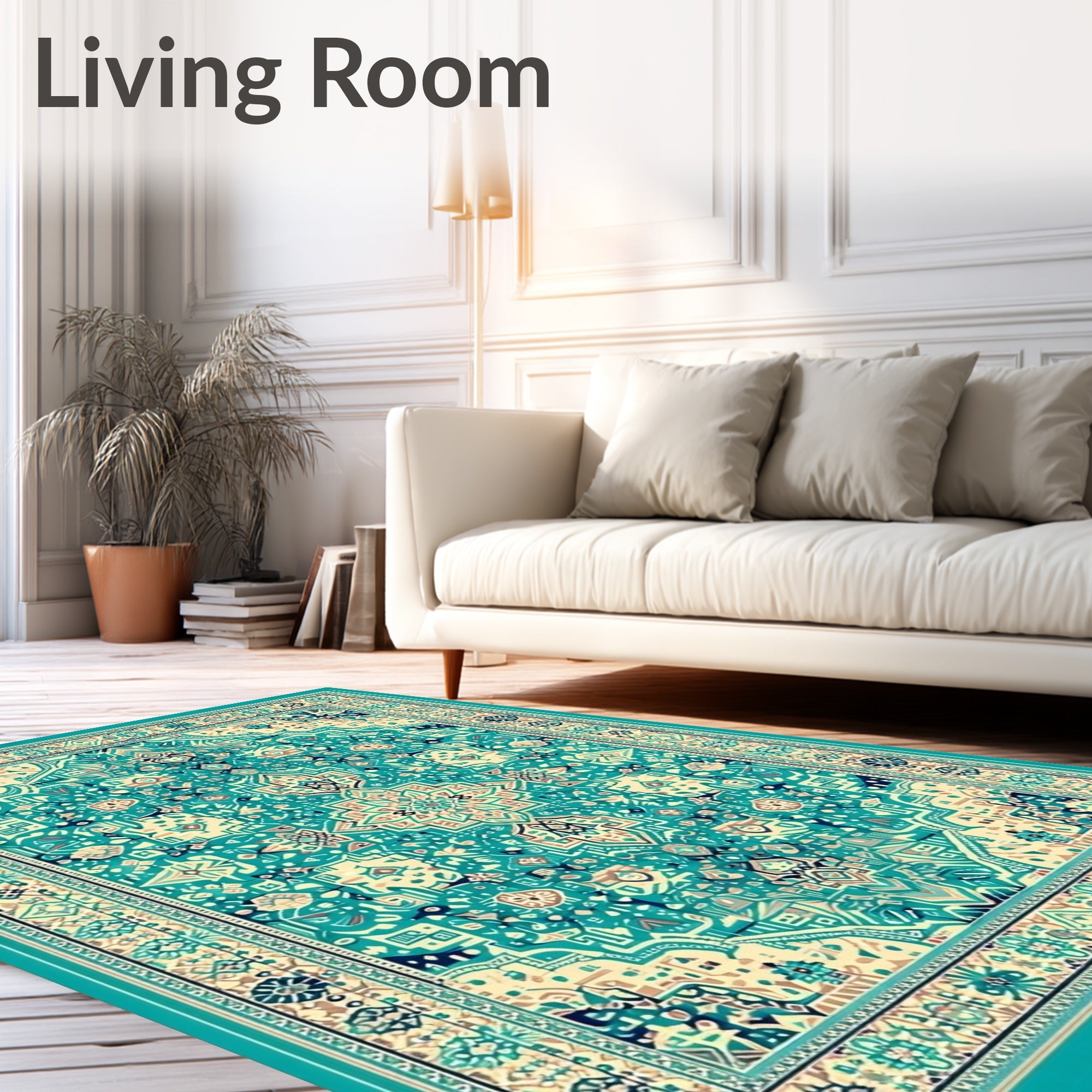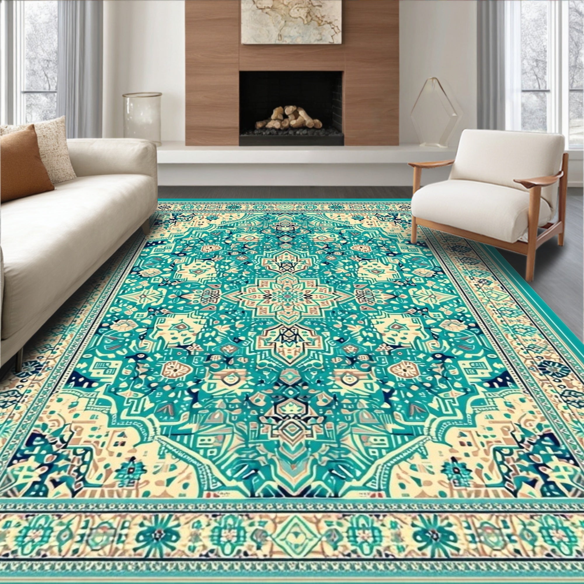 Ultra Soft Area Rug, Non Slip, Stain Resistant, Washable Area Rugs for Living Room, Bedroom, Elegant Turquoise Beige Geometric Area(Beige) Overview: