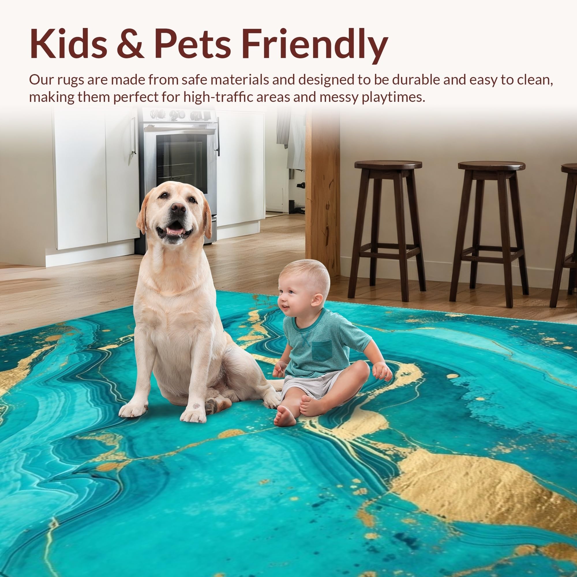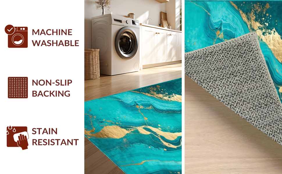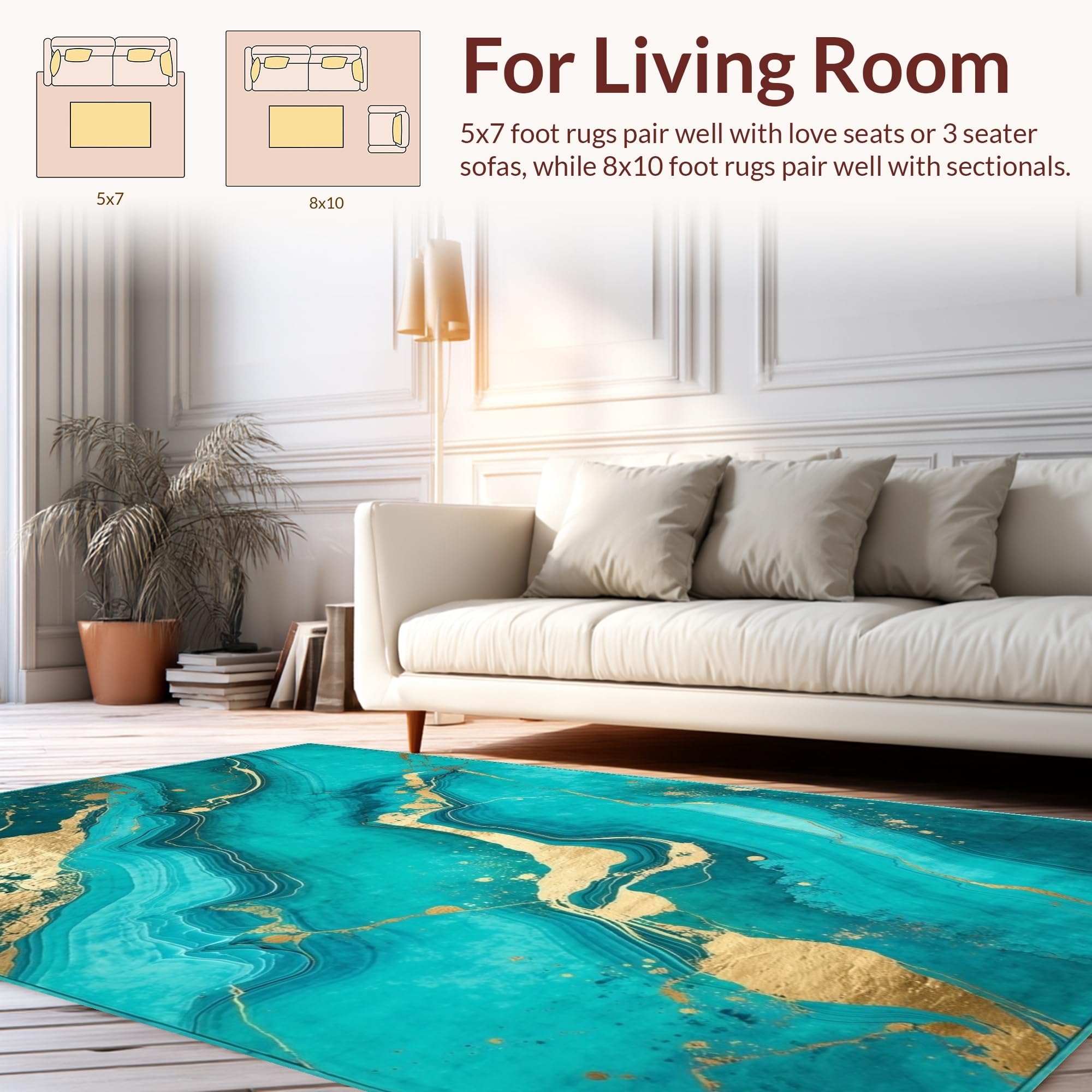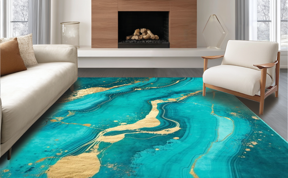 Ultra Soft Area Rug, Non Slip, Stain Resistant, Washable Area Rugs for Living Room, Bedroom, Elegant Turquoise Marble Aesthetic(Blue) Overview: