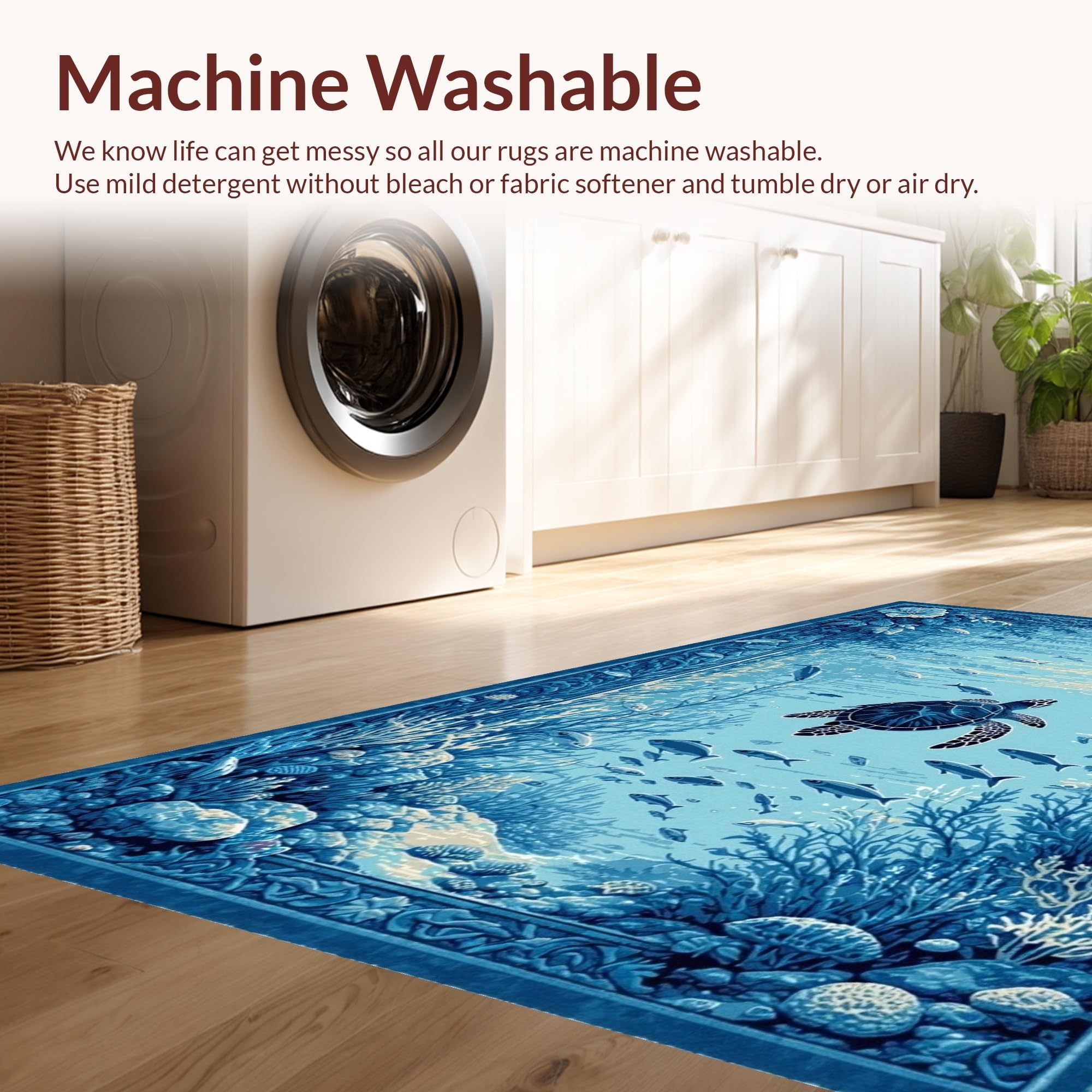 - Machine Washable: Our rugs can be easily thrown in the wash machine.