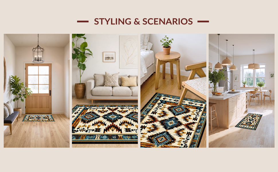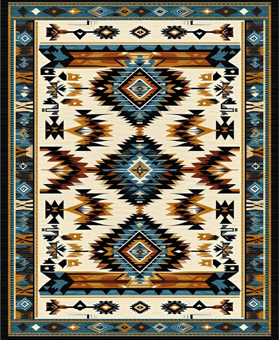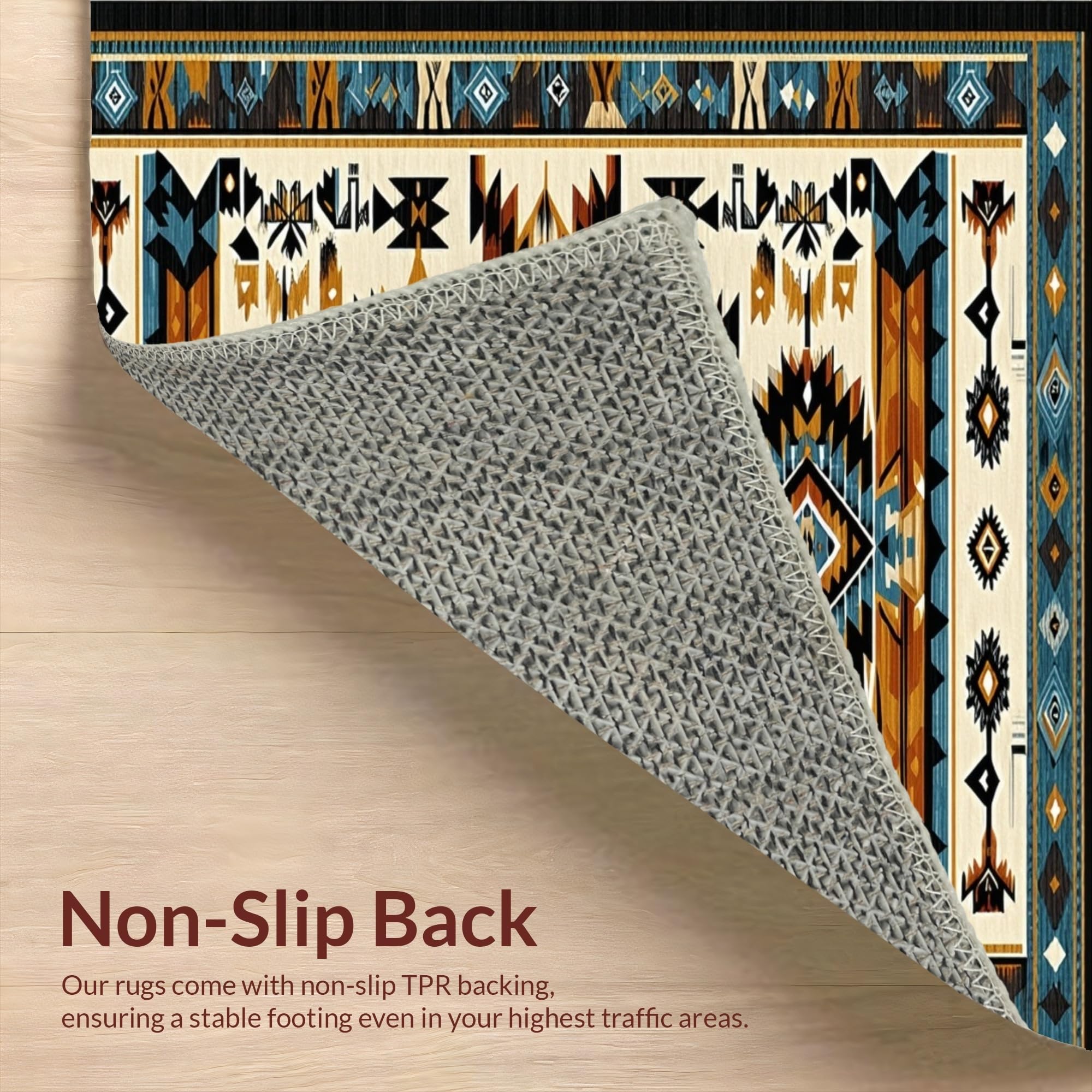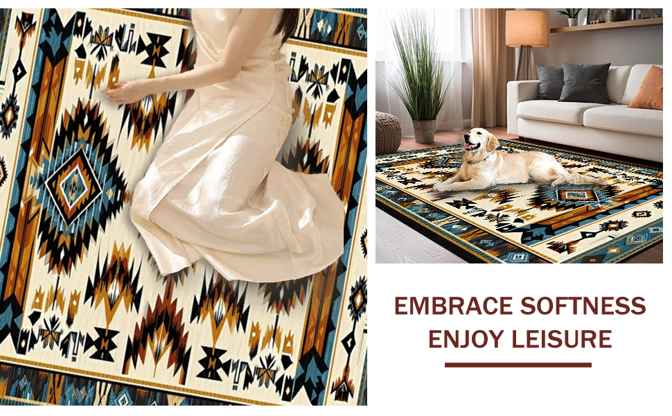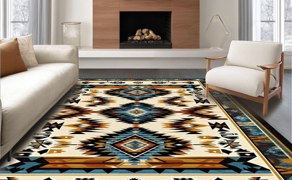 Ultra Soft Area Rug, Non Slip, Stain Resistant, Washable Area Rugs for Living Room, Bedroom, Elegant Vintage Aztec Textile Design(Beige) Overview: