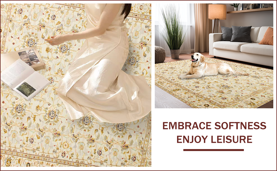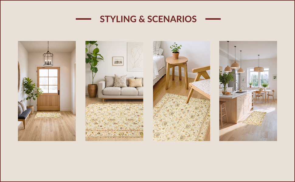 Ultra Soft Area Rug, Non Slip, Stain Resistant, Washable Area Rugs for Living Room, Bedroom, Elegant Vintage Botanical Arrangement(Beige) Overview: