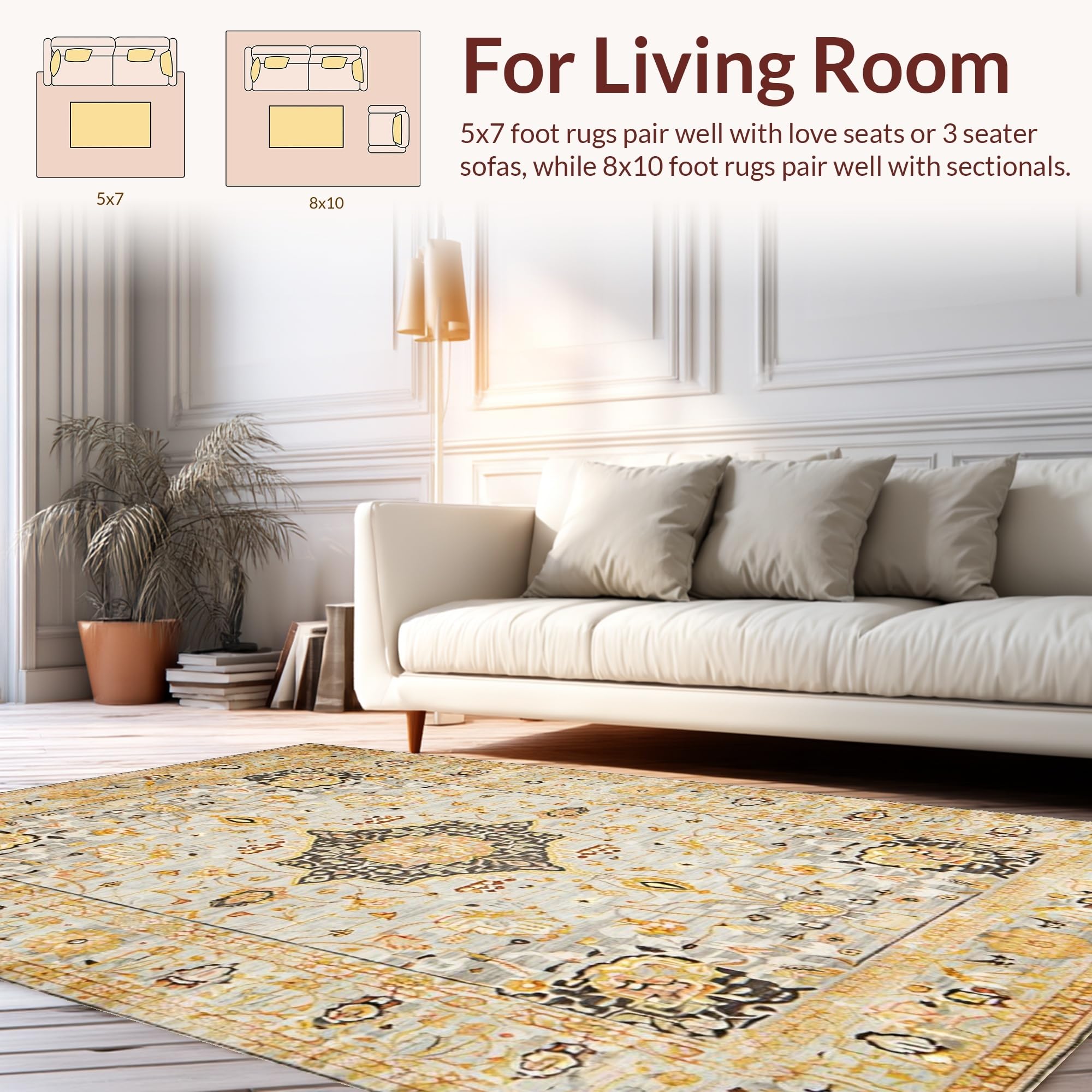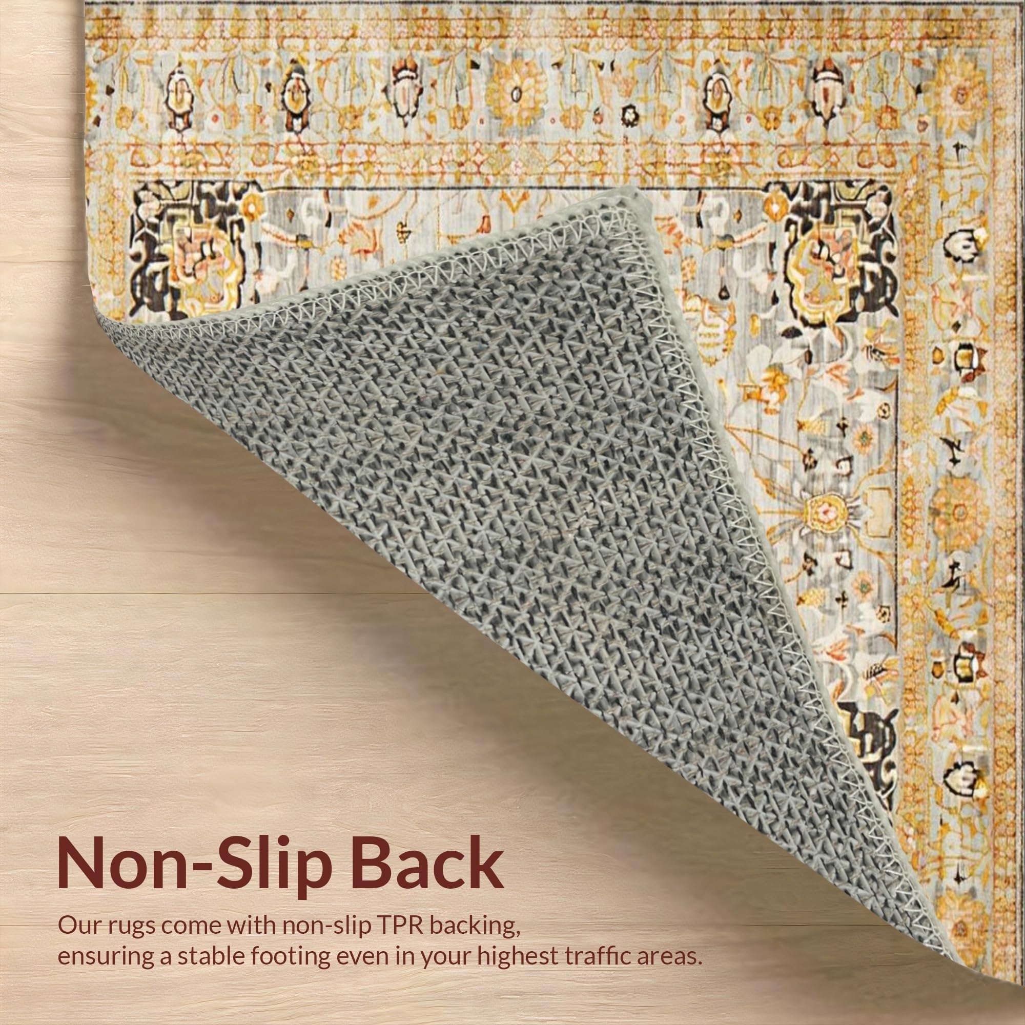 Ultra Soft Area Rug, Non Slip, Stain Resistant, Washable Area Rugs for Living Room, Bedroom, Elegant Vintage Botanical Print(Gray) Overview: