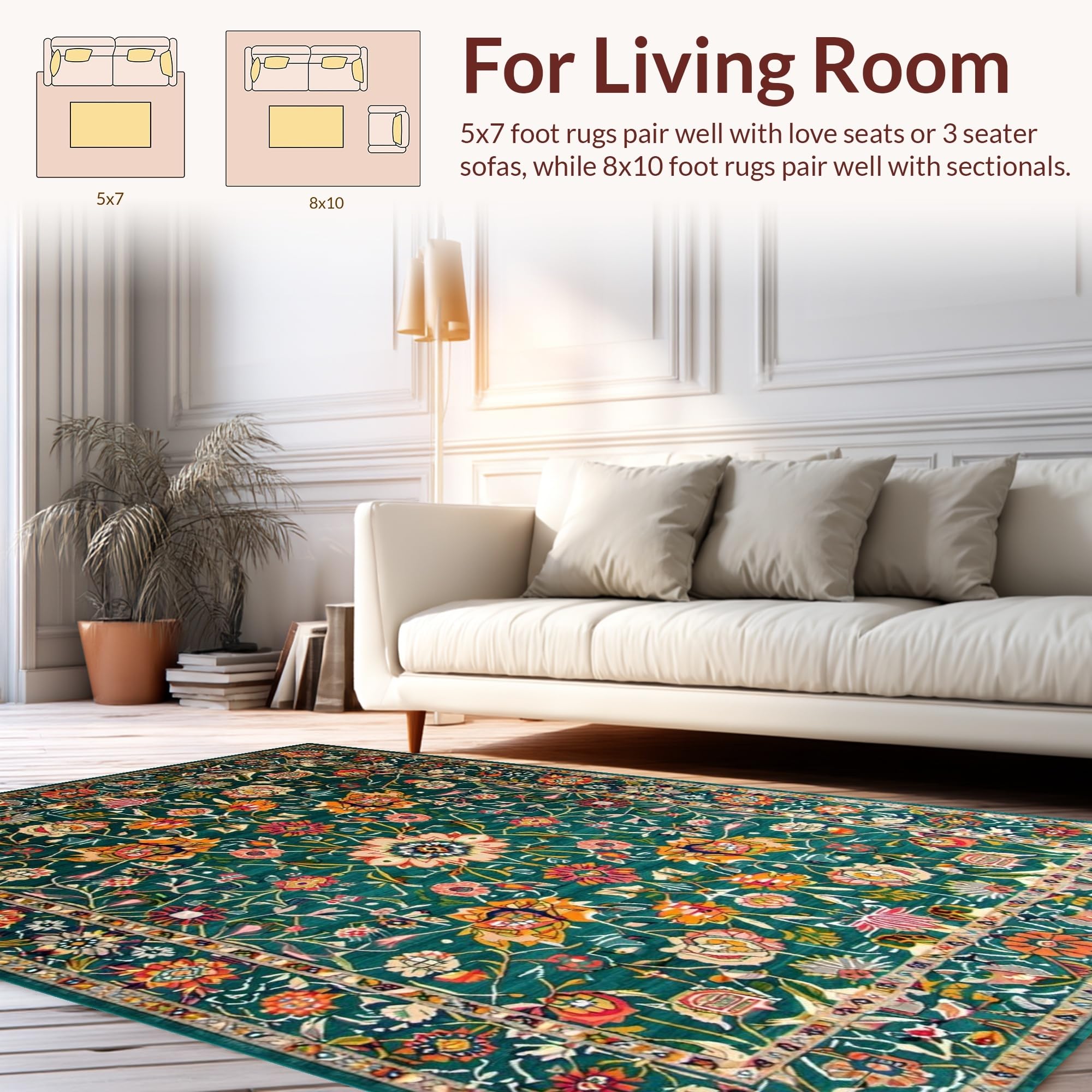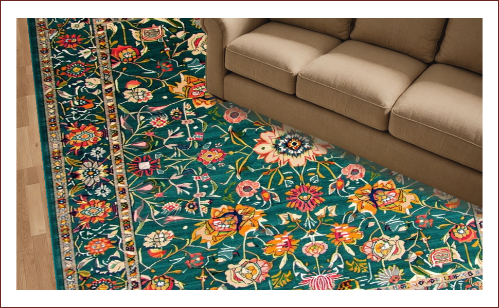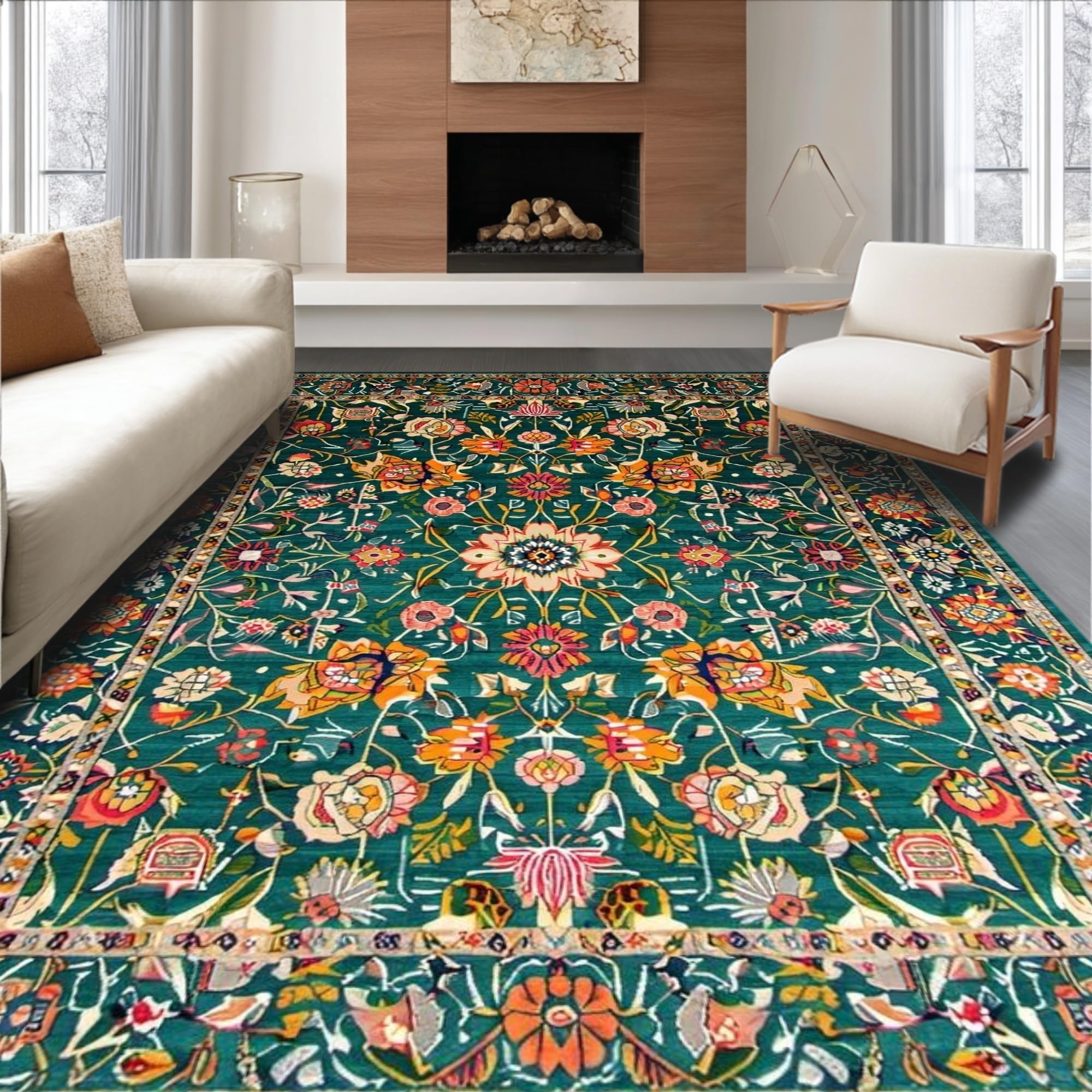 Ultra Soft Area Rug, Non Slip, Stain Resistant, Washable Area Rugs for Living Room, Bedroom, Elegant Vintage Floral Aesthetic(Green) Overview: