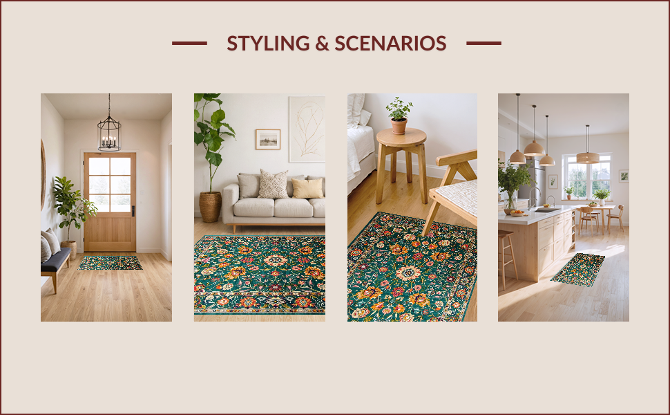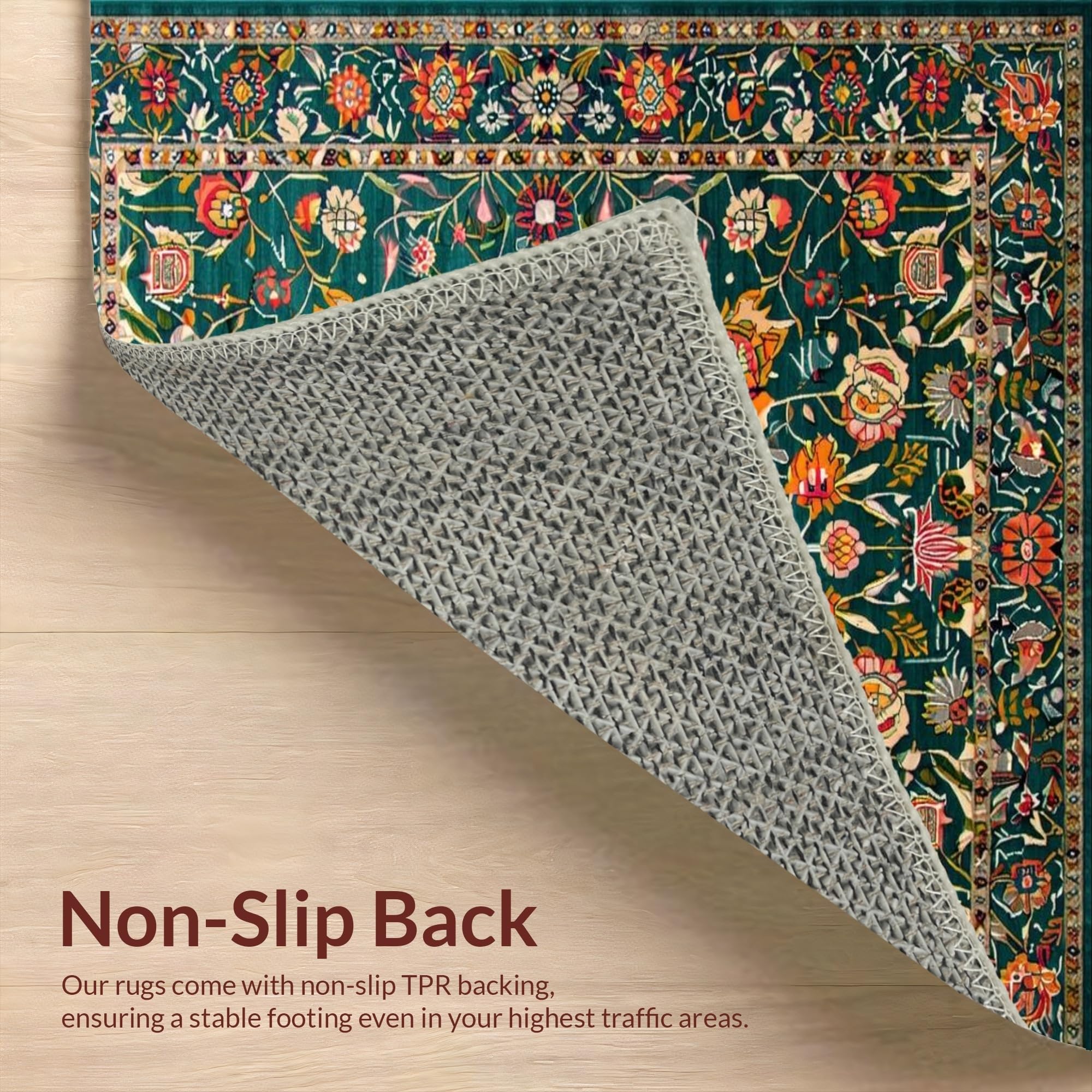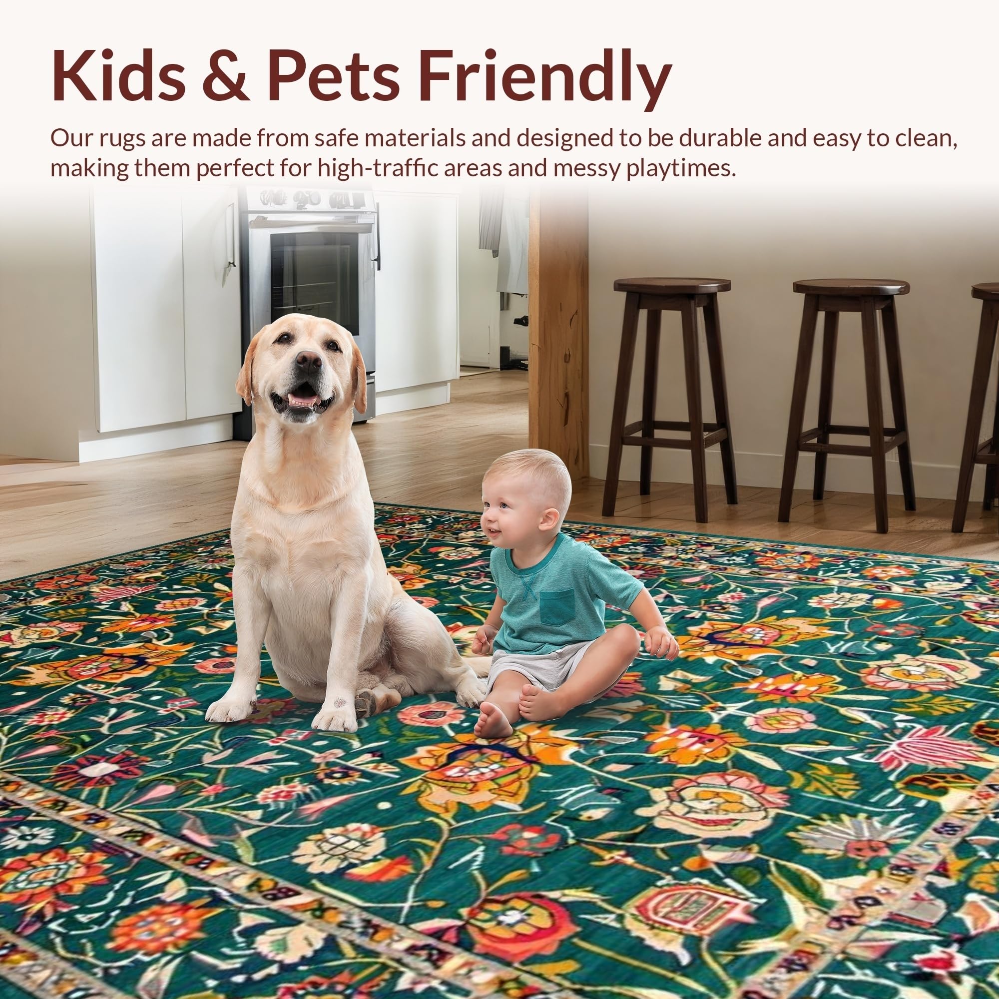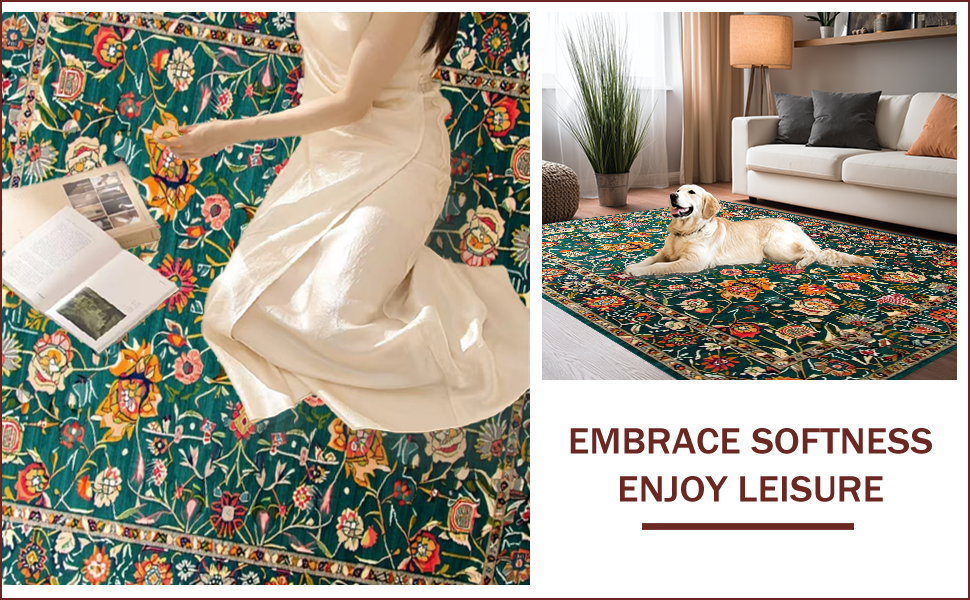 Ultra Soft Area Rug, Non Slip, Stain Resistant, Washable Area Rugs for Living Room, Bedroom, Elegant Vintage Floral Aesthetic(Green) Overview: