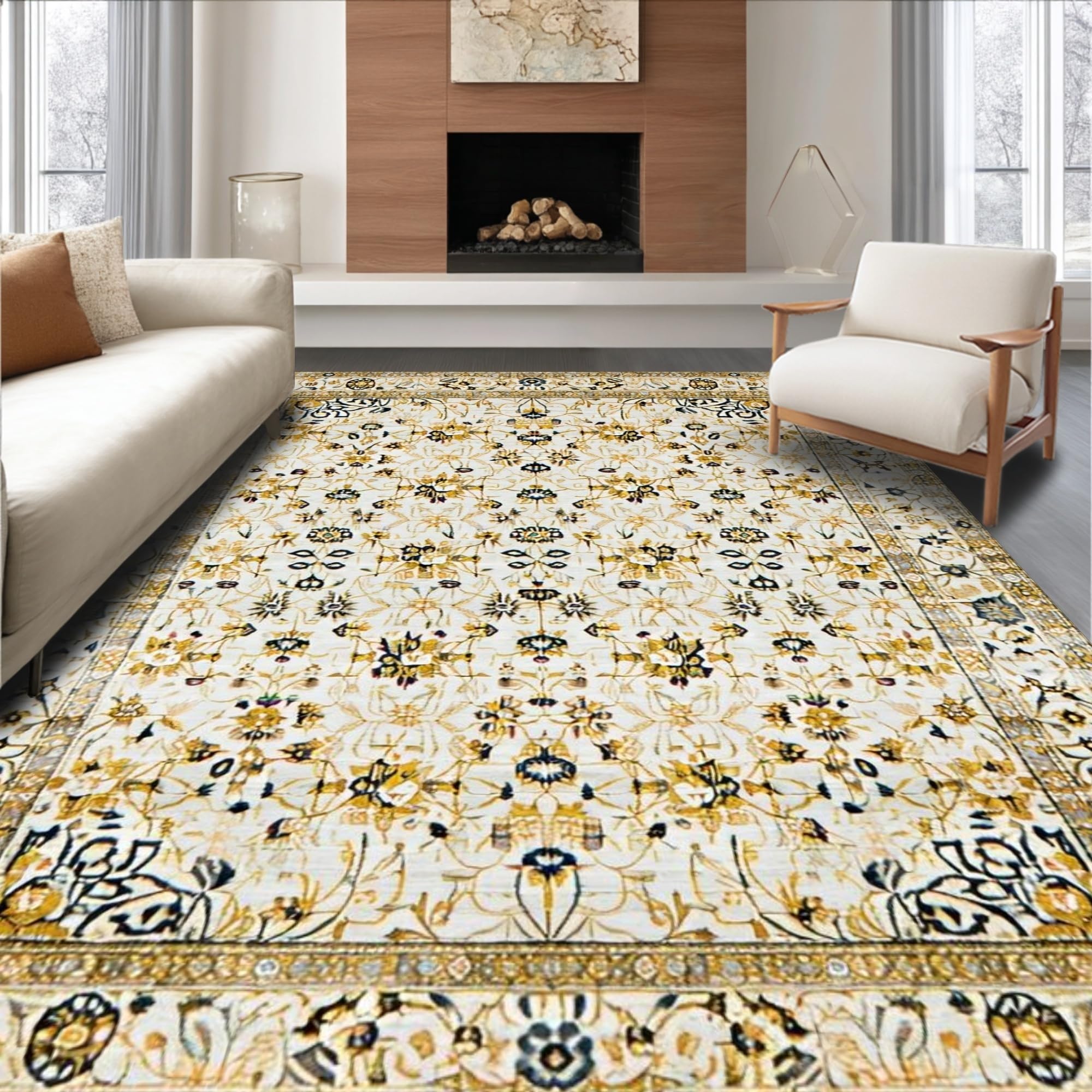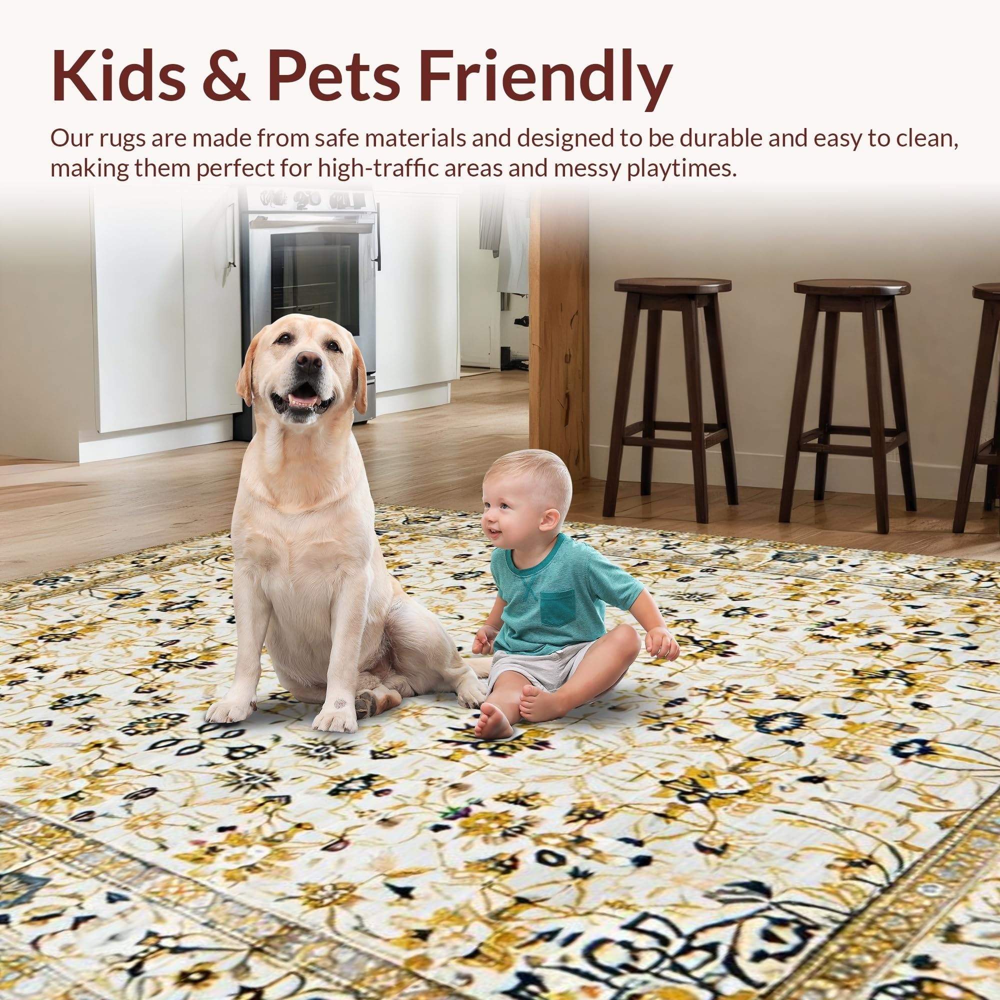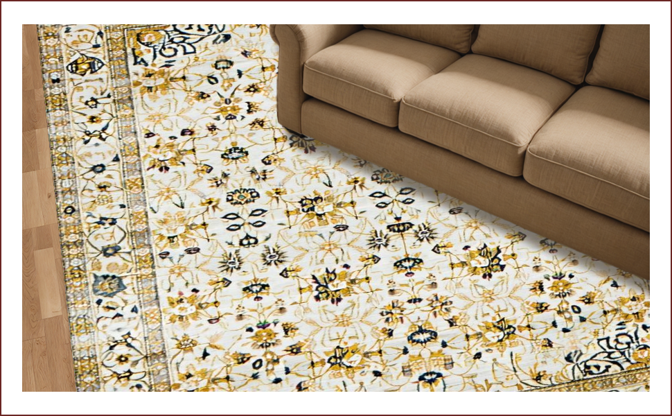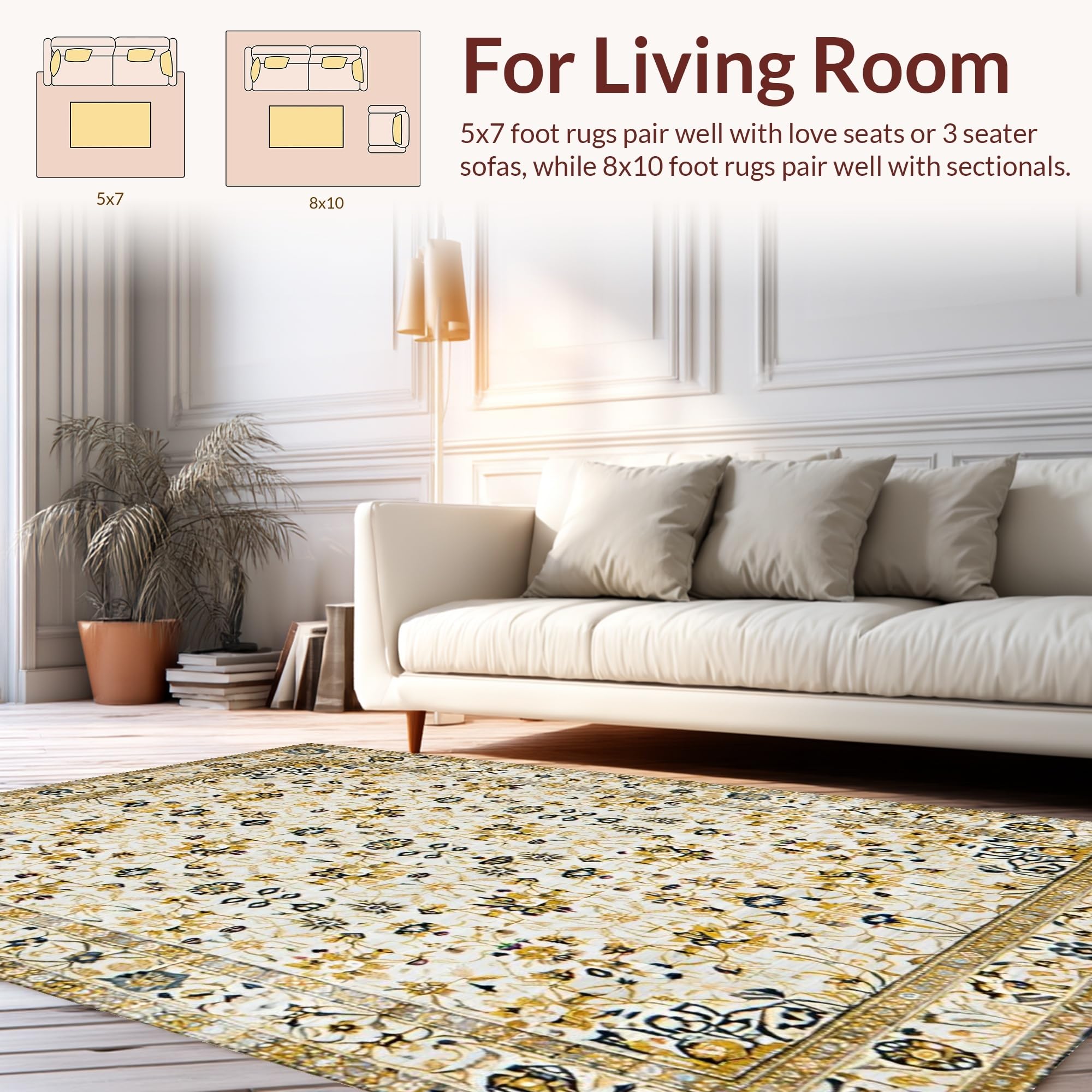 Ultra Soft Area Rug, Non Slip, Stain Resistant, Washable Area Rugs for Living Room, Bedroom, Elegant Vintage Floral Composition(Beige) Overview: