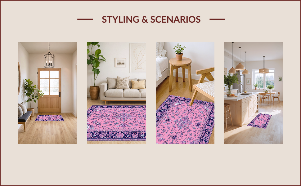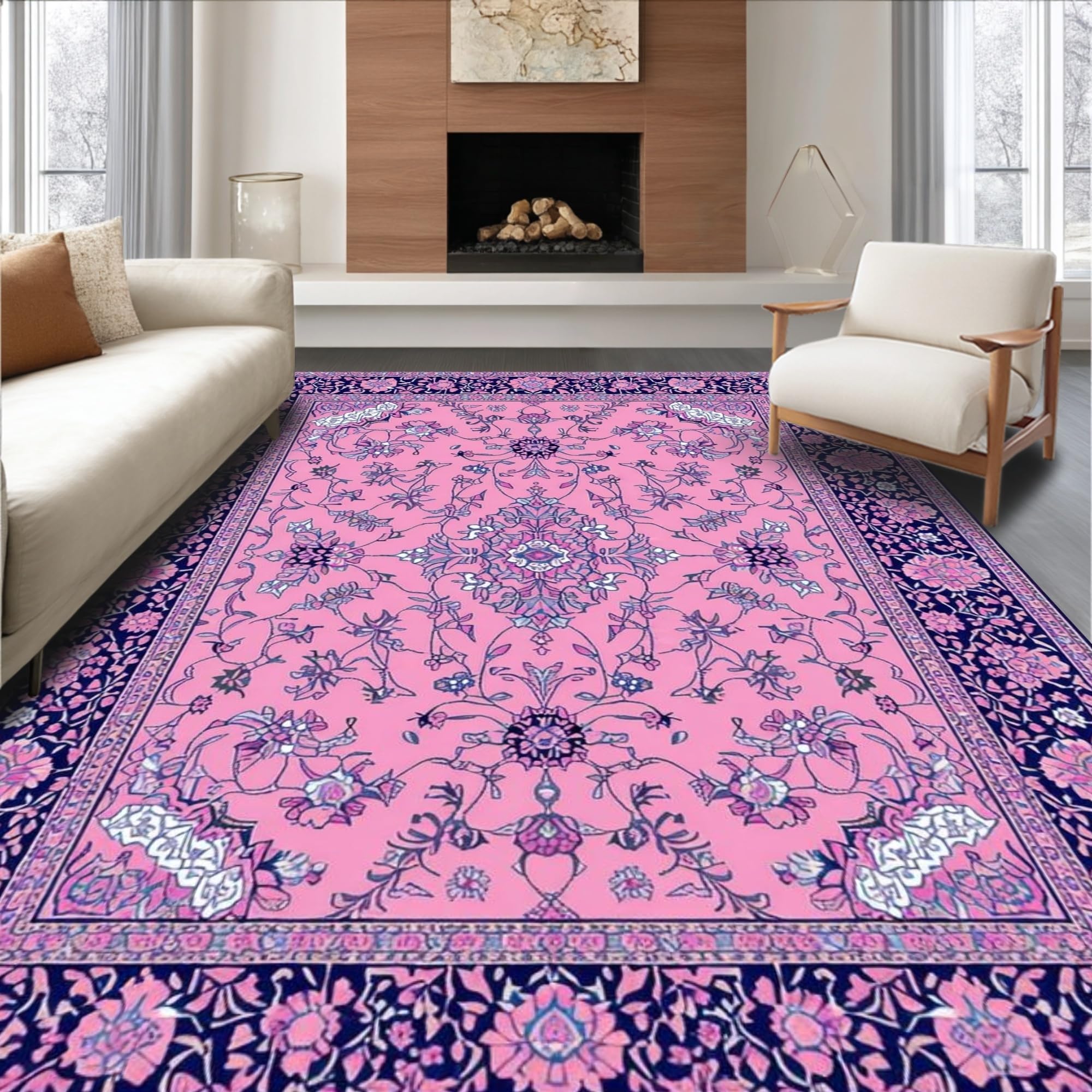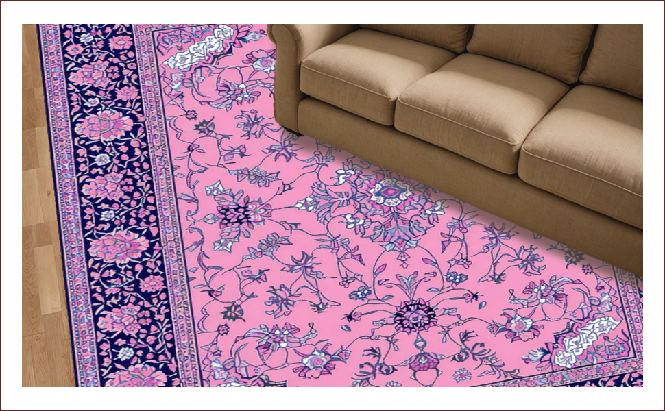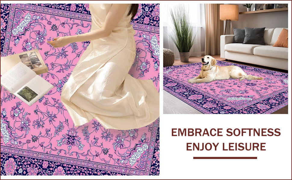 Ultra Soft Area Rug, Non Slip, Stain Resistant, Washable Area Rugs for Living Room, Bedroom, Elegant Vintage Floral Motif(Pink) Overview: