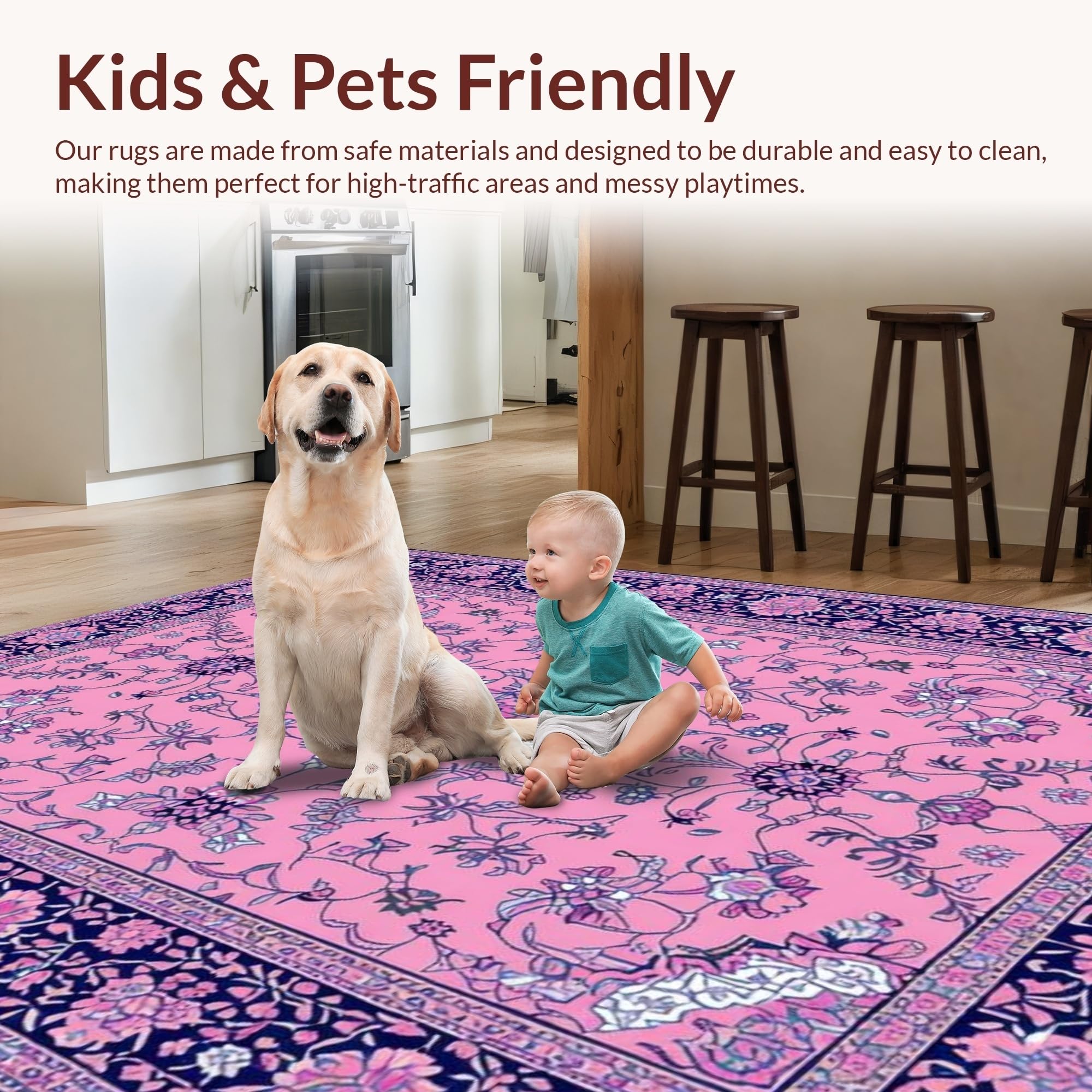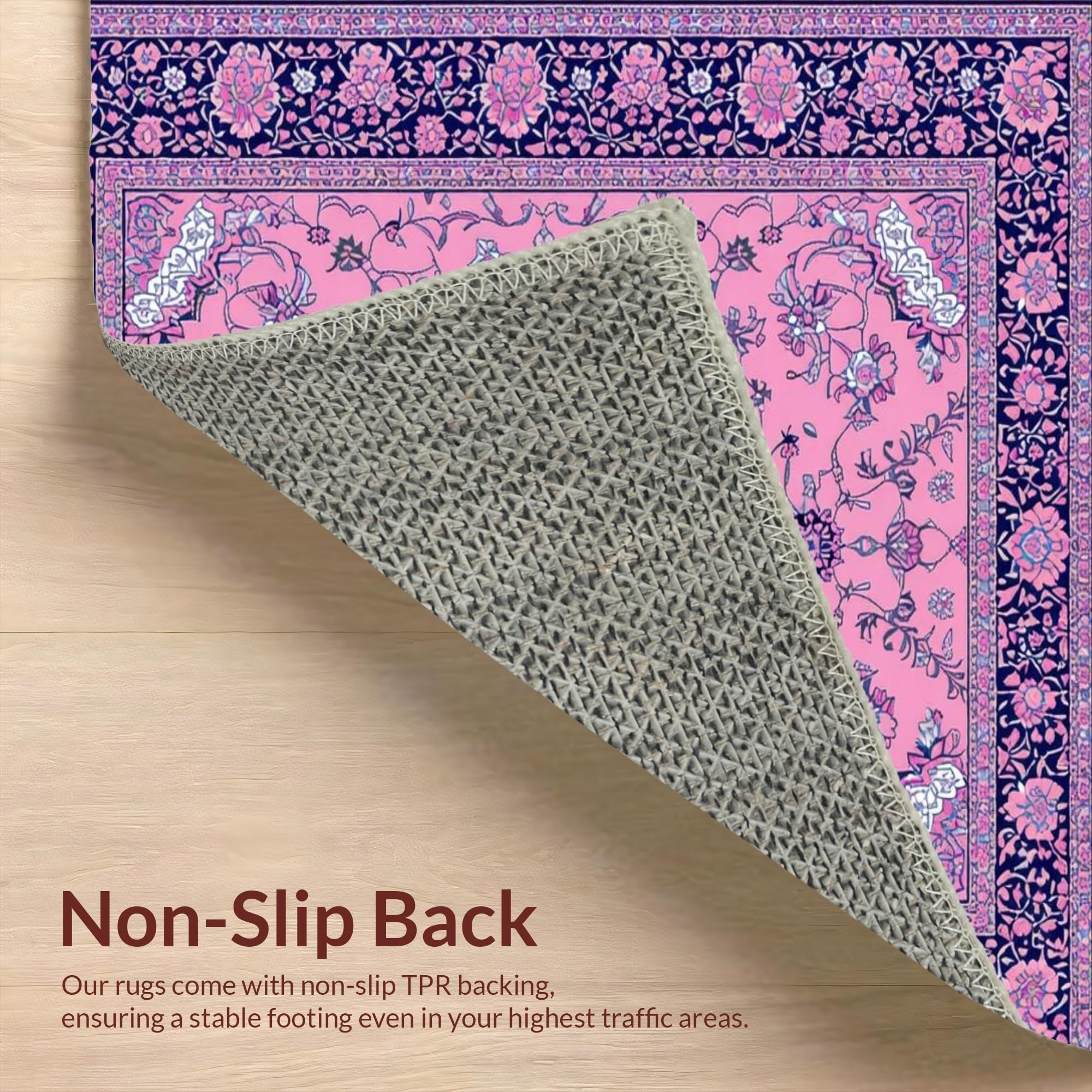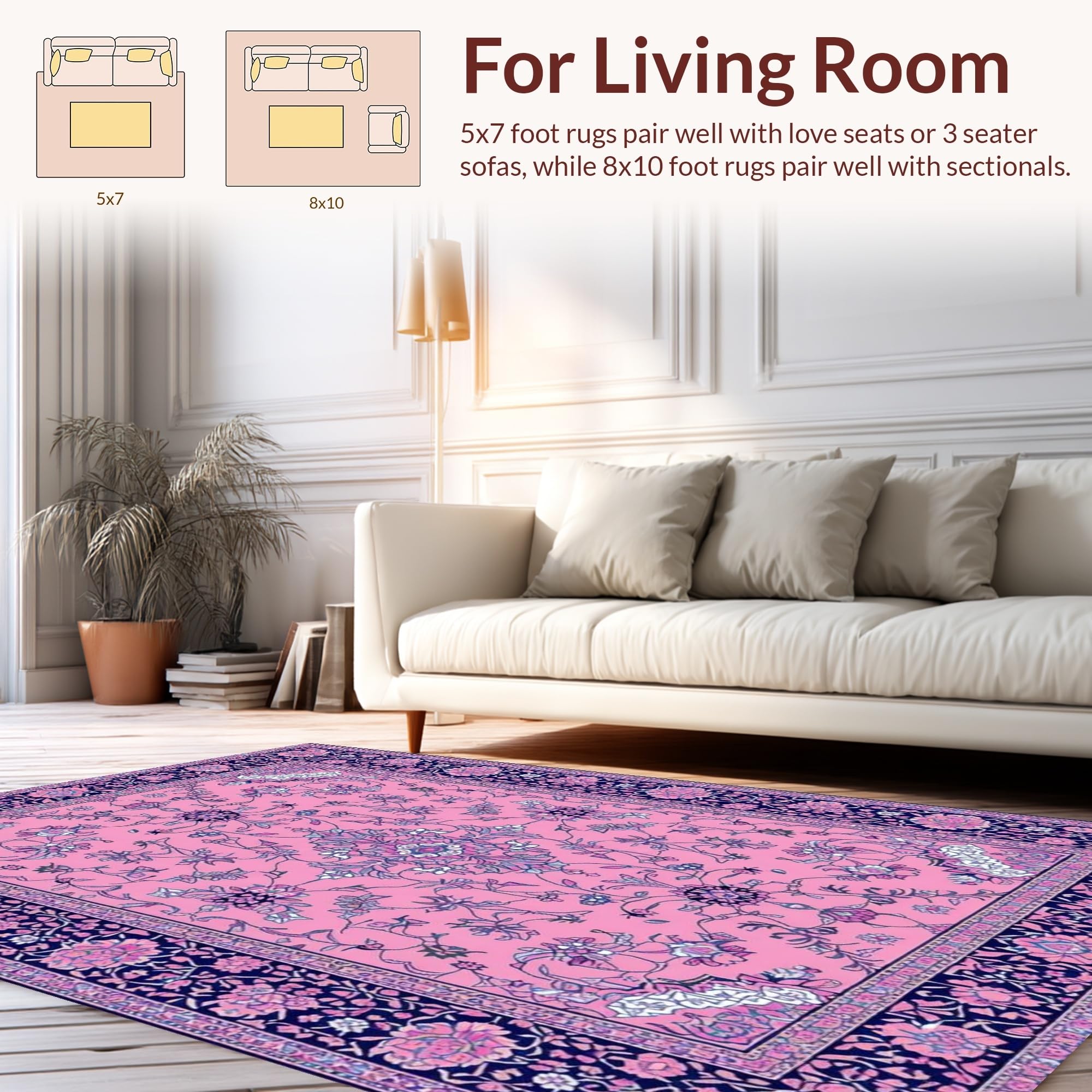 Ultra Soft Area Rug, Non Slip, Stain Resistant, Washable Area Rugs for Living Room, Bedroom, Elegant Vintage Floral Motif(Pink) Overview: