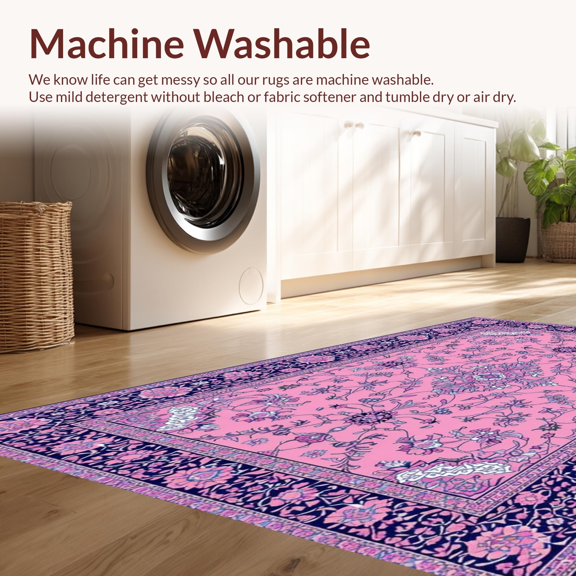 - Machine Washable: Our rugs can be easily thrown in the wash machine.