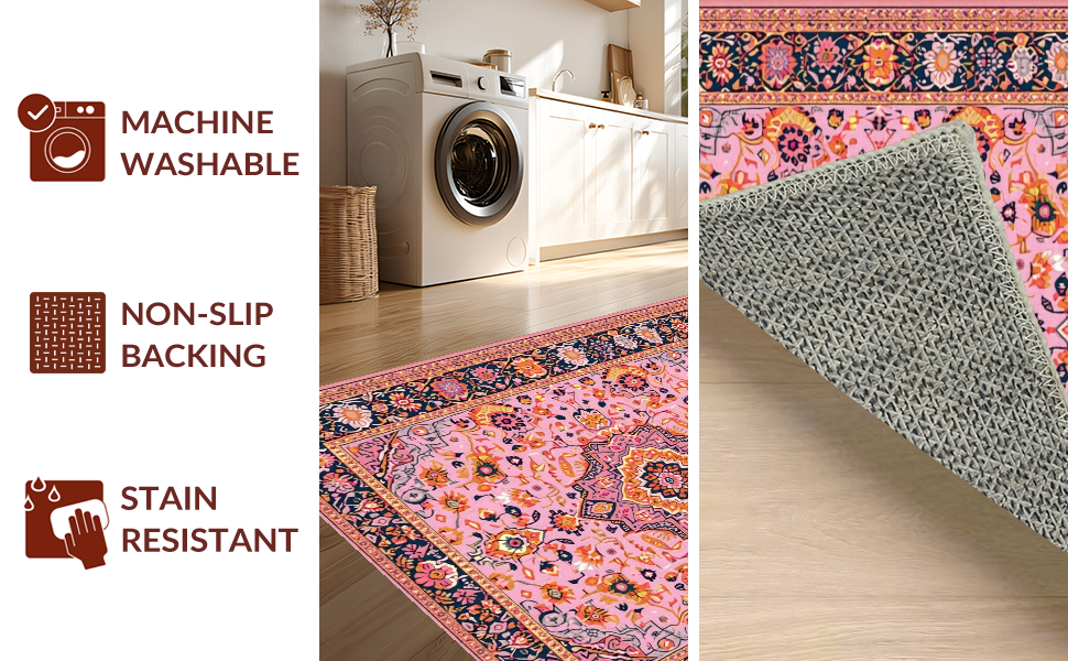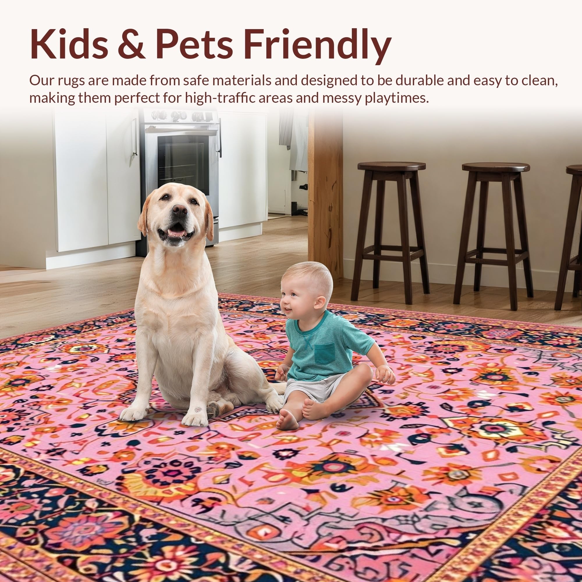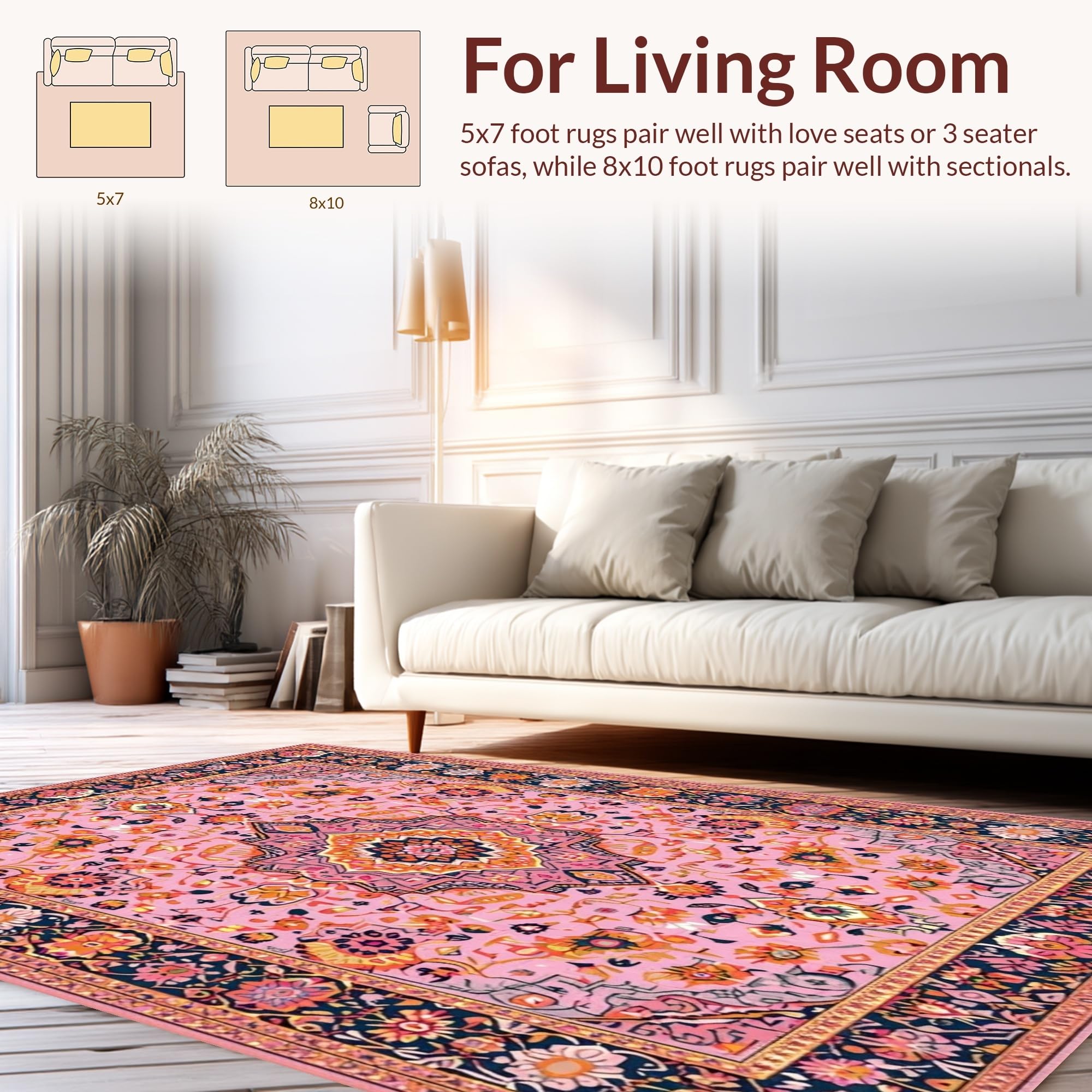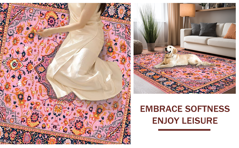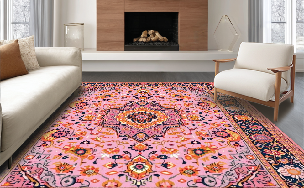 Ultra Soft Area Rug, Non Slip, Stain Resistant, Washable Area Rugs for Living Room, Bedroom, Elegant Vintage Floral Tapestry(Pink) Overview:
