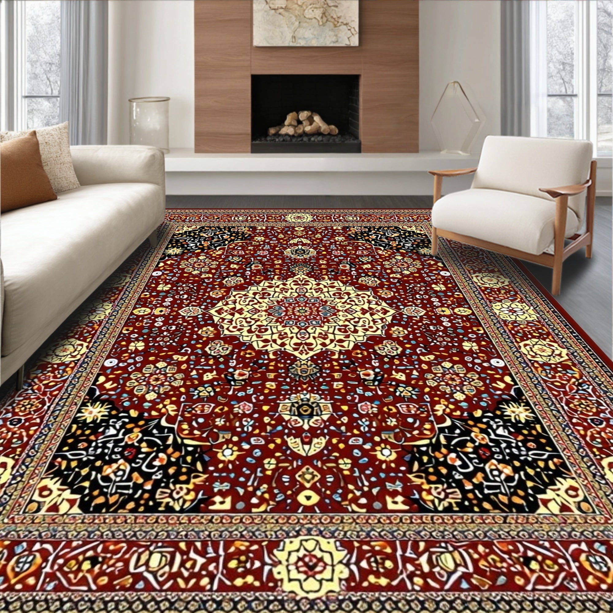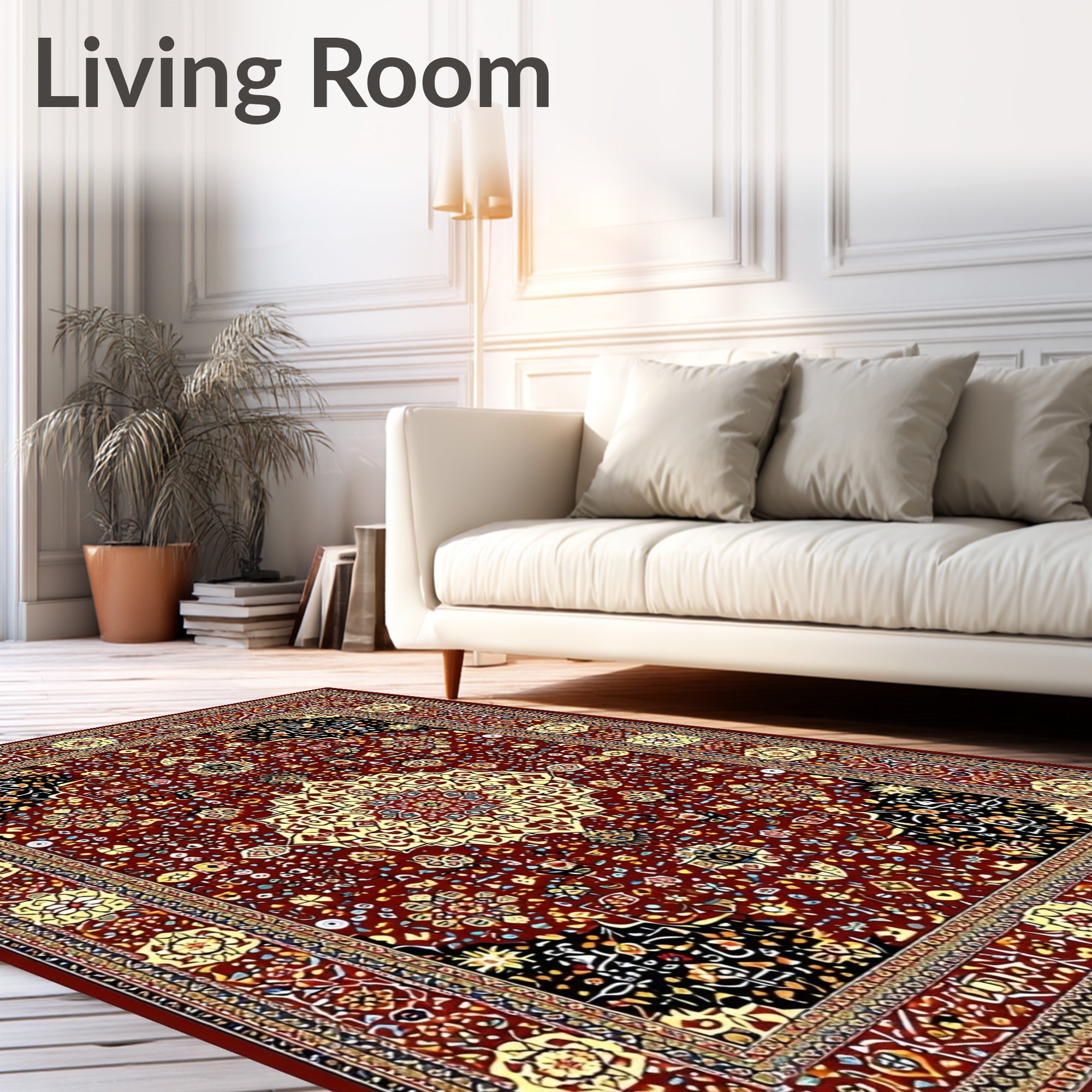 Ultra Soft Area Rug, Non Slip, Stain Resistant, Washable Area Rugs for Living Room, Bedroom, Elegant Vintage for Living Space(Red) Overview: