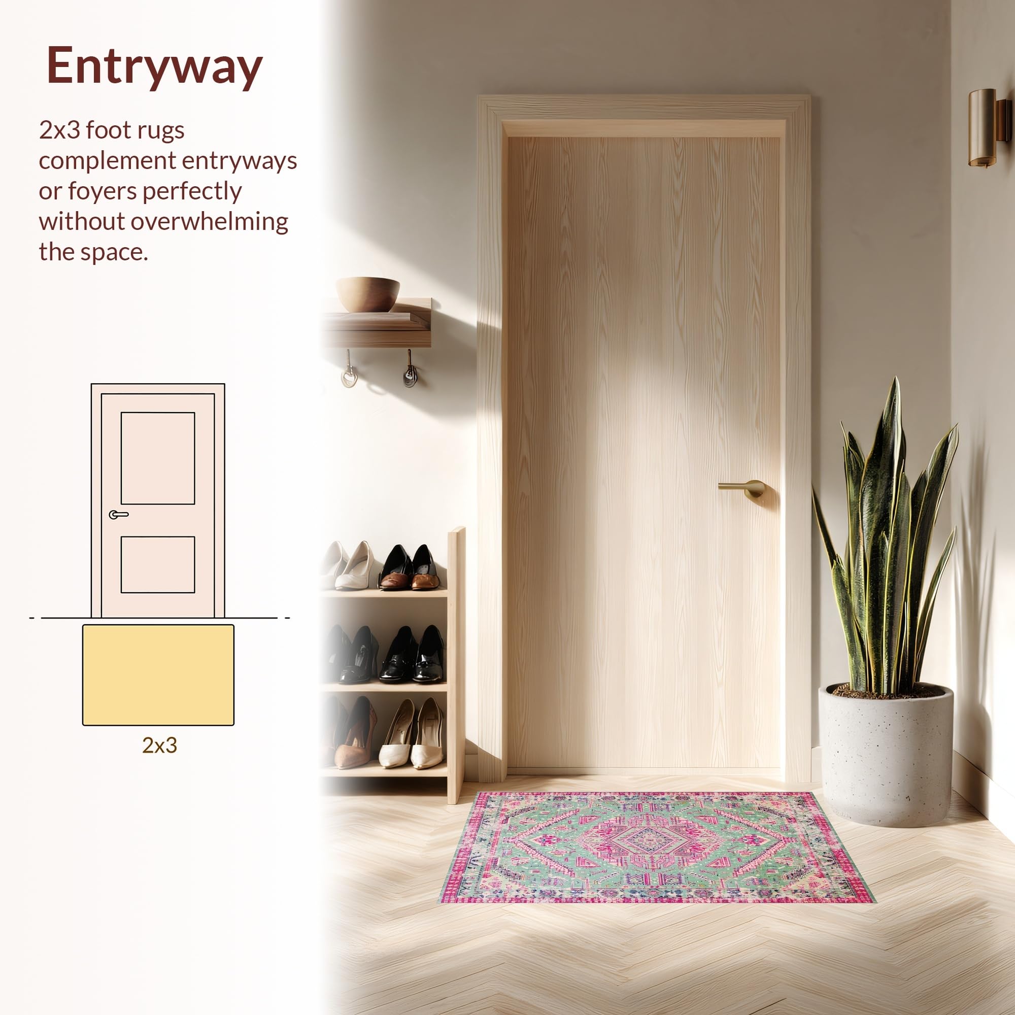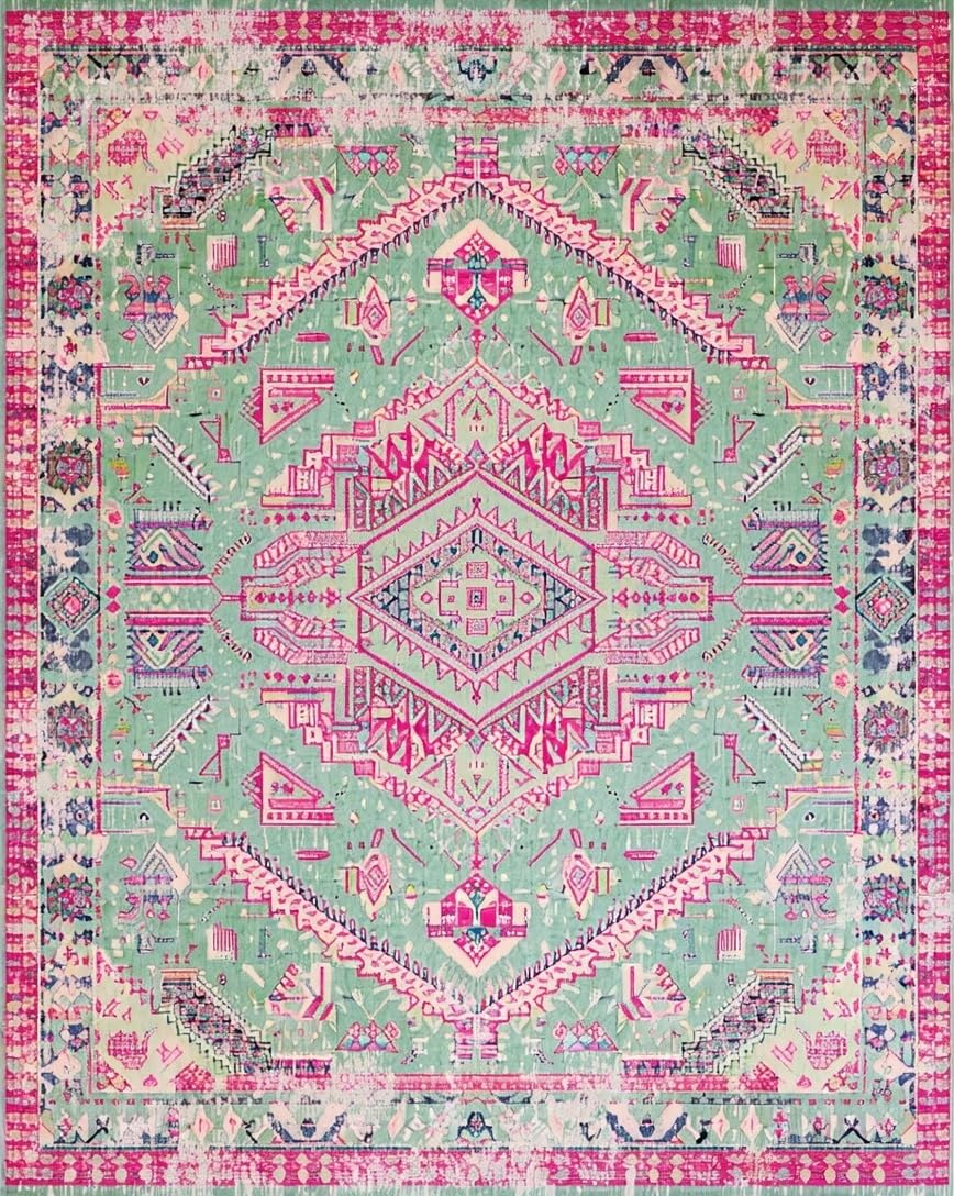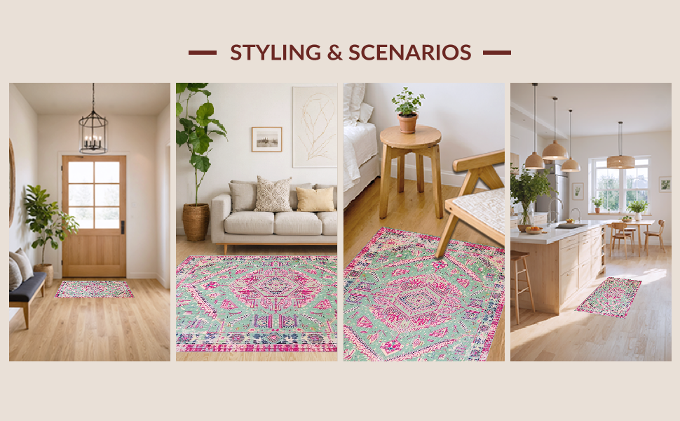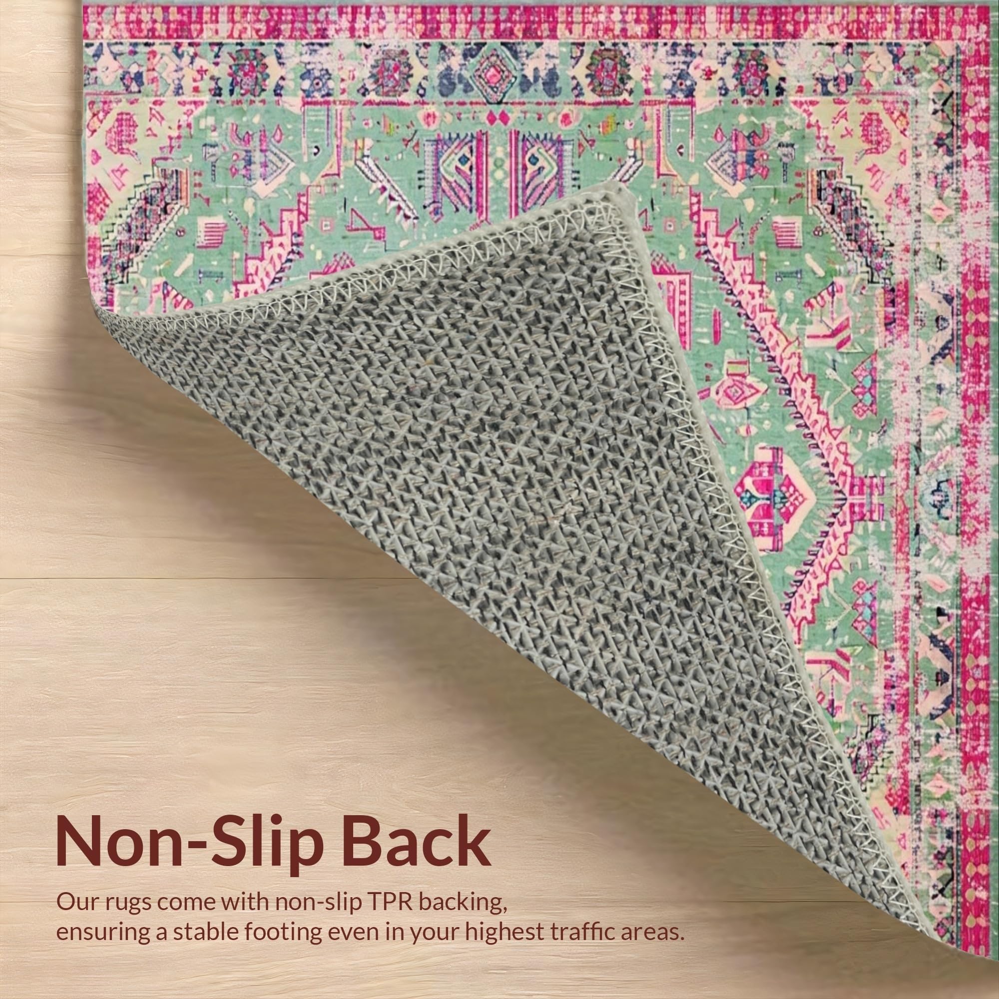 Ultra Soft Area Rug, Non Slip, Stain Resistant, Washable Area Rugs for Living Room, Bedroom, Elegant Vintage Geometric Motif Fusion(Green) Overview:
