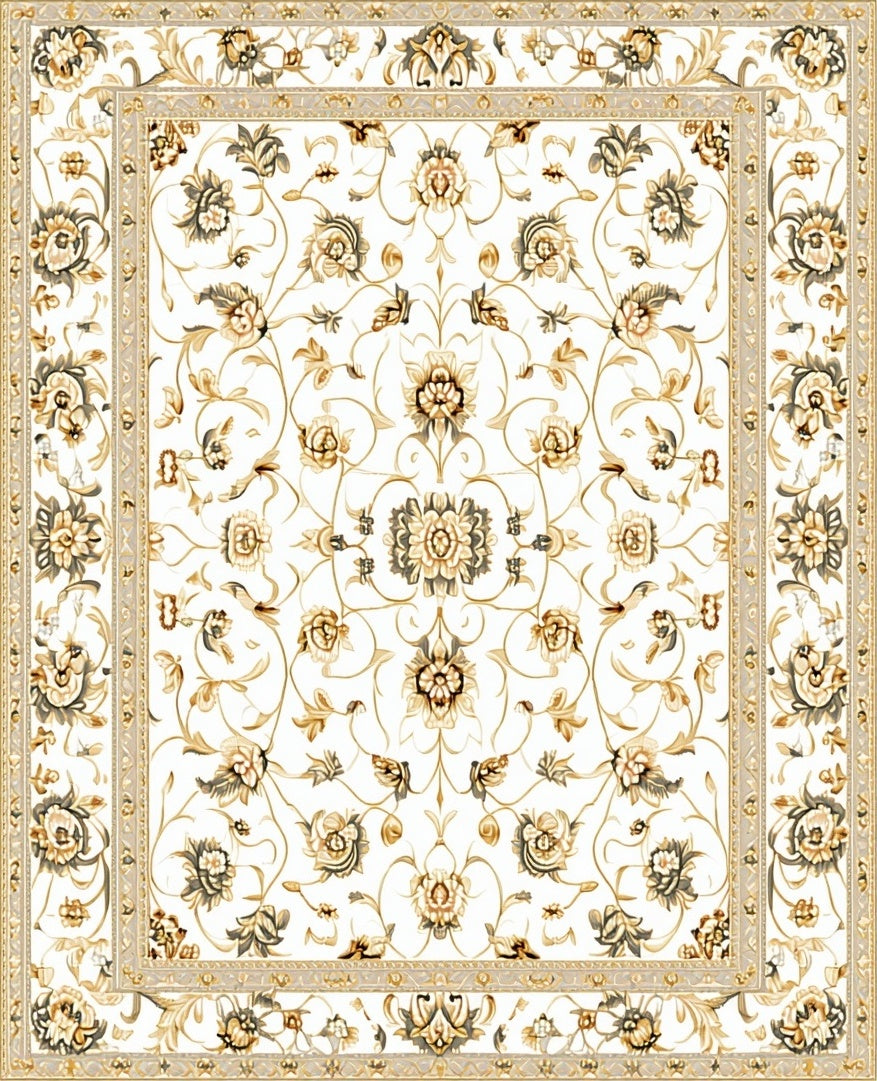 Flatwoven High Traffic Area Rug, Elegant Vintage Inspired with Classic Floral and Neutral Tones, Non Slip, Stain Resistant, Washable Area Rugs for Living Room, Bedroom (White) Overview: