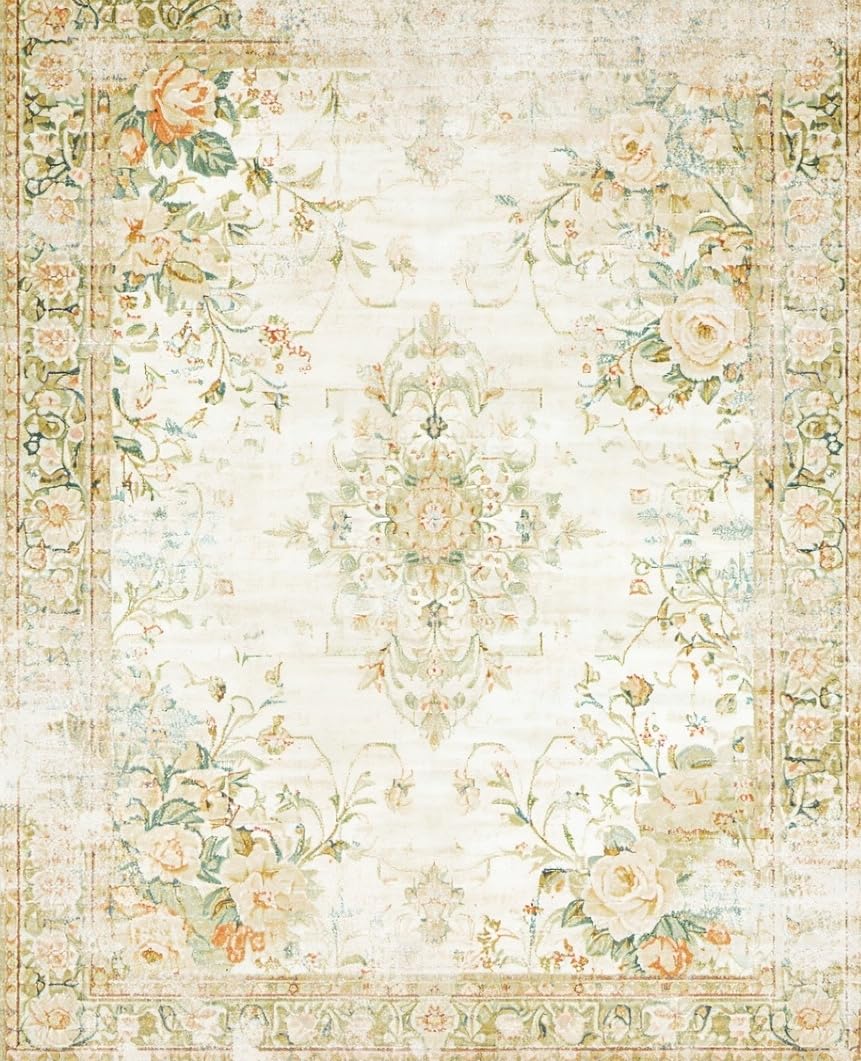 Ultra Soft Area Rug, Non Slip, Stain Resistant, Washable Area Rugs for Living Room, Bedroom, Elegant Vintage Inspired Area with Distressed Floral Motifs(Beige) Overview: