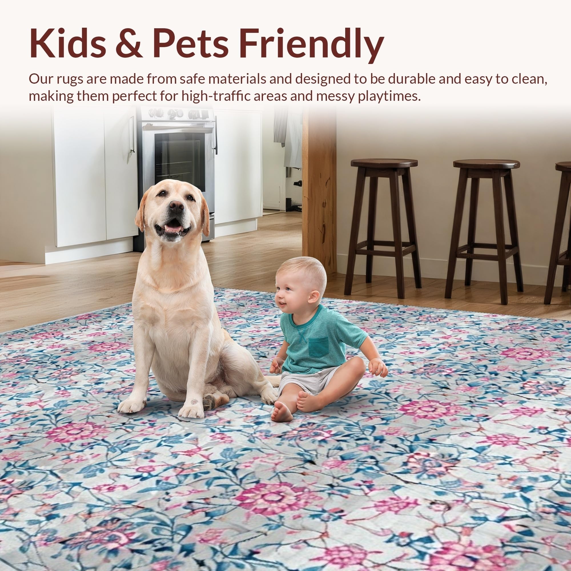 Ultra Soft Area Rug, Non Slip, Stain Resistant, Washable Area Rugs for Living Room, Bedroom, Elegant Vintage Medallion Appeal(Gray) Overview: