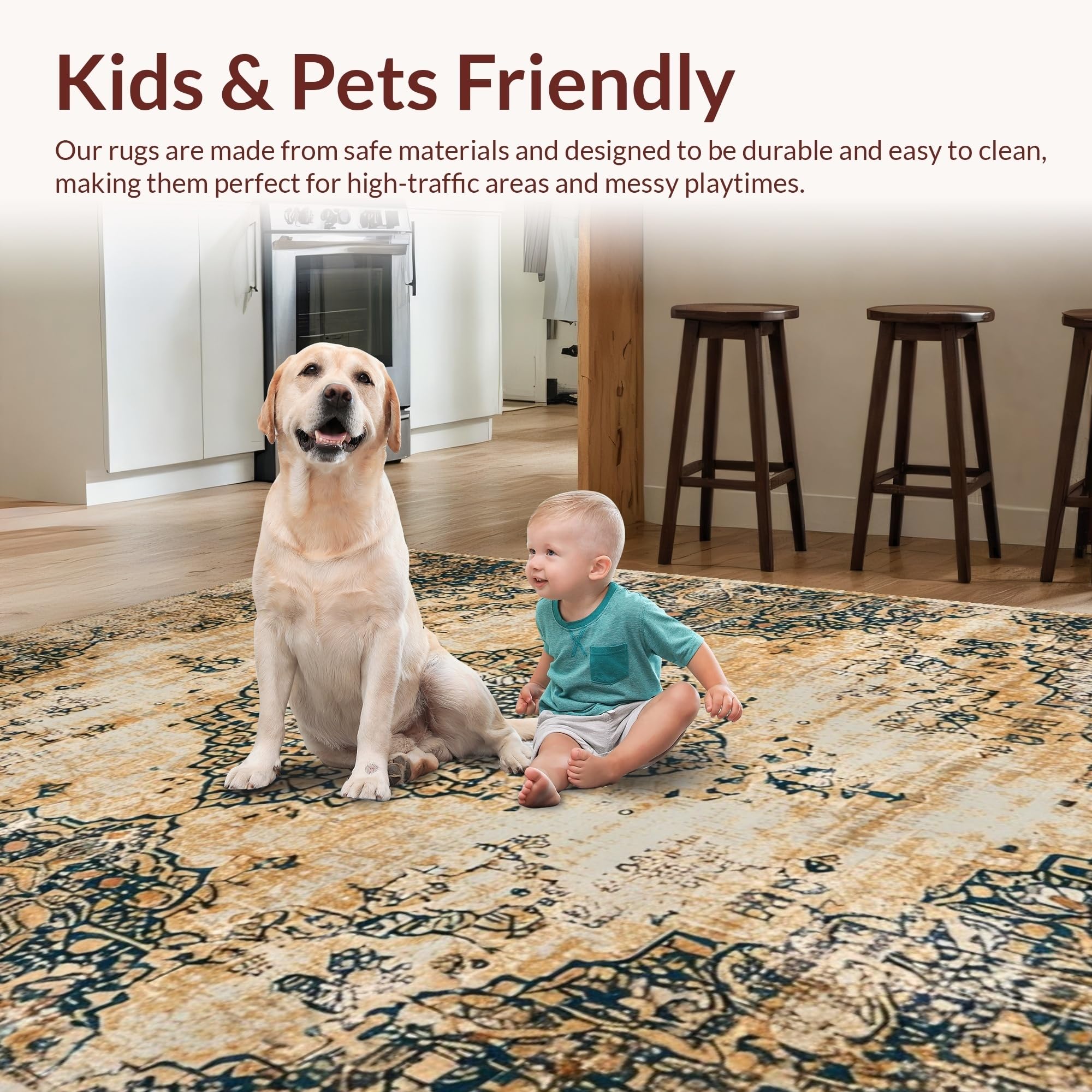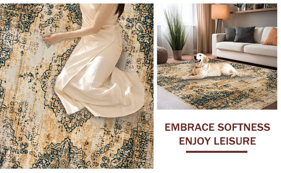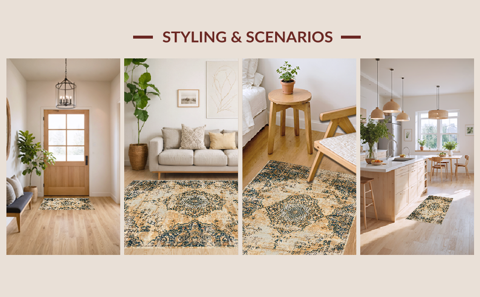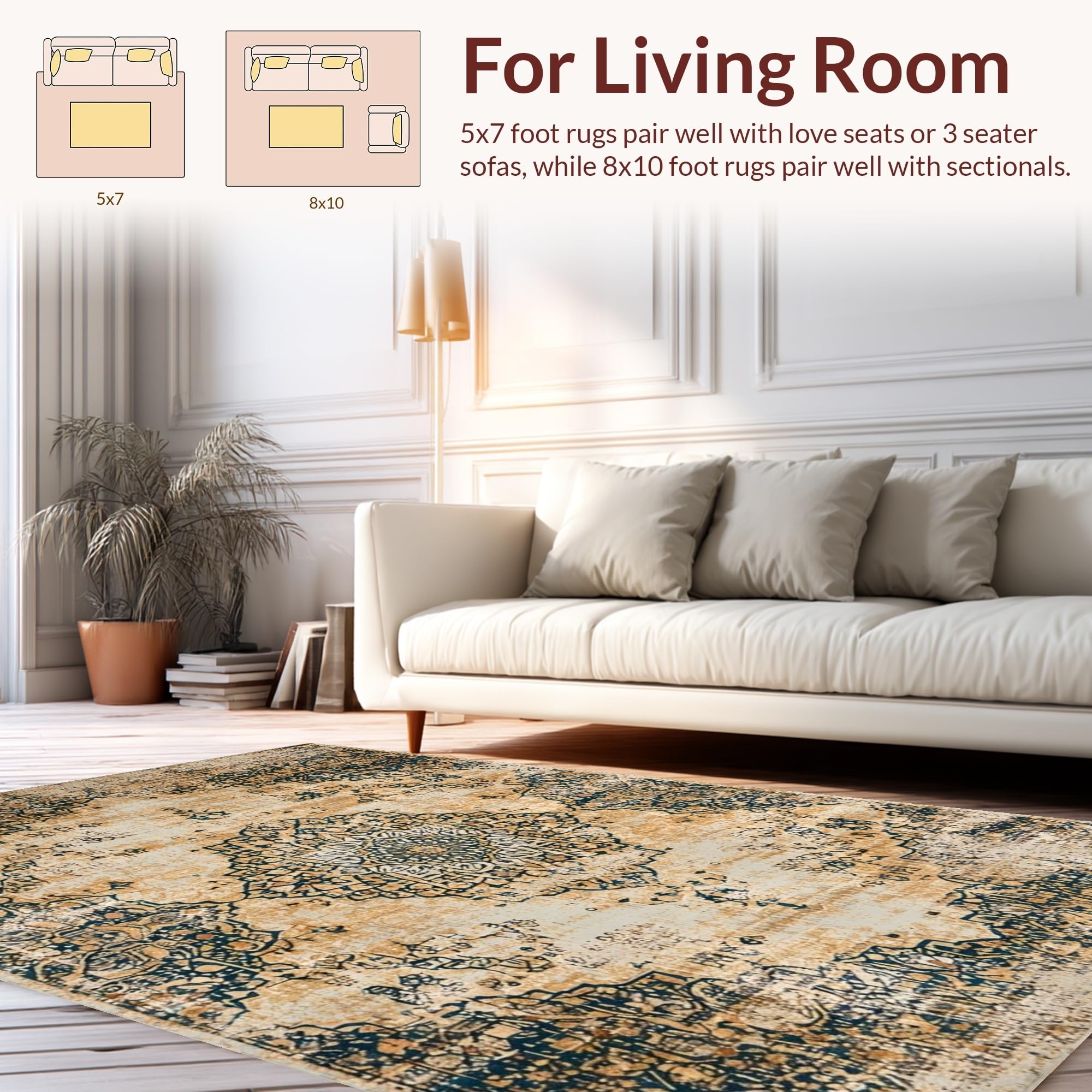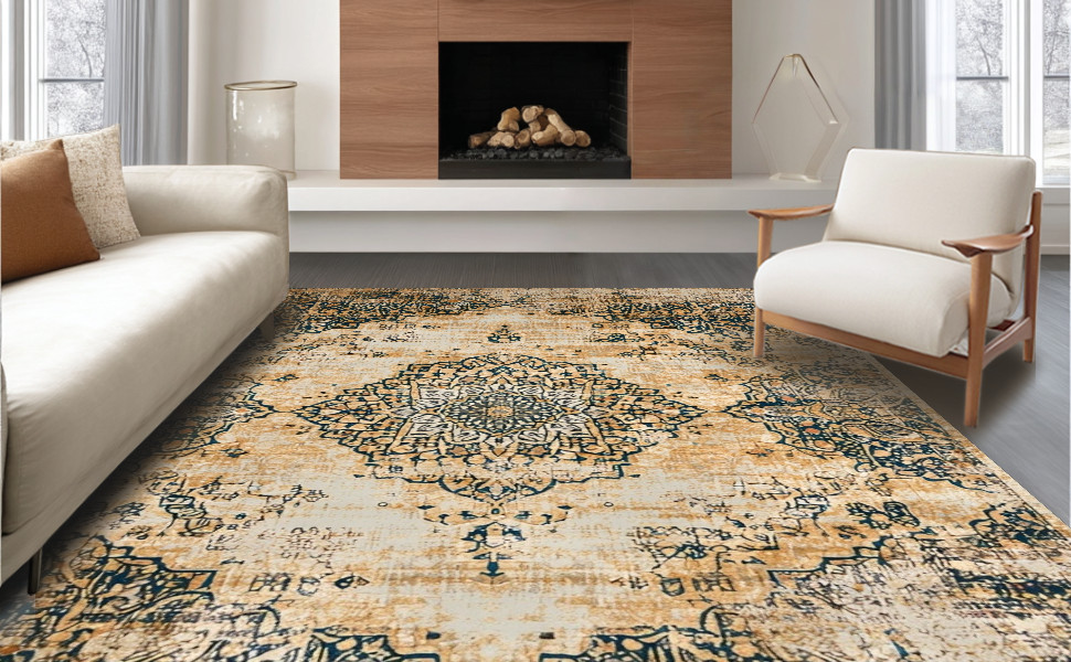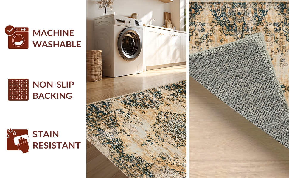 Ultra Soft Area Rug, Non Slip, Stain Resistant, Washable Area Rugs for Living Room, Bedroom, Elegant Vintage Neutral Aesthetic(Beige) Overview: