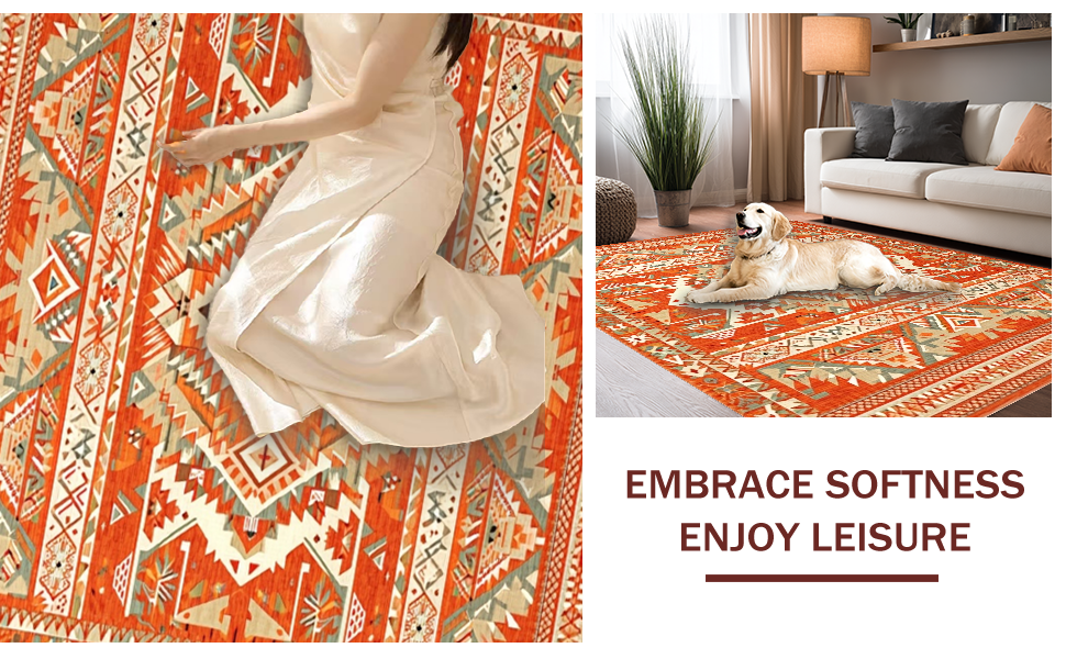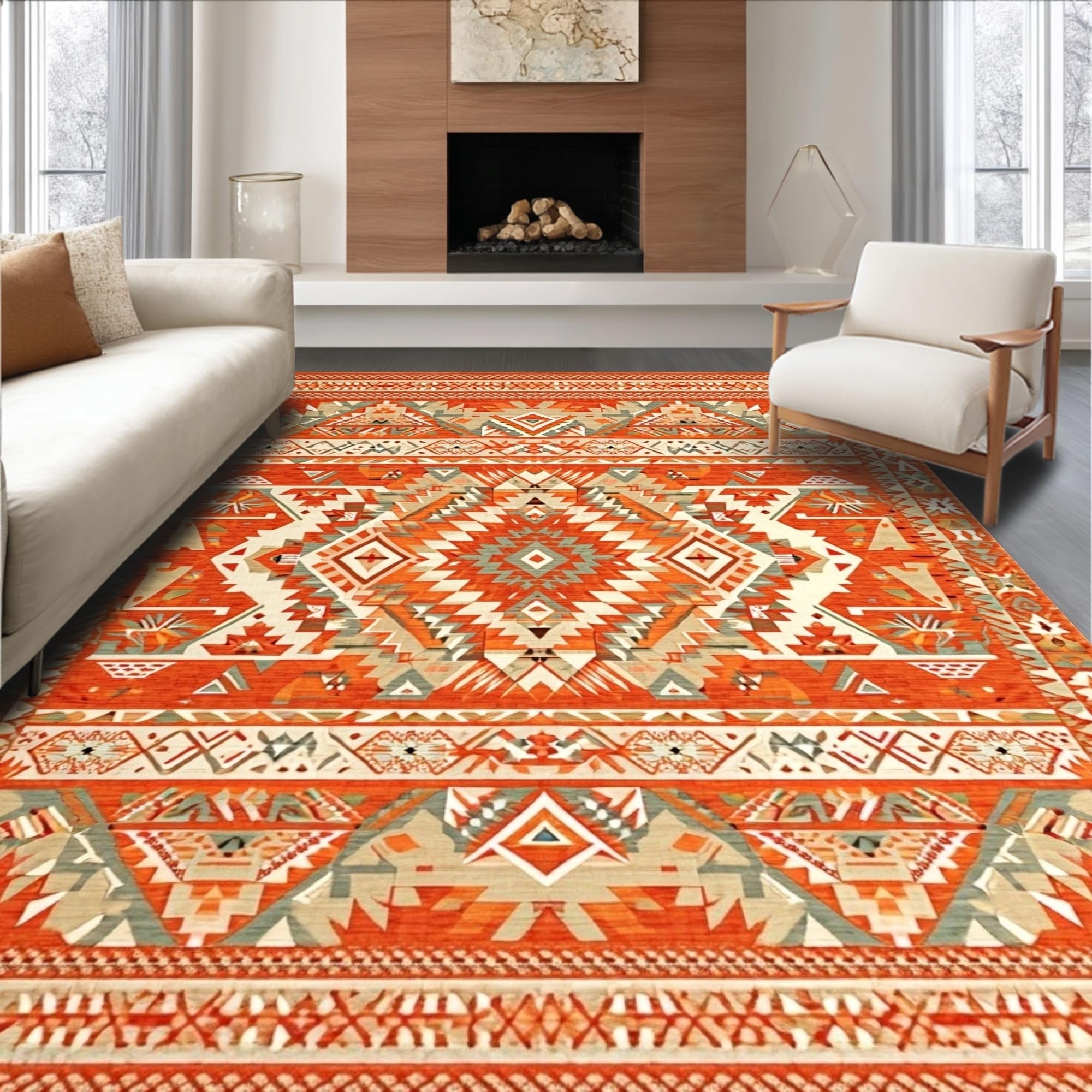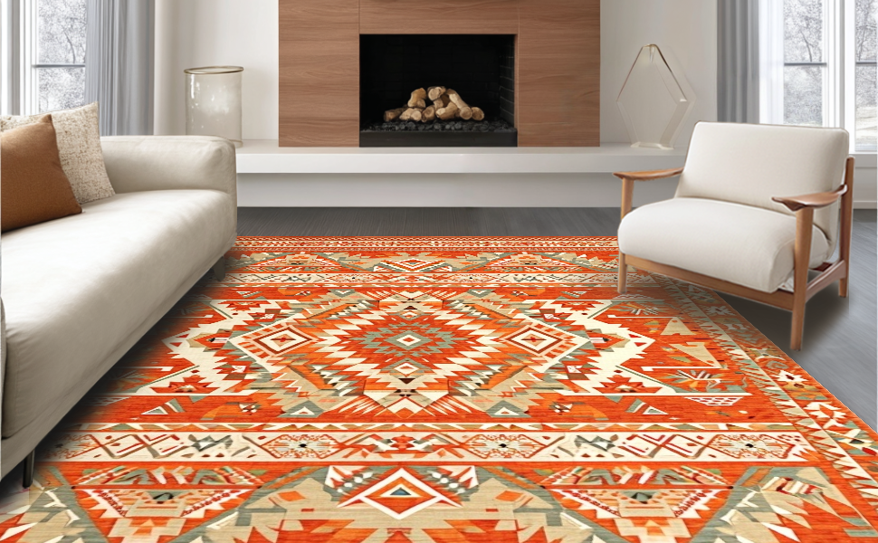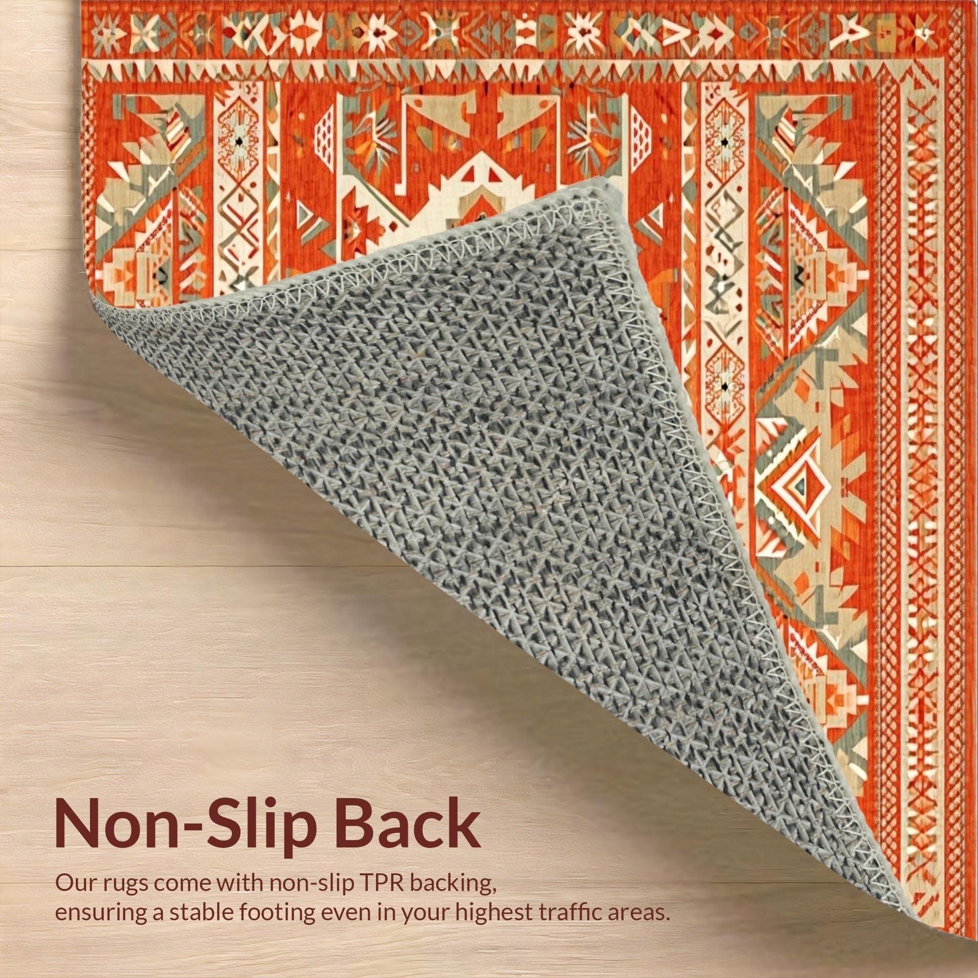 Ultra Soft Area Rug, Non Slip, Stain Resistant, Washable Area Rugs for Living Room, Bedroom, Elegant Vintage Tribal Patterns(Orange) Overview: