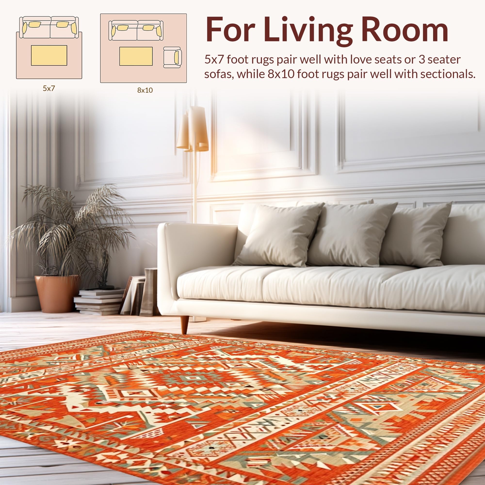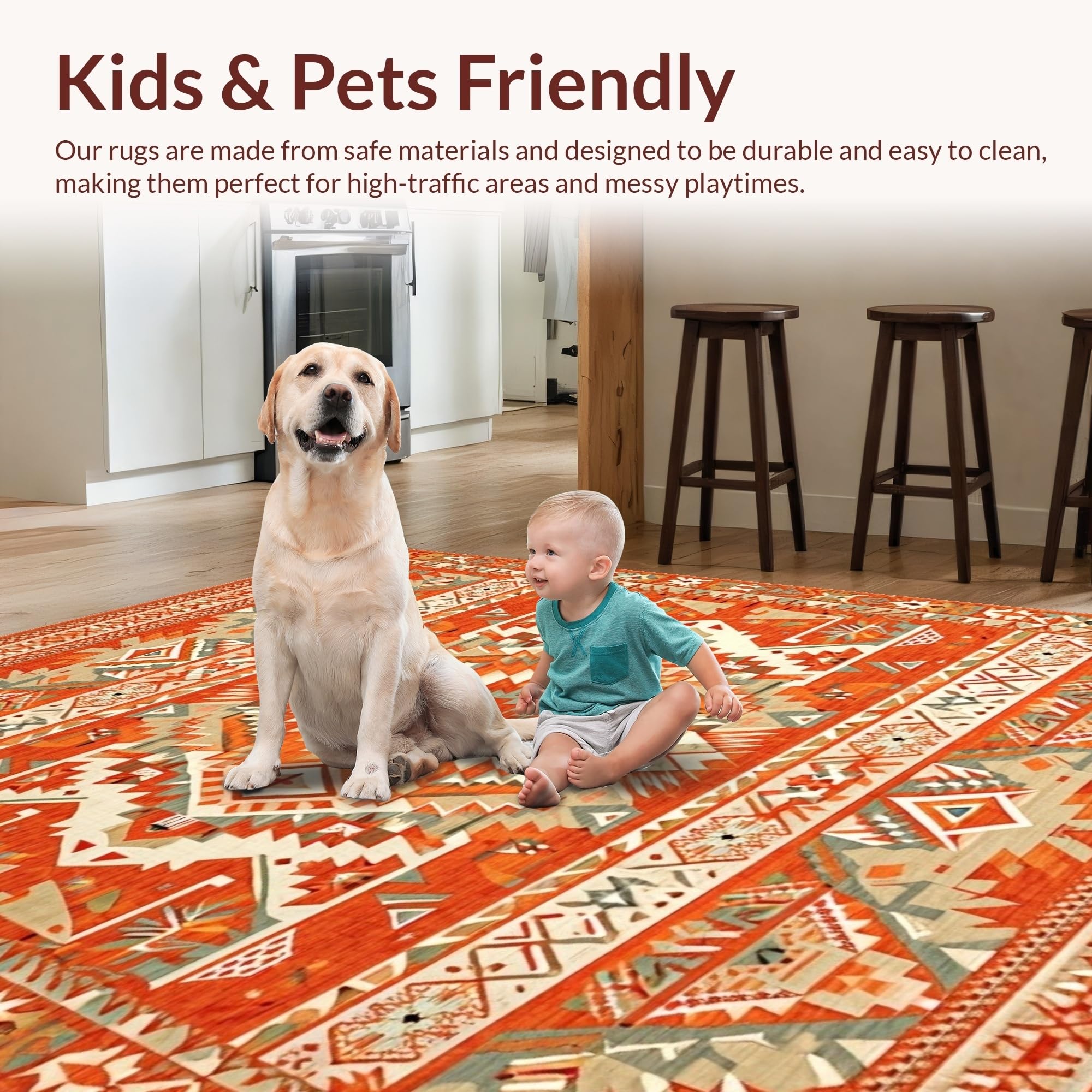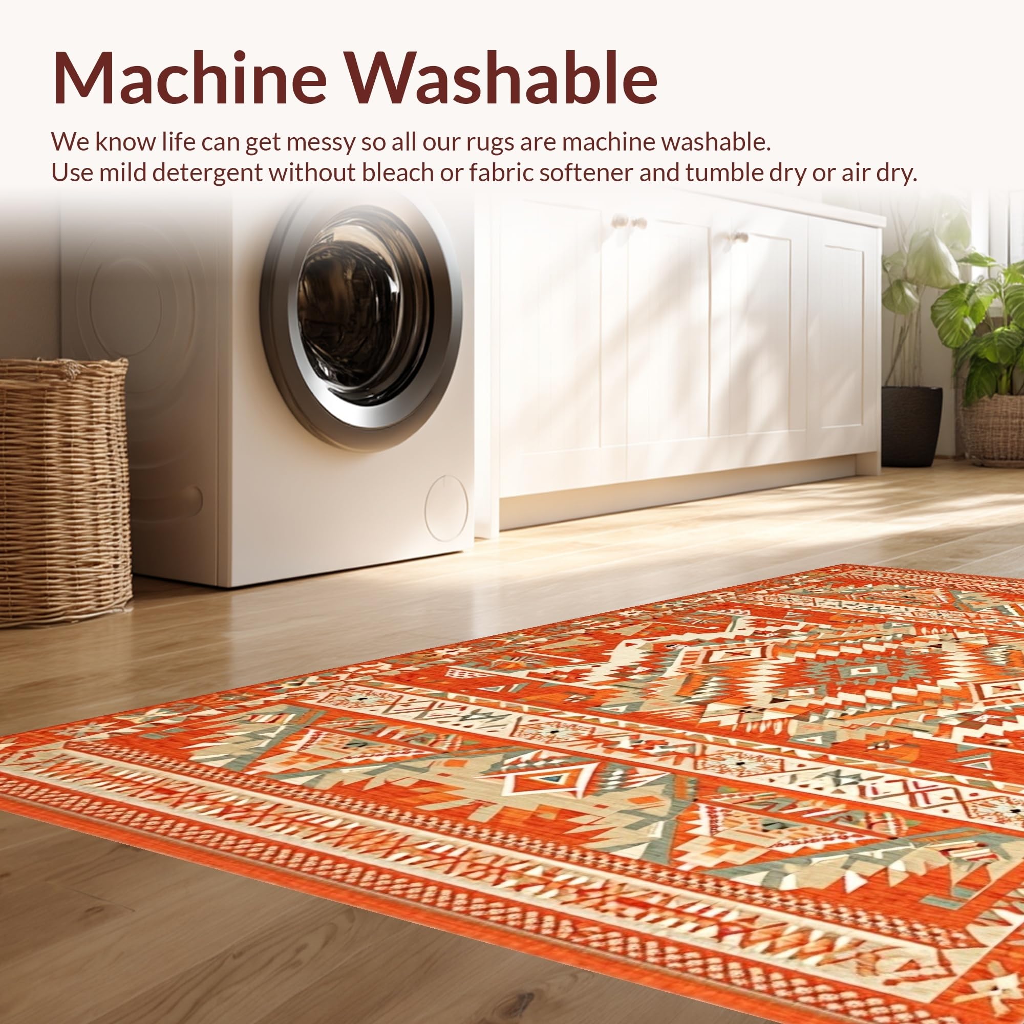 Ultra Soft Area Rug, Non Slip, Stain Resistant, Washable Area Rugs for Living Room, Bedroom, Elegant Vintage Tribal Patterns(Orange) Overview: