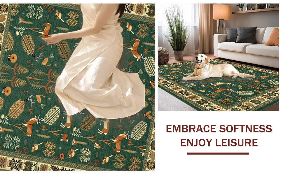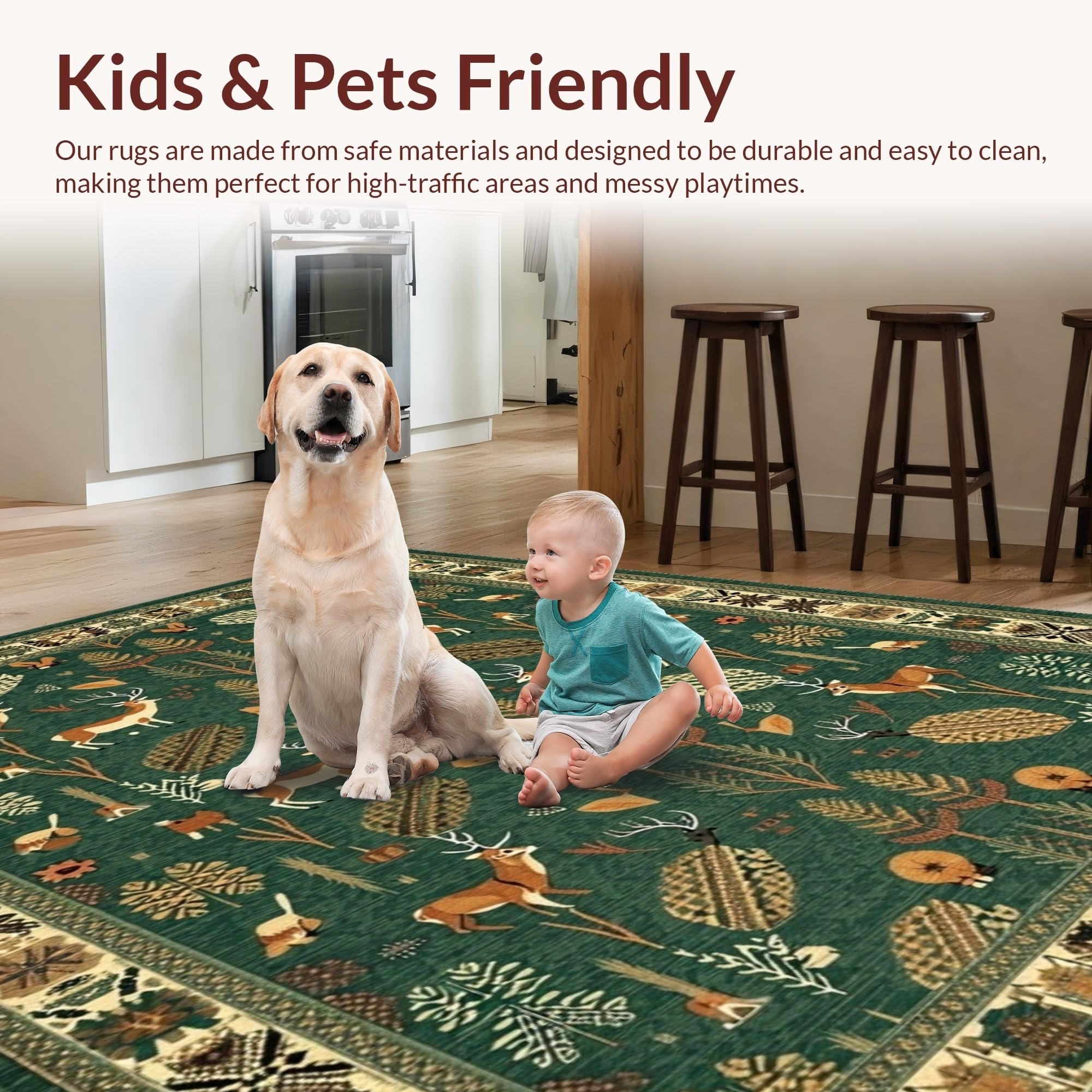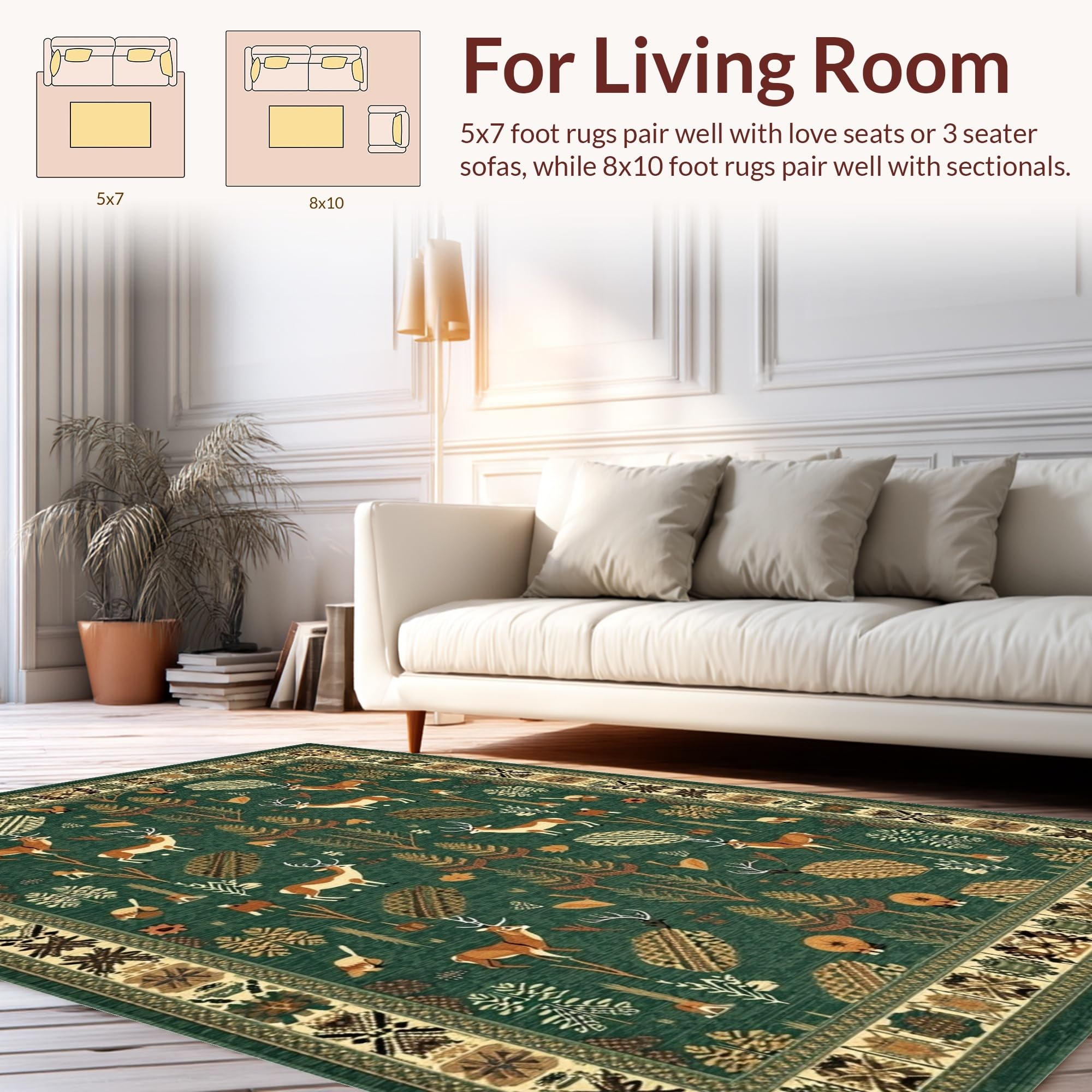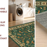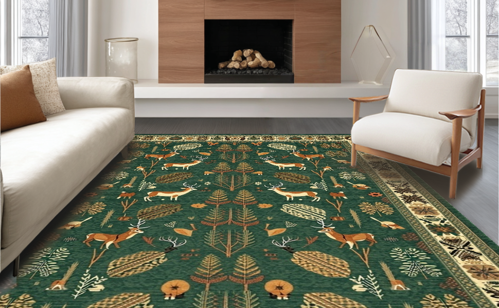 Ultra Soft Area Rug, Non Slip, Stain Resistant, Washable Area Rugs for Living Room, Bedroom, Elegant Vintage Wildlife Pattern(Green) Overview: