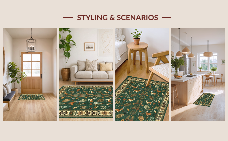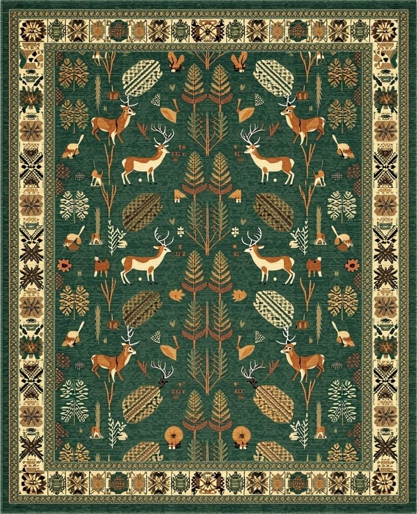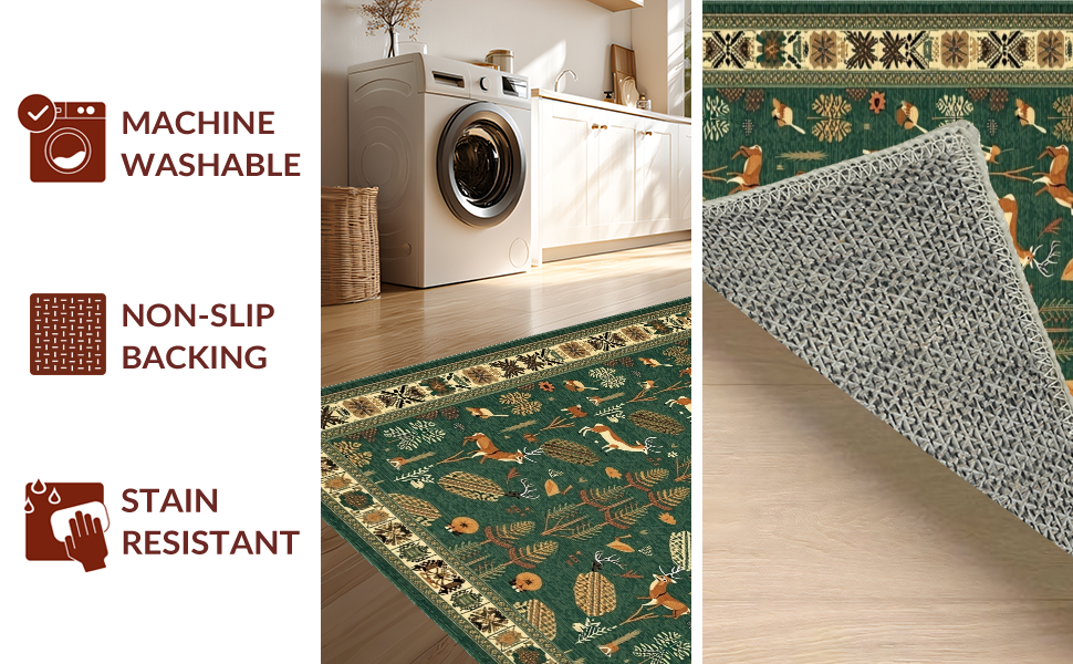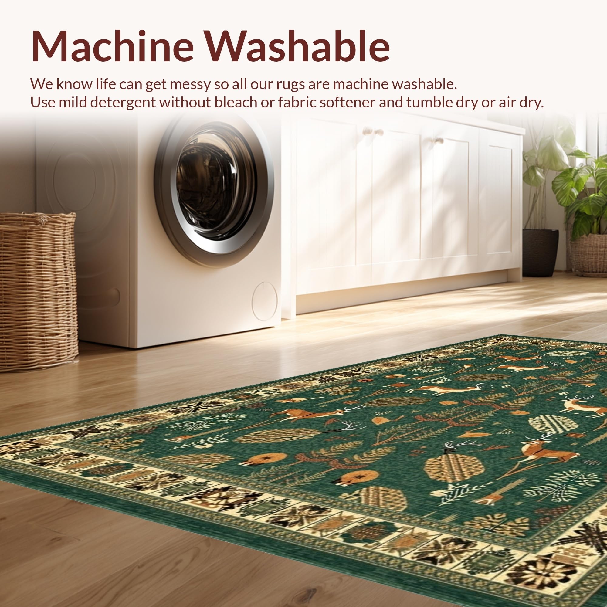 Ultra Soft Area Rug, Non Slip, Stain Resistant, Washable Area Rugs for Living Room, Bedroom, Elegant Vintage Wildlife Pattern(Green) Overview: