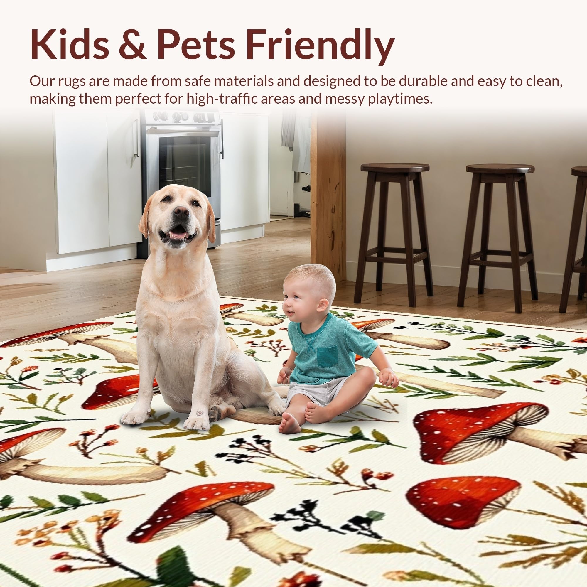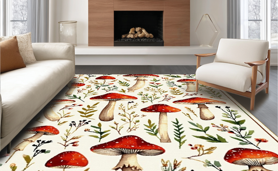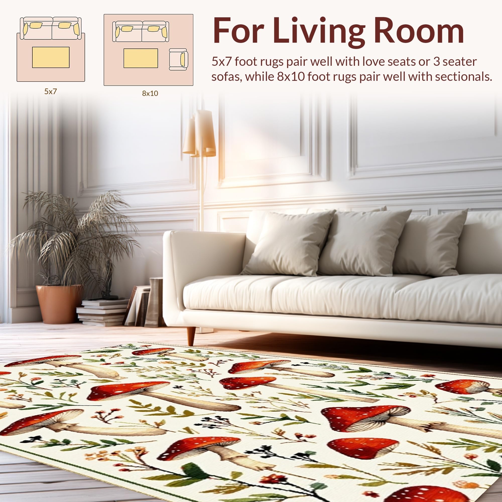 Ultra Soft Area Rug, Non Slip, Stain Resistant, Washable Area Rugs for Living Room, Bedroom, Elegant Watercolor Botanical Motif(White) Overview: