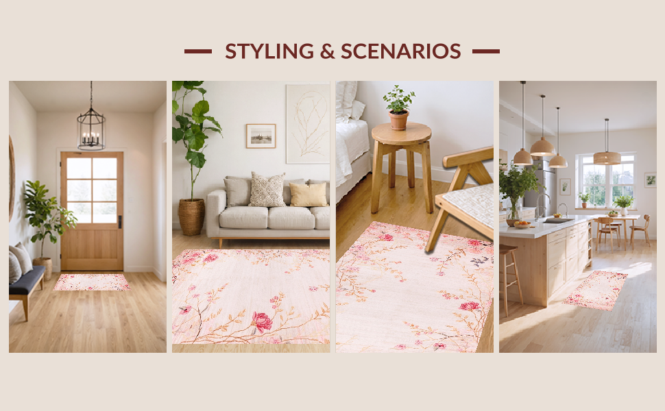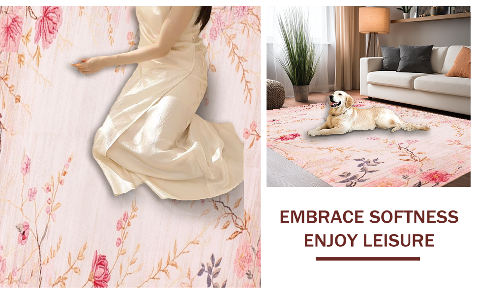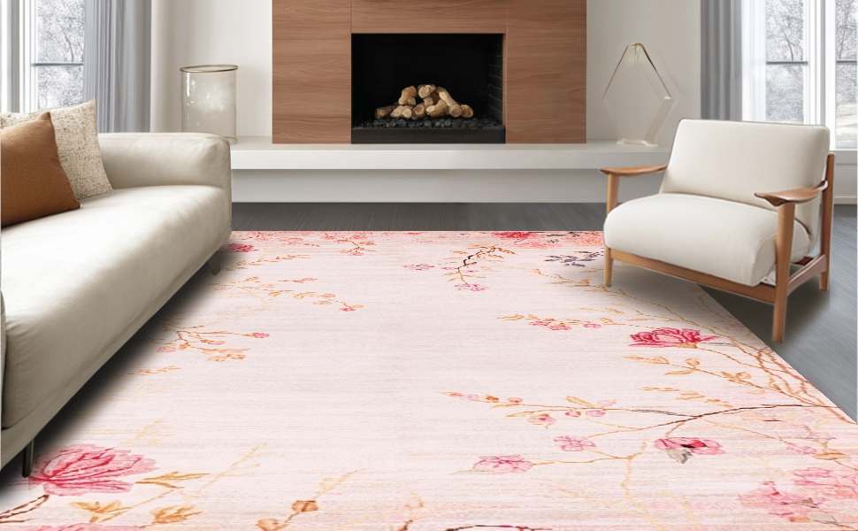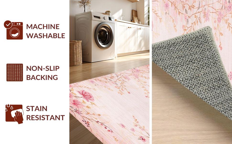 Ultra Soft Area Rug, Non Slip, Stain Resistant, Washable Area Rugs for Living Room, Bedroom, Elegant Watercolor Inspired Pattern(Pink) Overview: