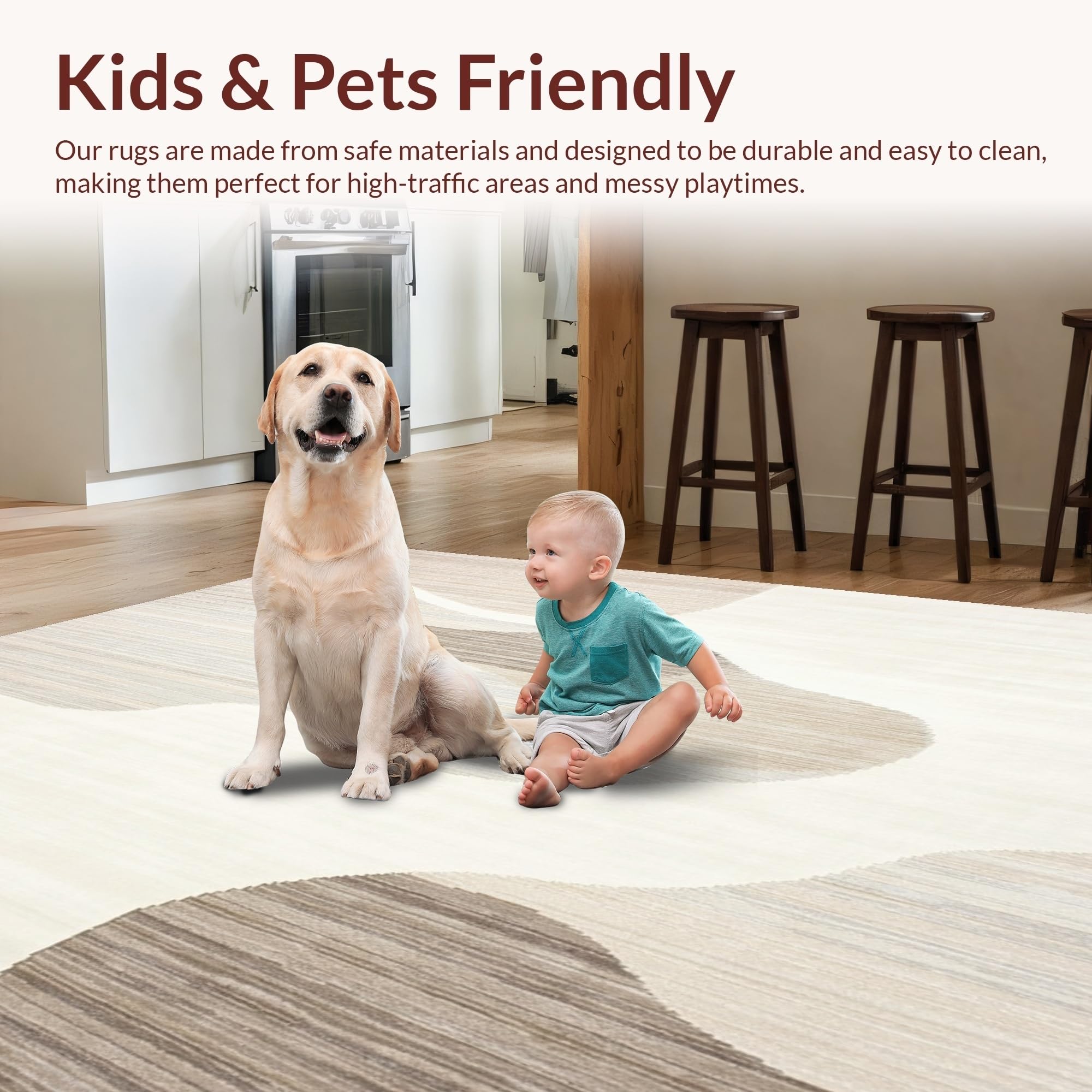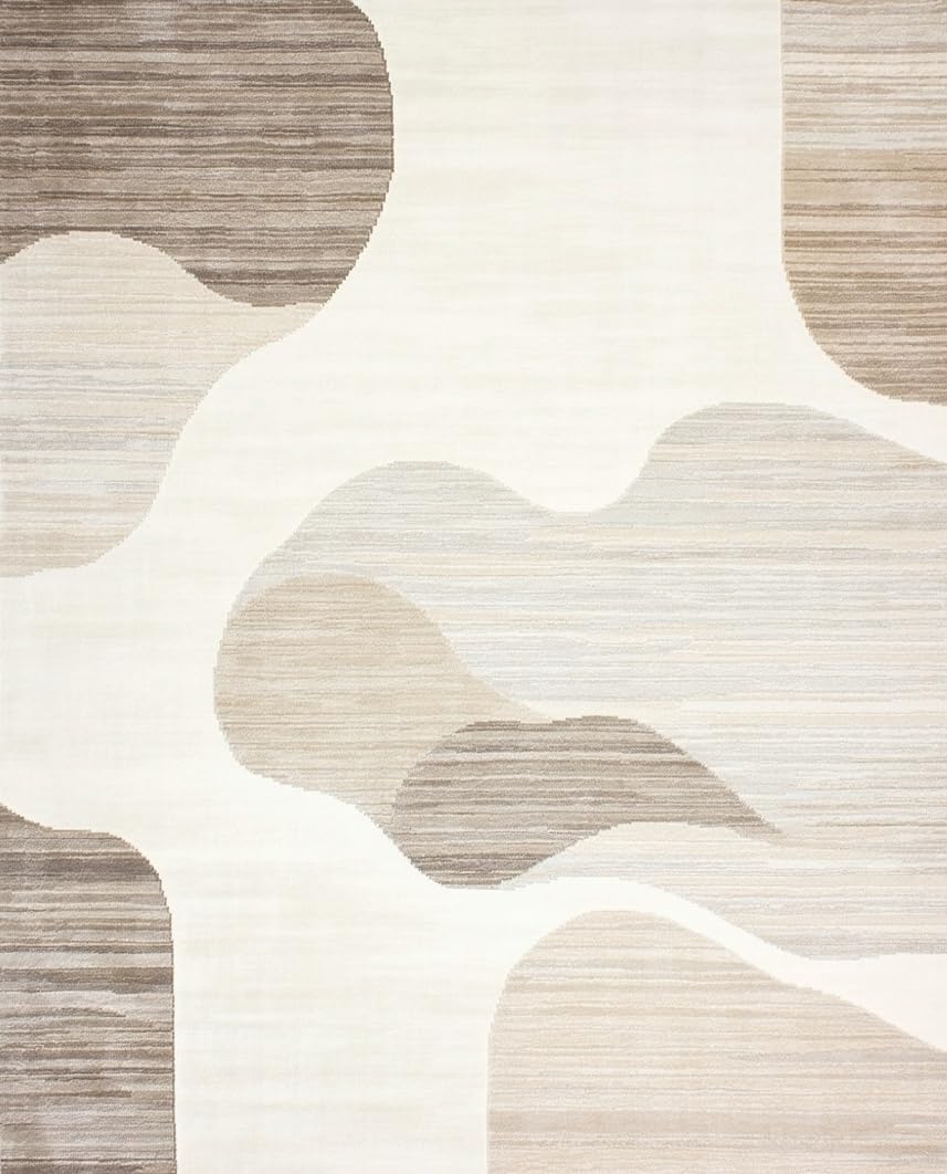 Ultra Soft Area Rug, Non Slip, Stain Resistant, Washable Area Rugs for Living Room, Bedroom, Elegant Wave Area Highlighting Undulating Curves and Subtle Contrast(Beige) Overview: