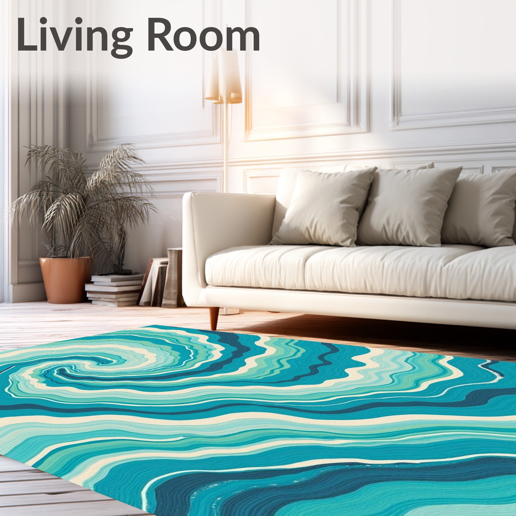 Ultra Soft Area Rug, Non Slip, Stain Resistant, Washable Area Rugs for Living Room, Bedroom, Elegant Wave Swirl Abstract Decorative Artistic Print(Blue) Overview: