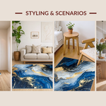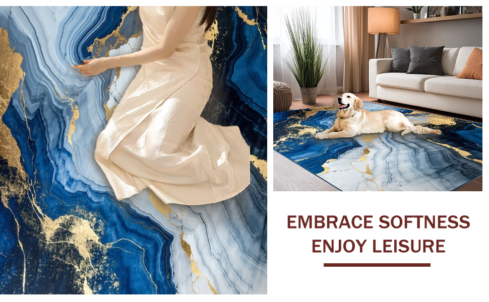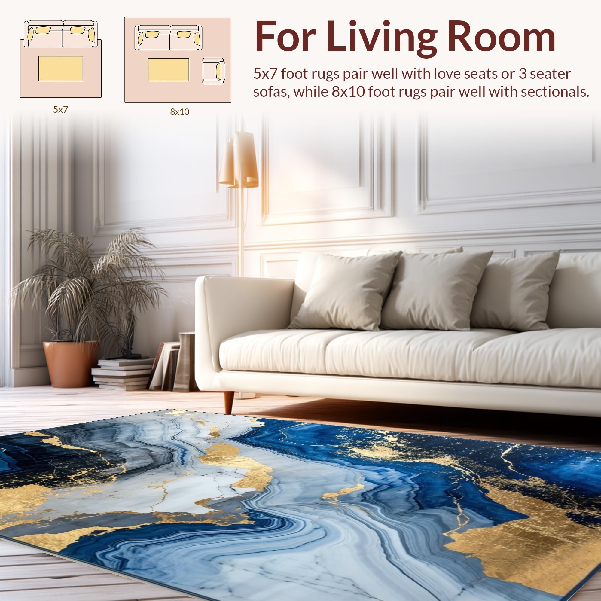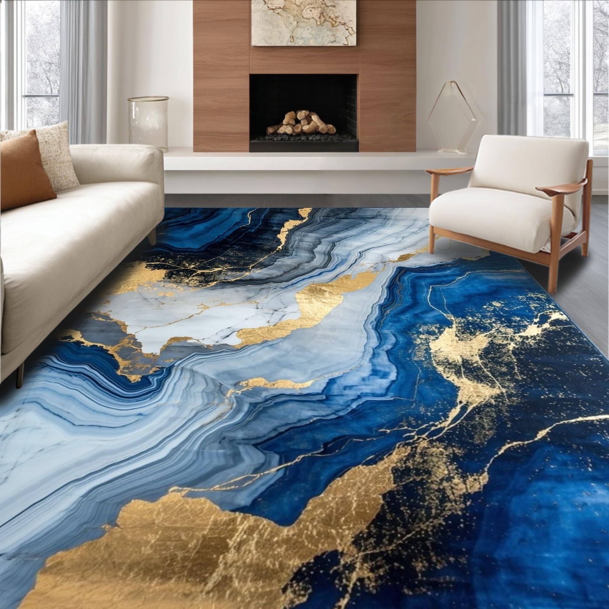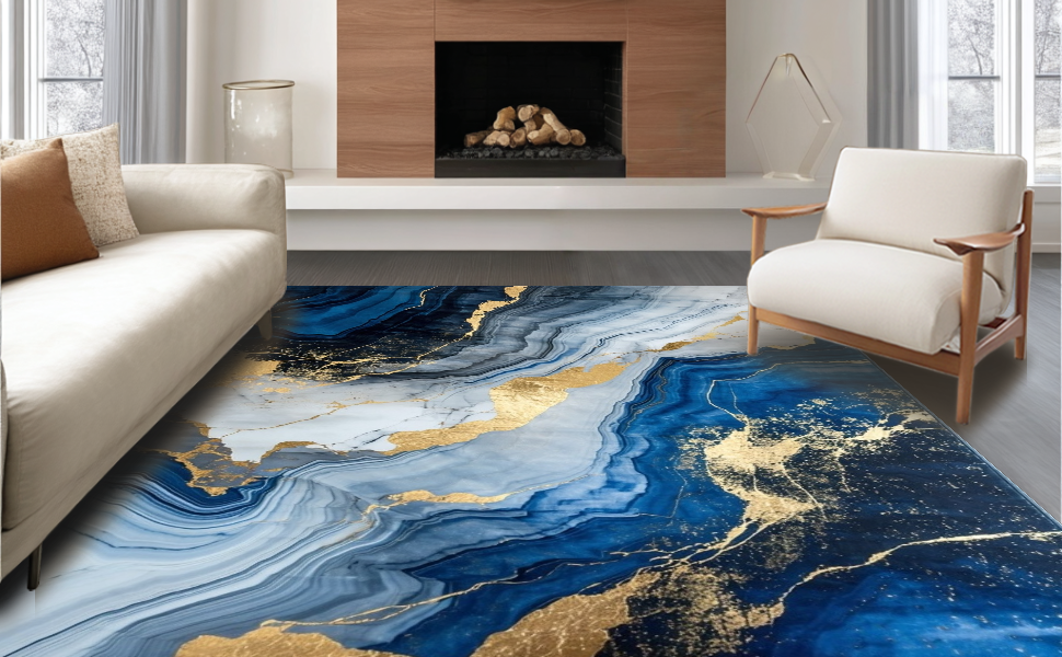 Ultra Soft Area Rug, Non Slip, Stain Resistant, Washable Area Rugs for Living Room, Bedroom, Elegant Wavy Marble Aesthetic(Blue) Overview: