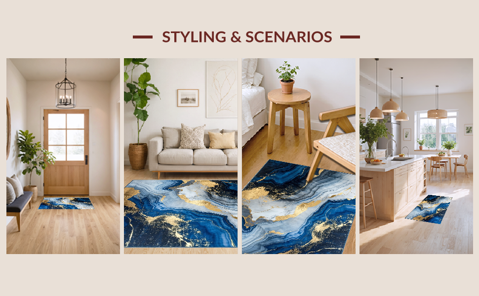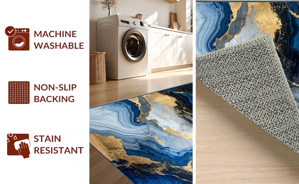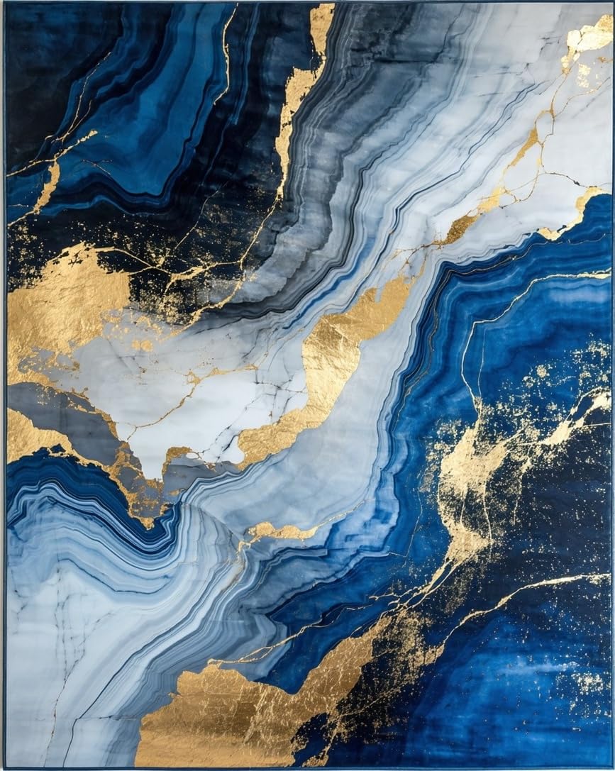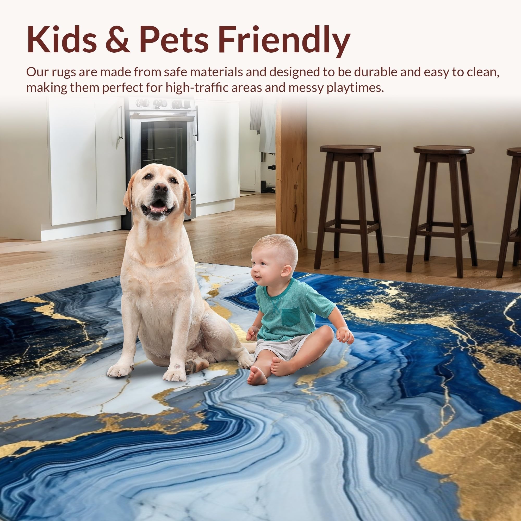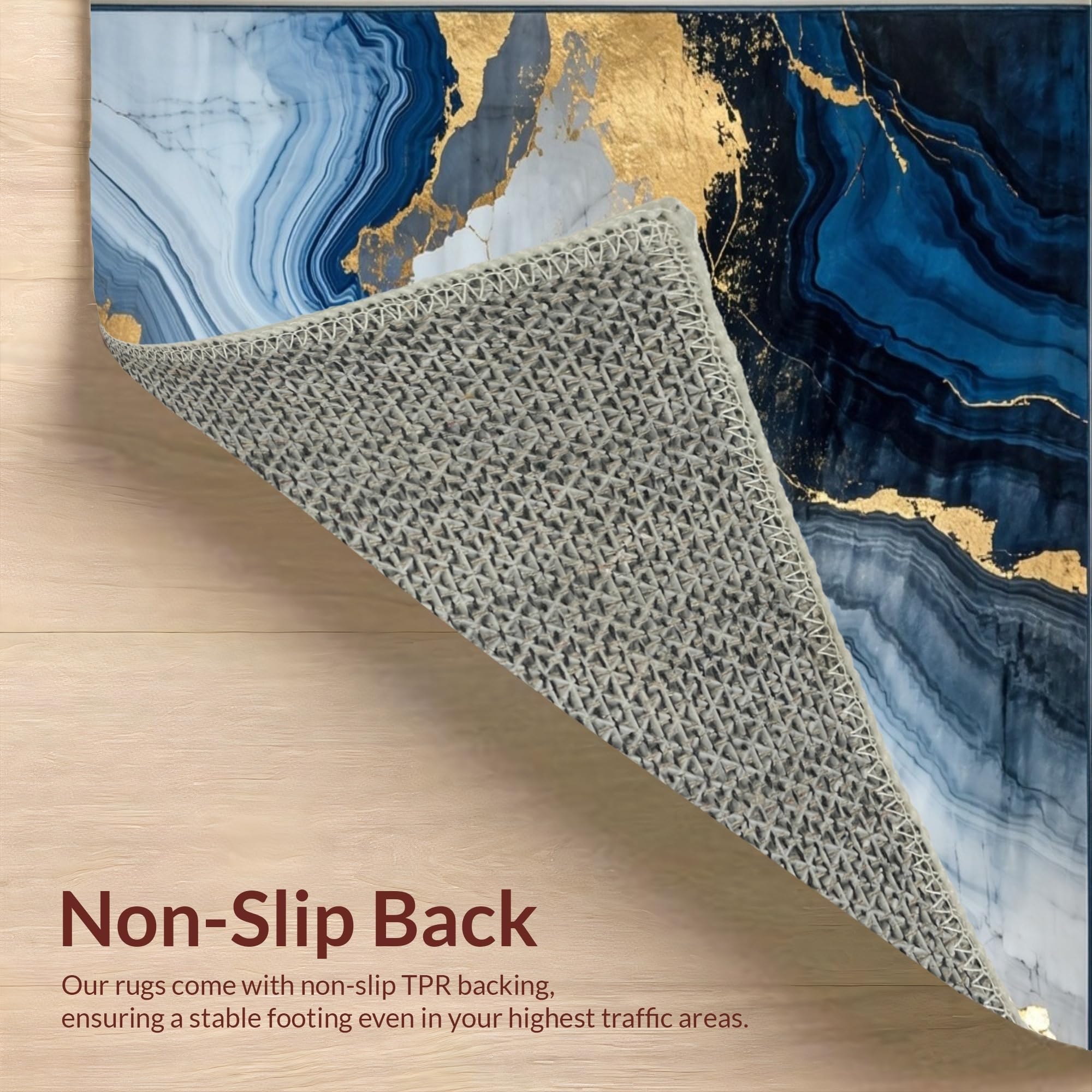 Ultra Soft Area Rug, Non Slip, Stain Resistant, Washable Area Rugs for Living Room, Bedroom, Elegant Wavy Marble Aesthetic(Blue) Overview: