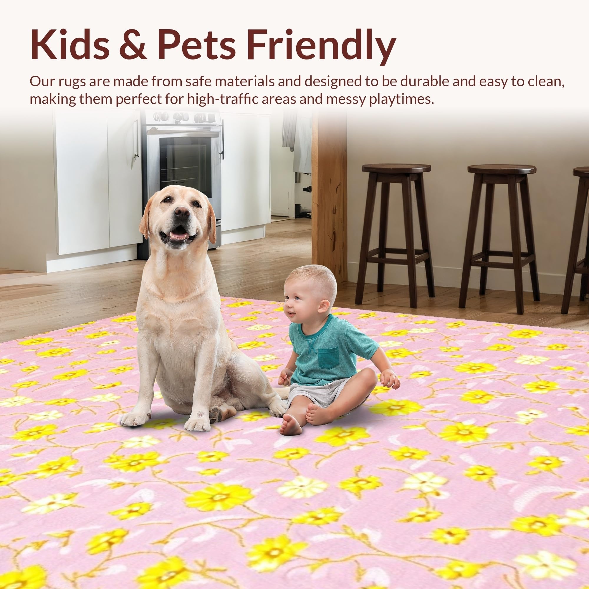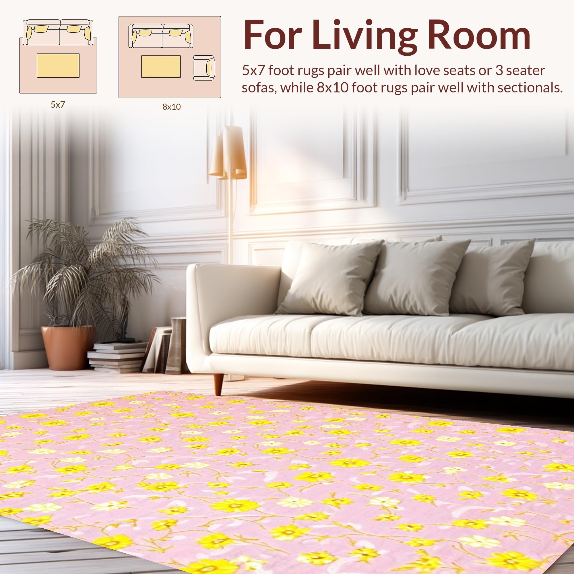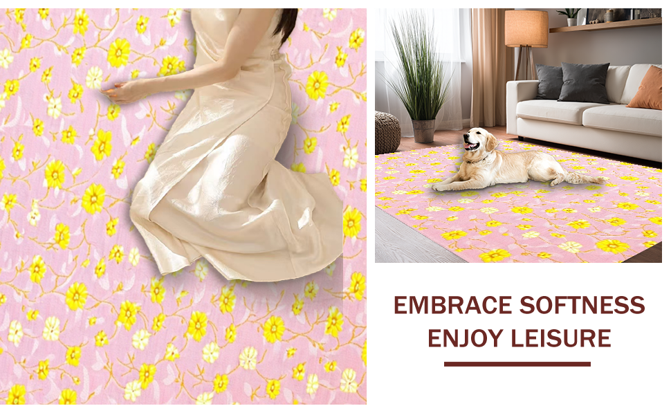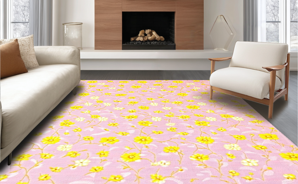 Ultra Soft Area Rug, Non Slip, Stain Resistant, Washable Area Rugs for Living Room, Bedroom, Elegant Whimsical Daisy Design(Pink) Overview: