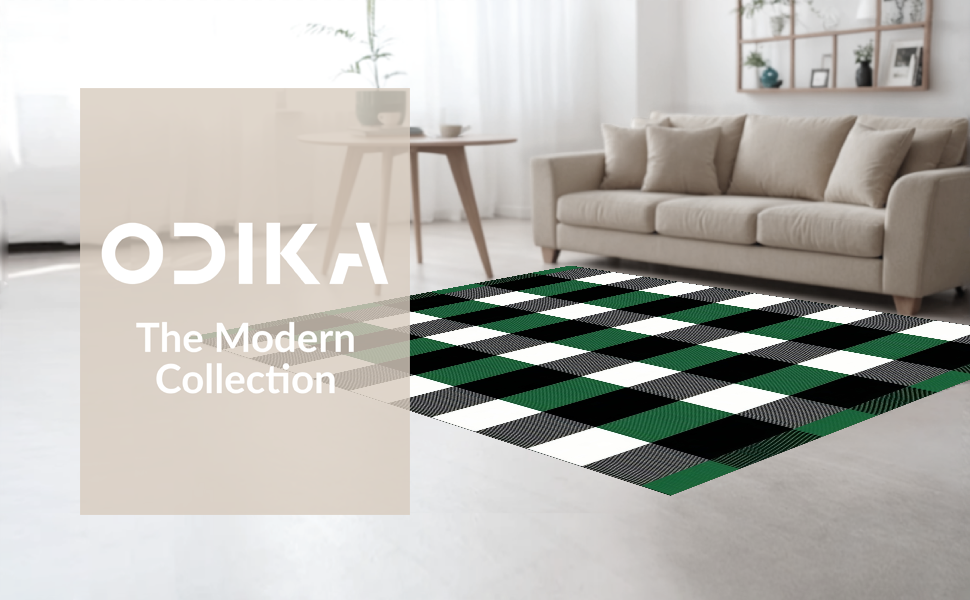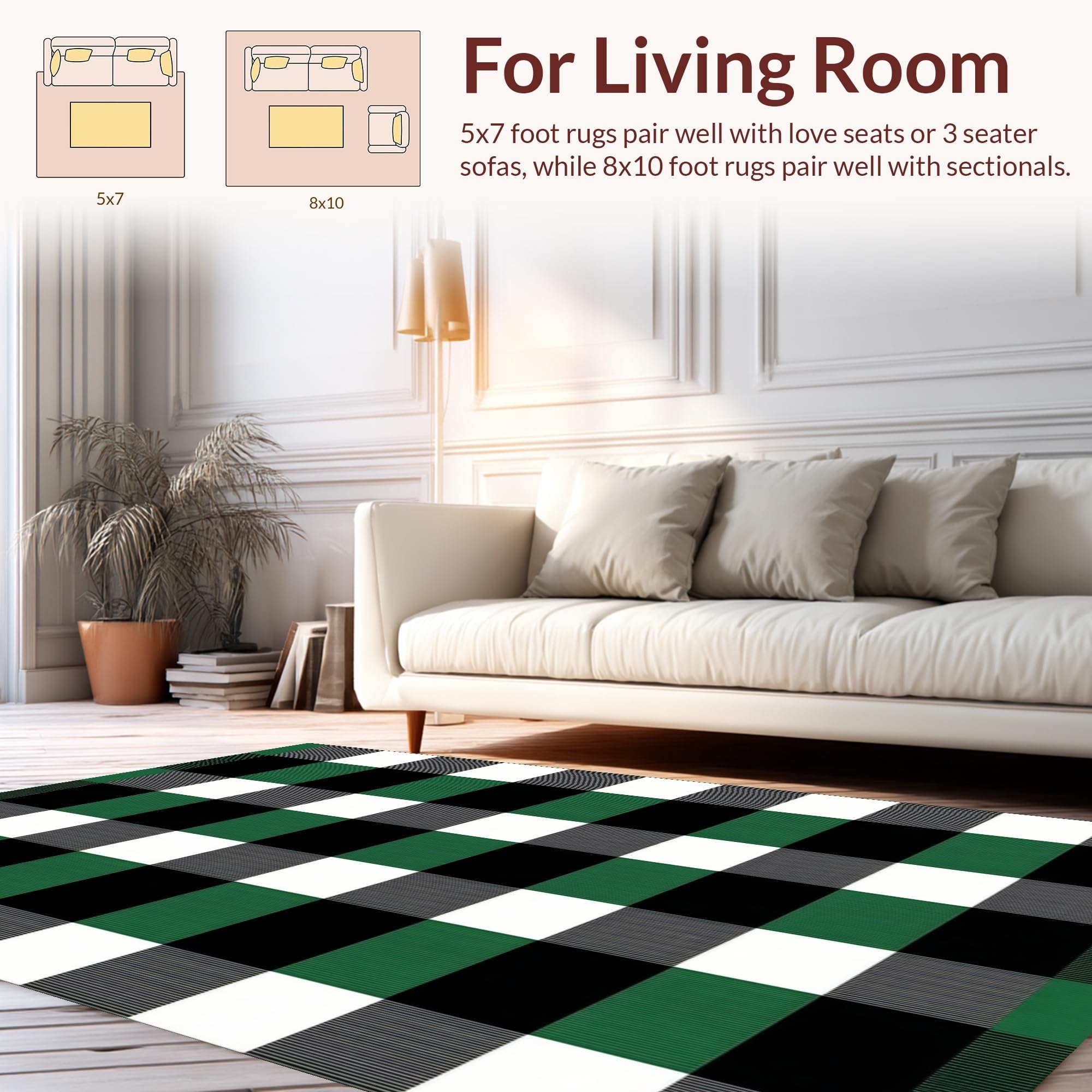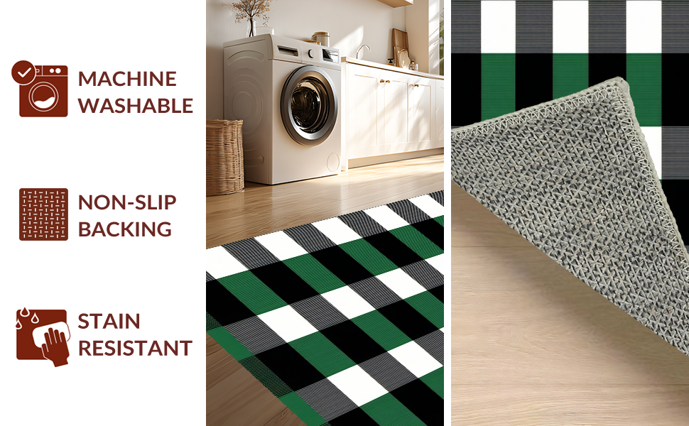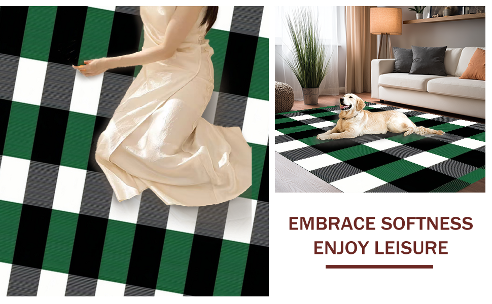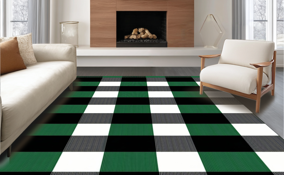 Ultra Soft Area Rug, Non Slip, Stain Resistant, Washable Area Rugs for Living Room, Bedroom, Elegant White Checkered Farmhouse Aesthetic(Green) Overview: