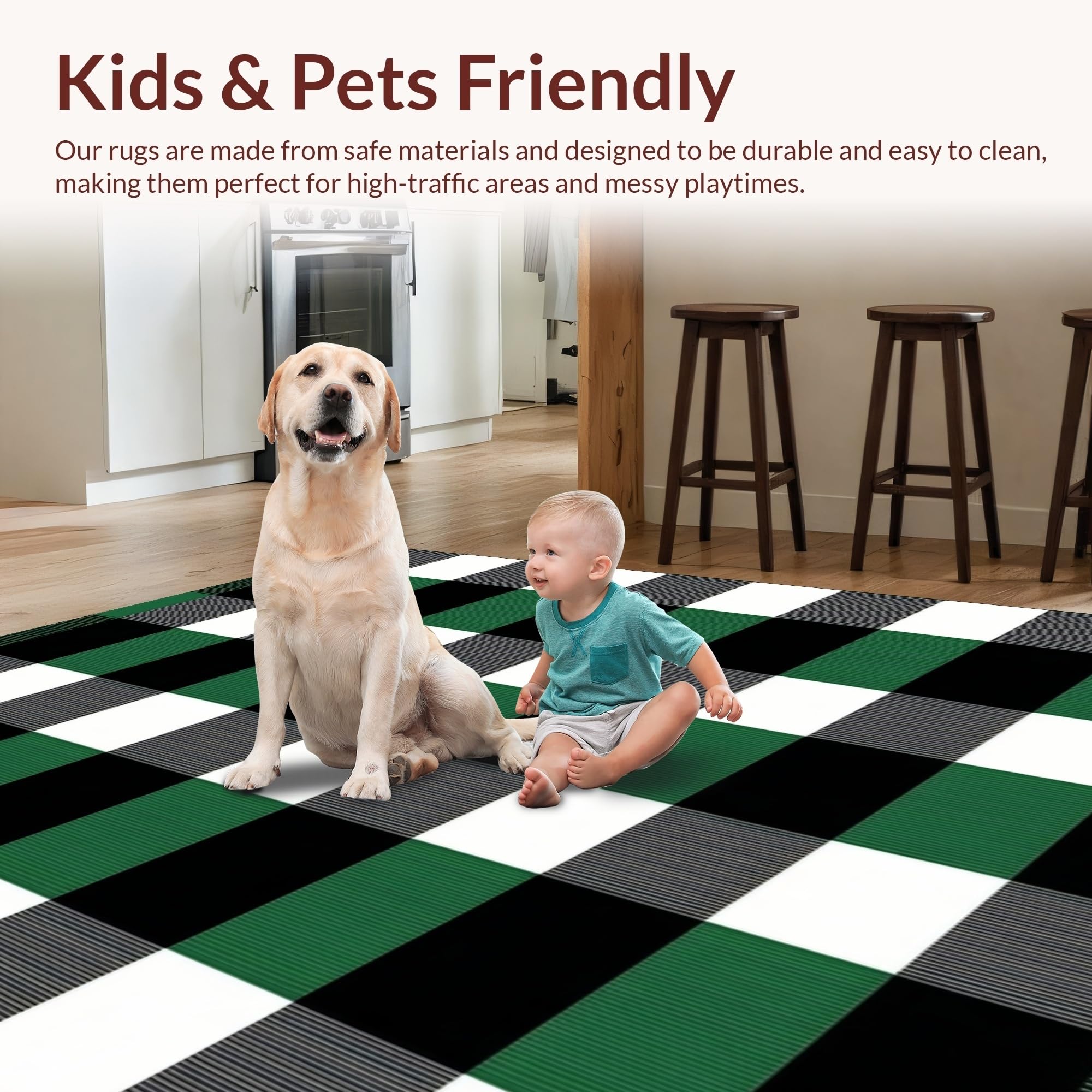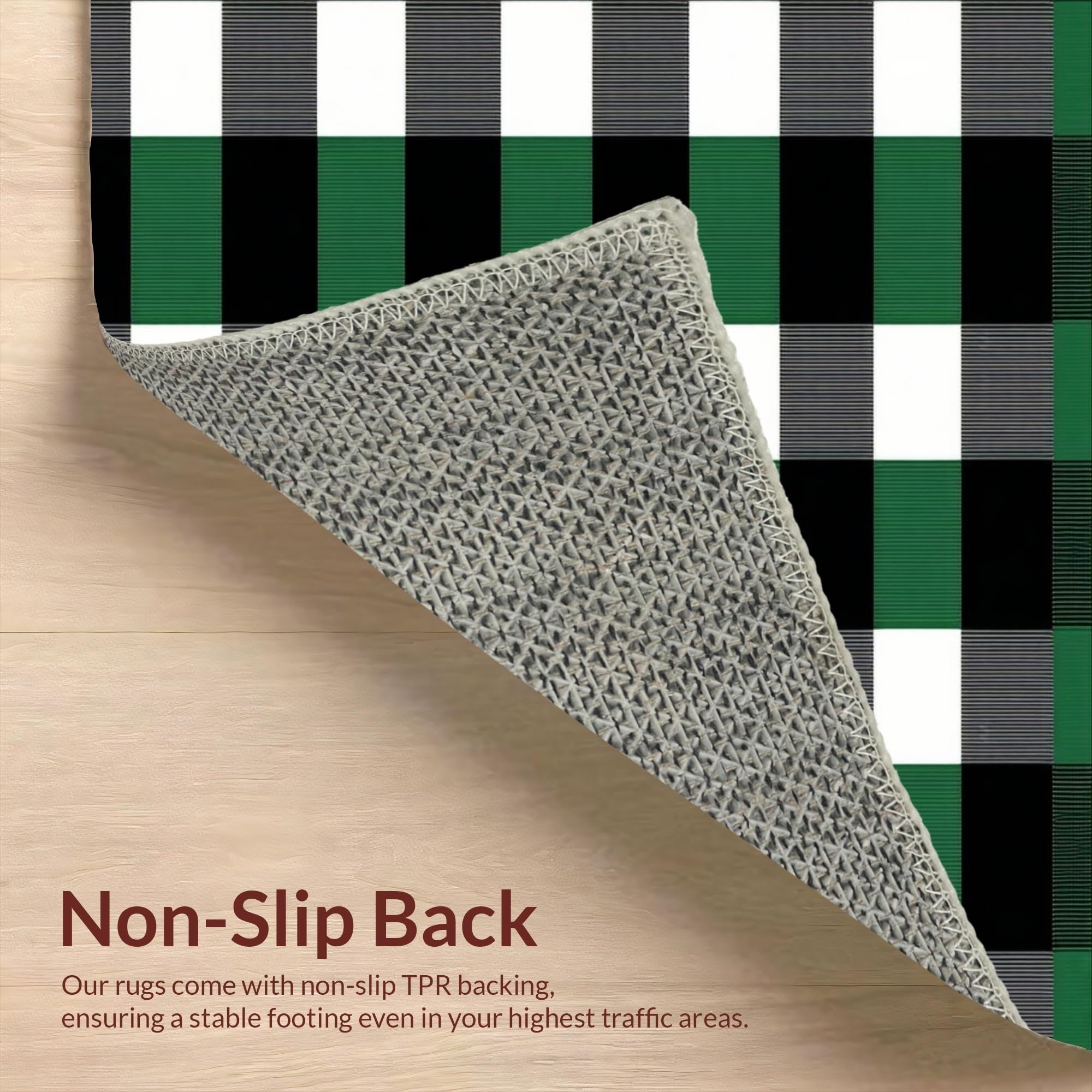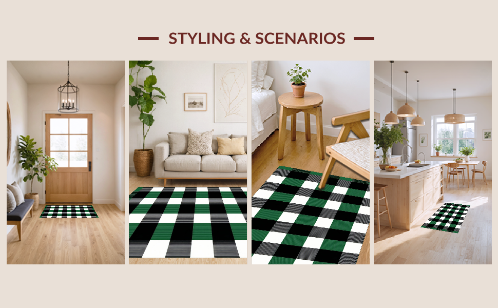 Ultra Soft Area Rug, Non Slip, Stain Resistant, Washable Area Rugs for Living Room, Bedroom, Elegant White Checkered Farmhouse Aesthetic(Green) Overview: