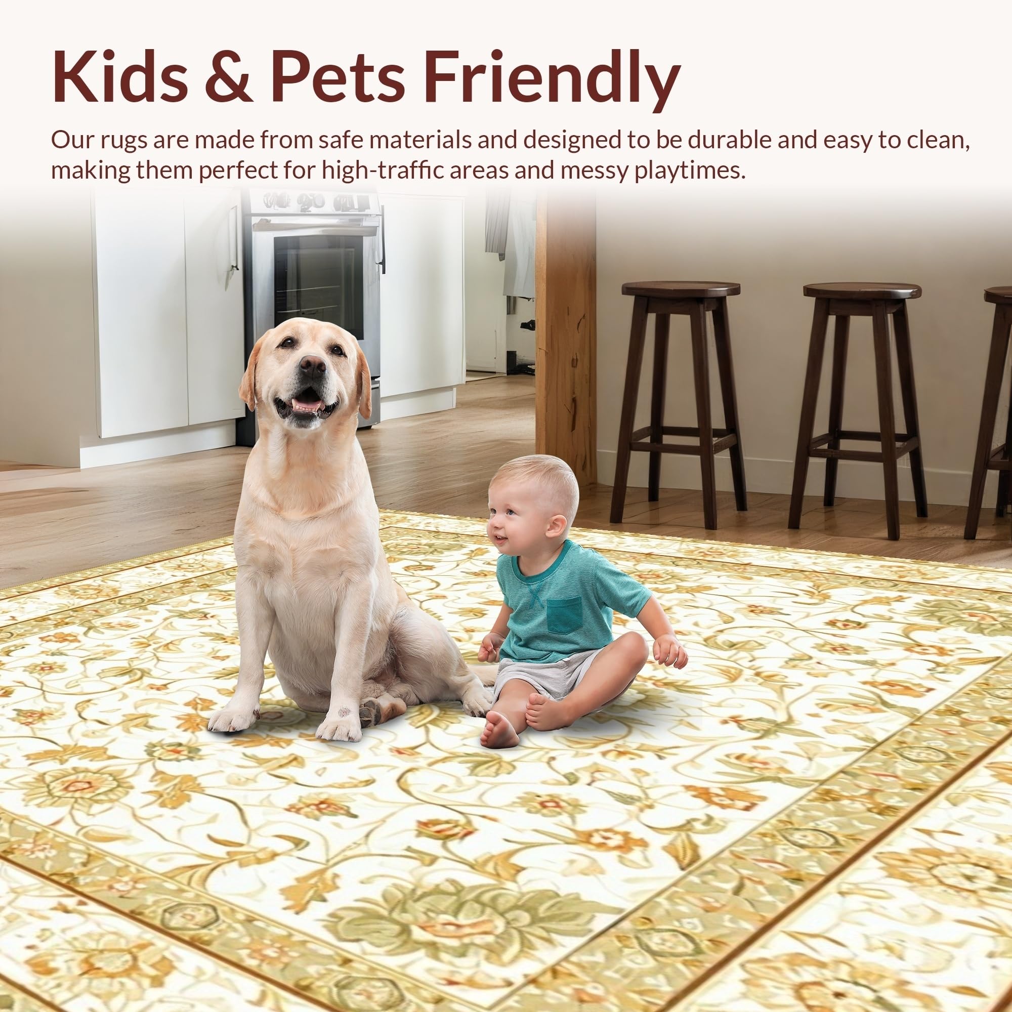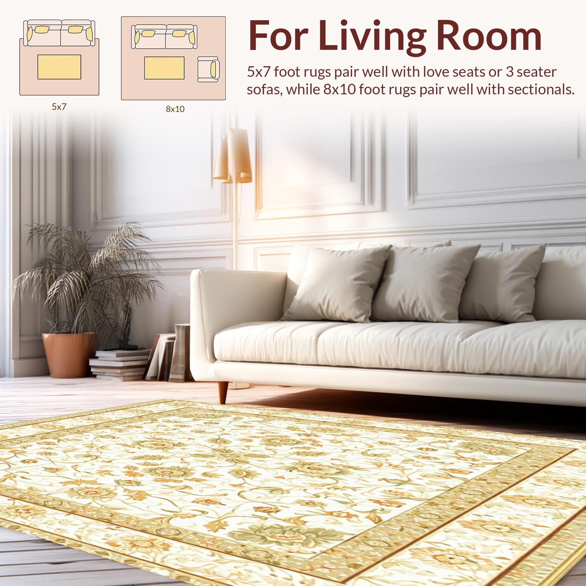 Ultra Soft Area Rug, Non Slip, Stain Resistant, Washable Area Rugs for Living Room, Bedroom, Elegant with Beige Floral Medallions and Khaki Highlights(Beige) Overview: