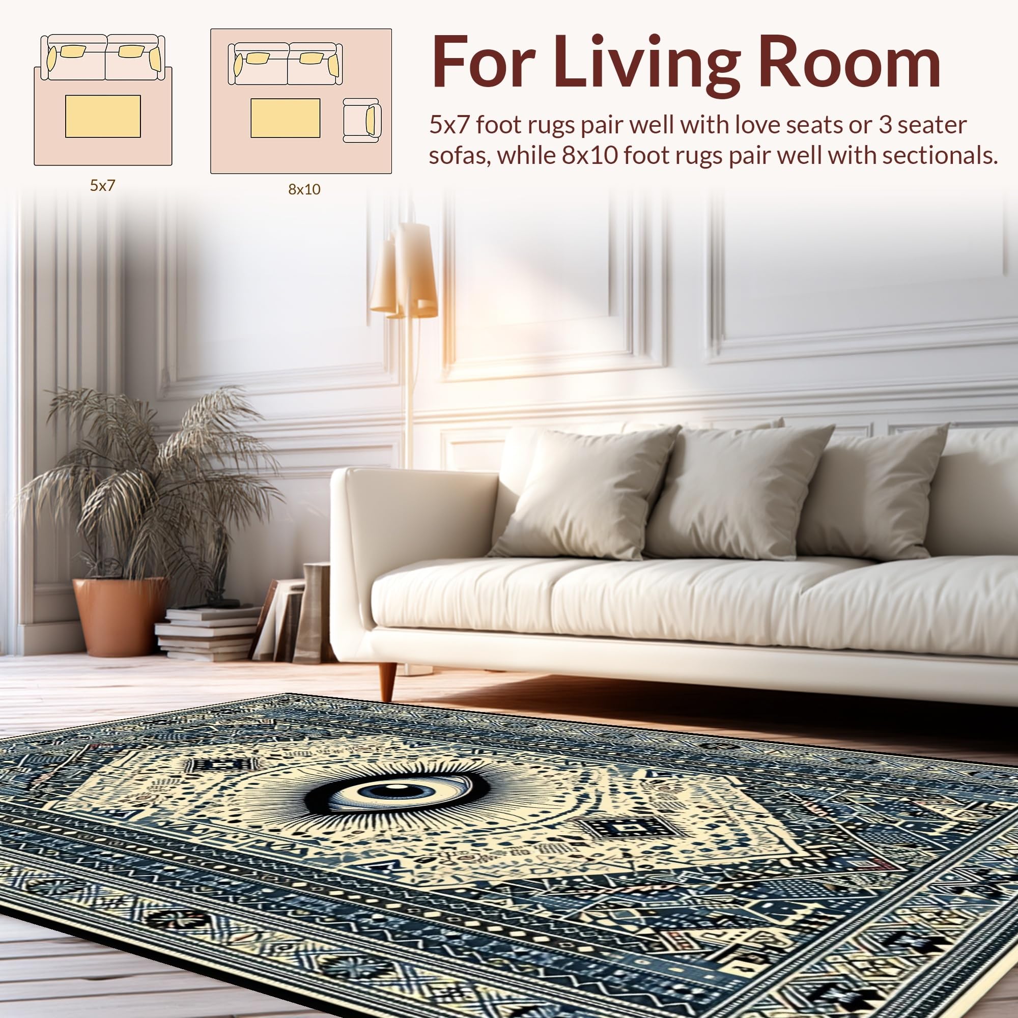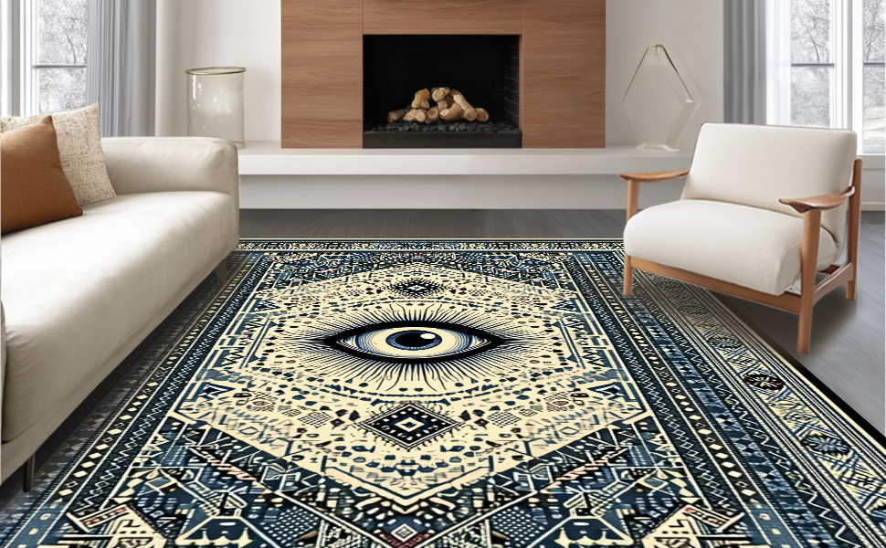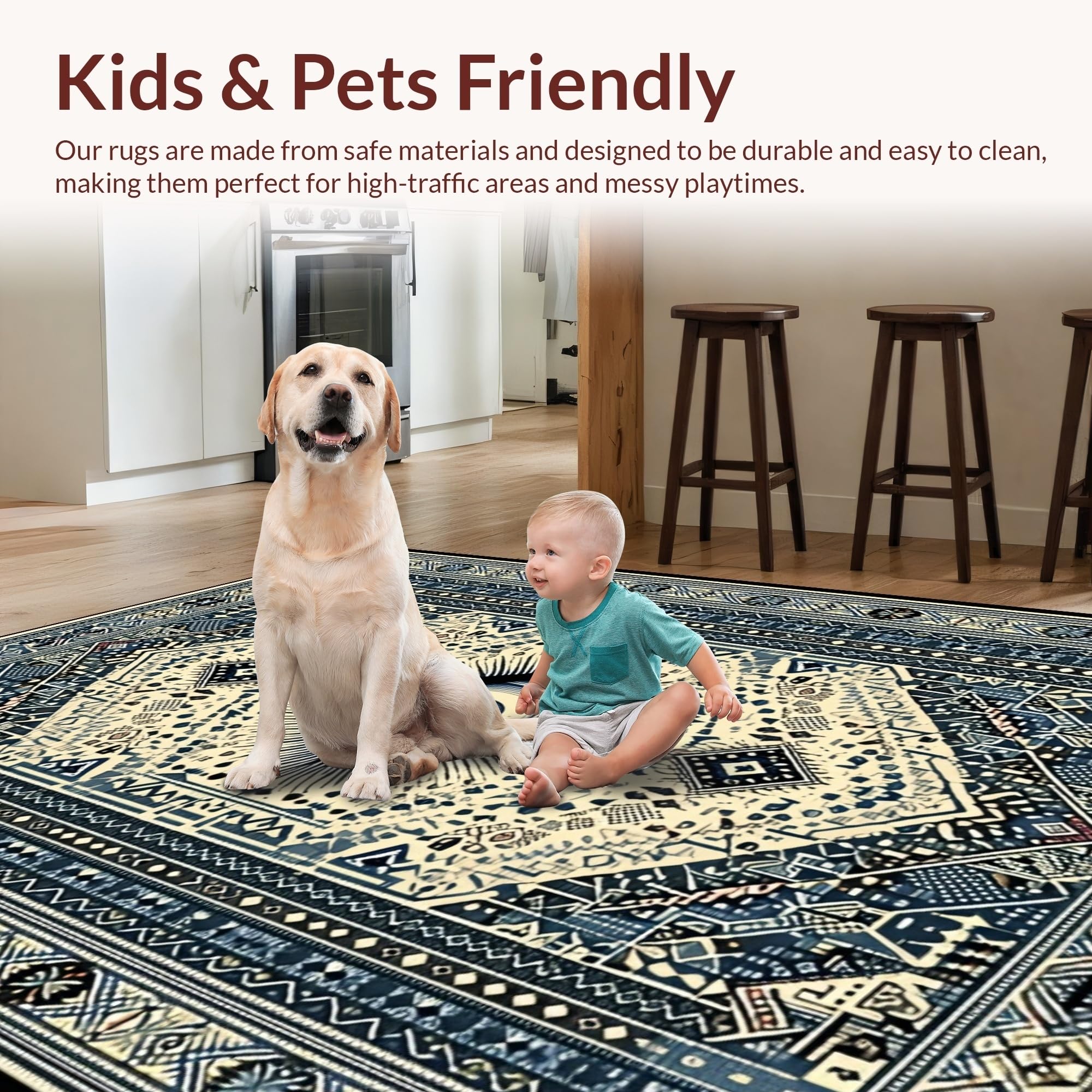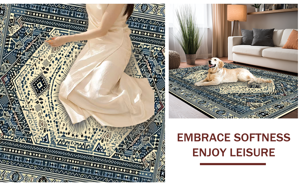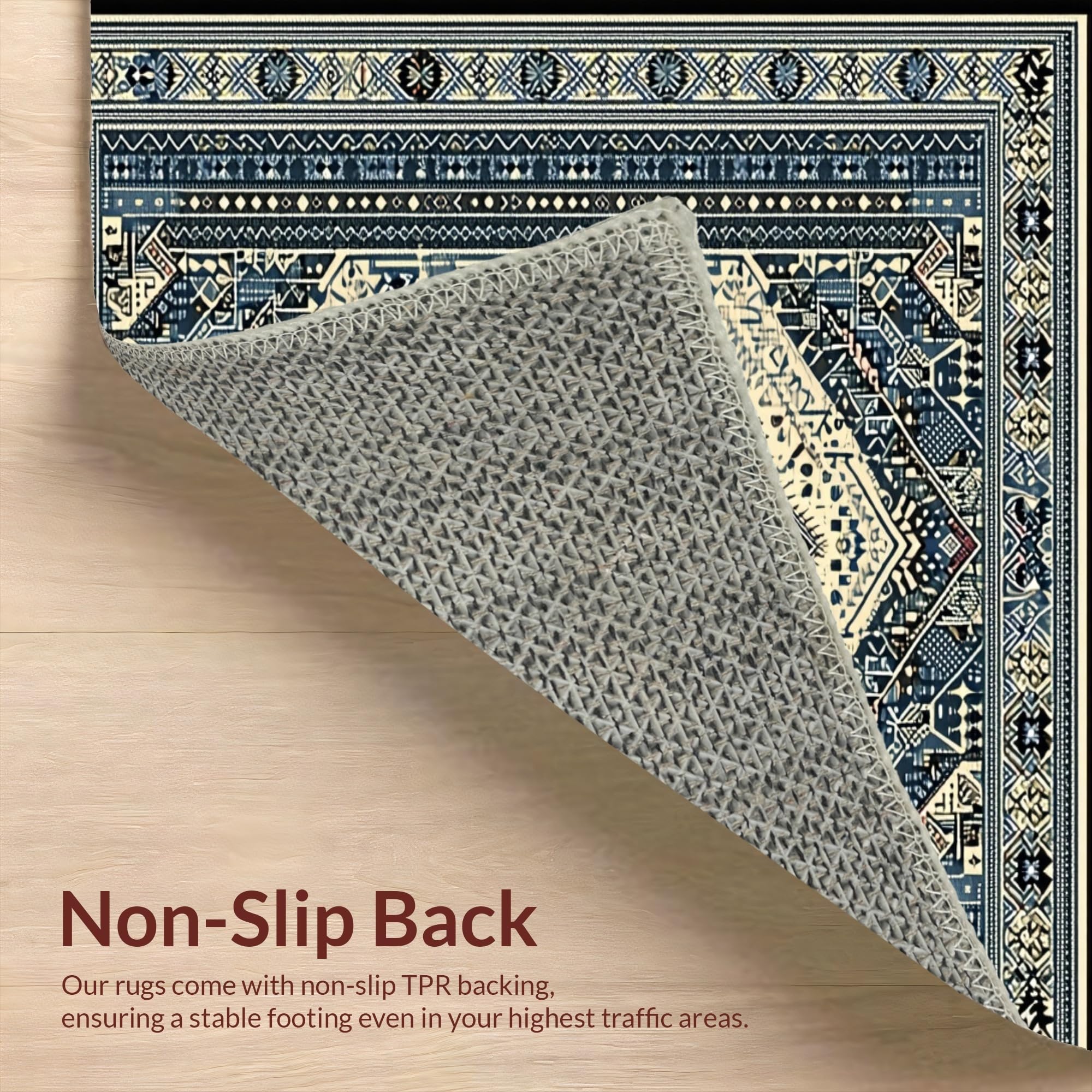 Ultra Soft Area Rug, Non Slip, Stain Resistant, Washable Area Rugs for Living Room, Bedroom, Elegant Woven Tiled Design Inspiration(Blue) Overview: