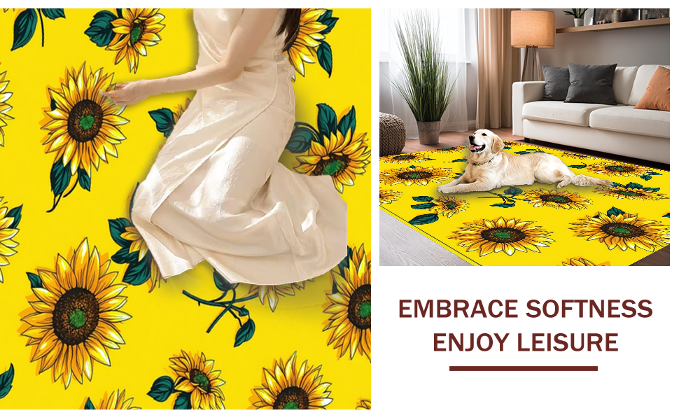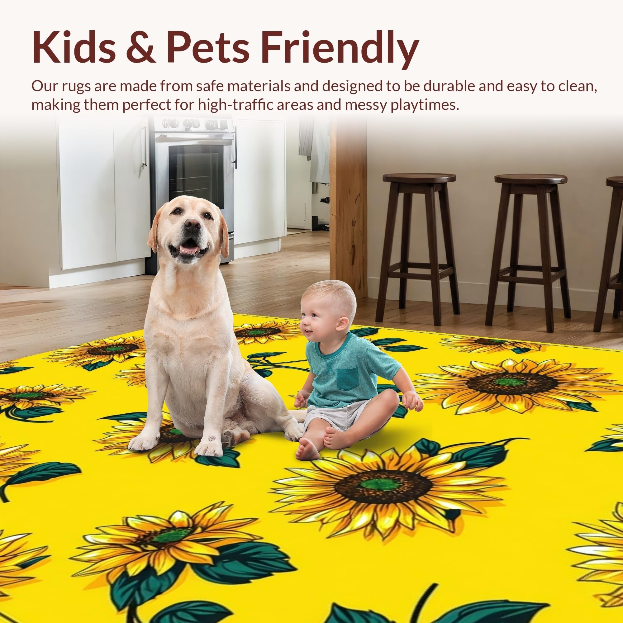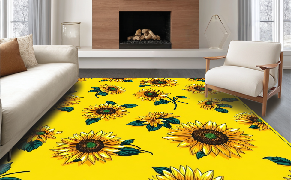 Ultra Soft Area Rug, Non Slip, Stain Resistant, Washable Area Rugs for Living Room, Bedroom, Elegant Yellow Botanical Pattern(Yellow) Overview: