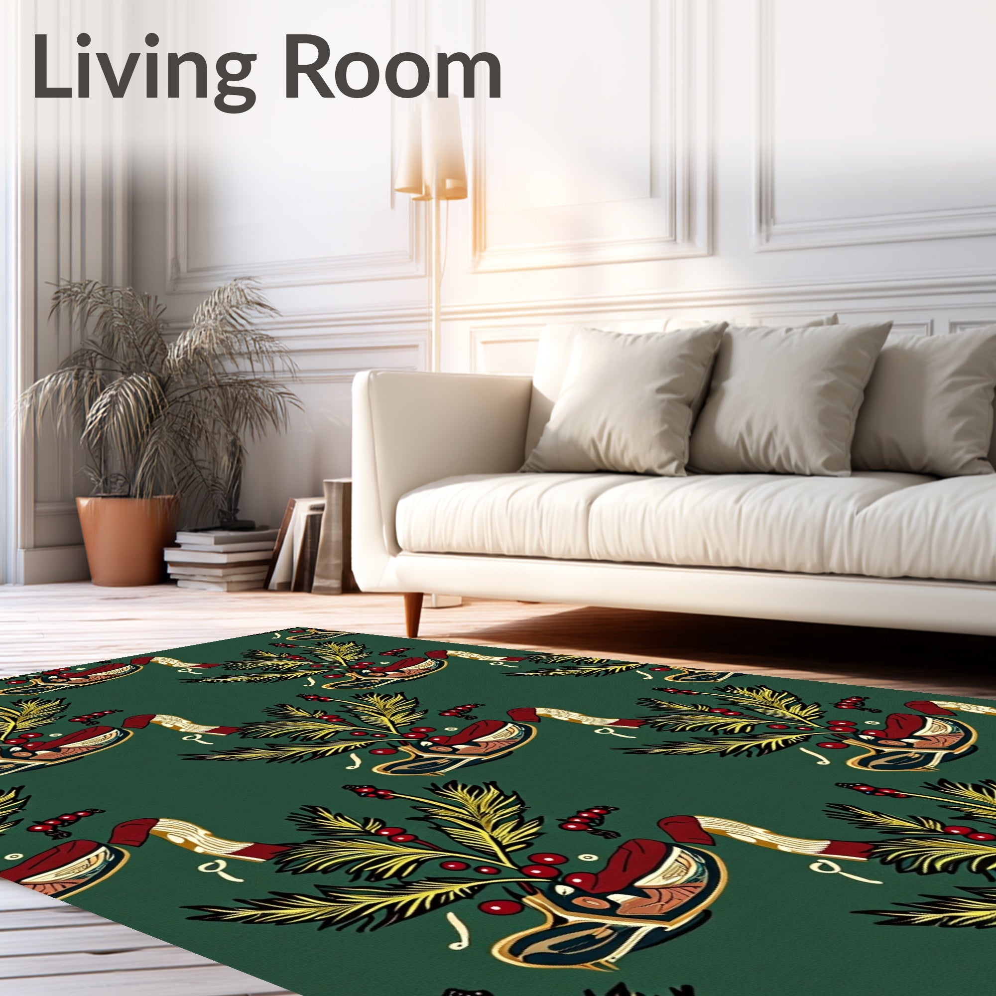Ultra Soft Area Rug, Non Slip, Stain Resistant, Washable Area Rugs for Living Room, Bedroom, Elegant Yuletide Botanical Evergreen Arrangement(Green) Overview: